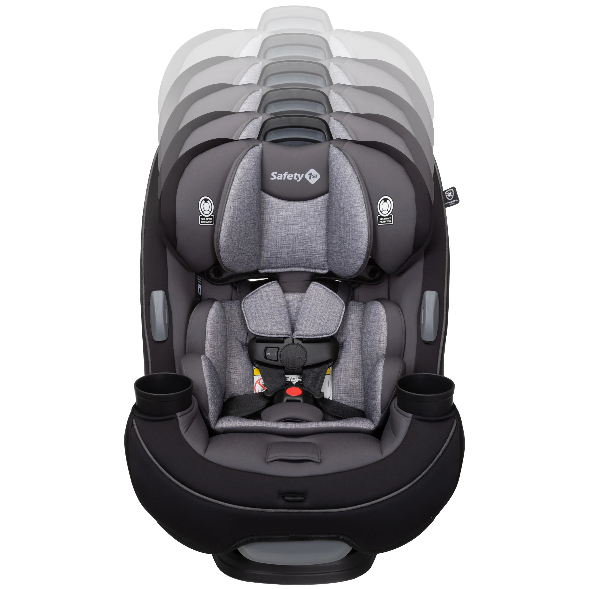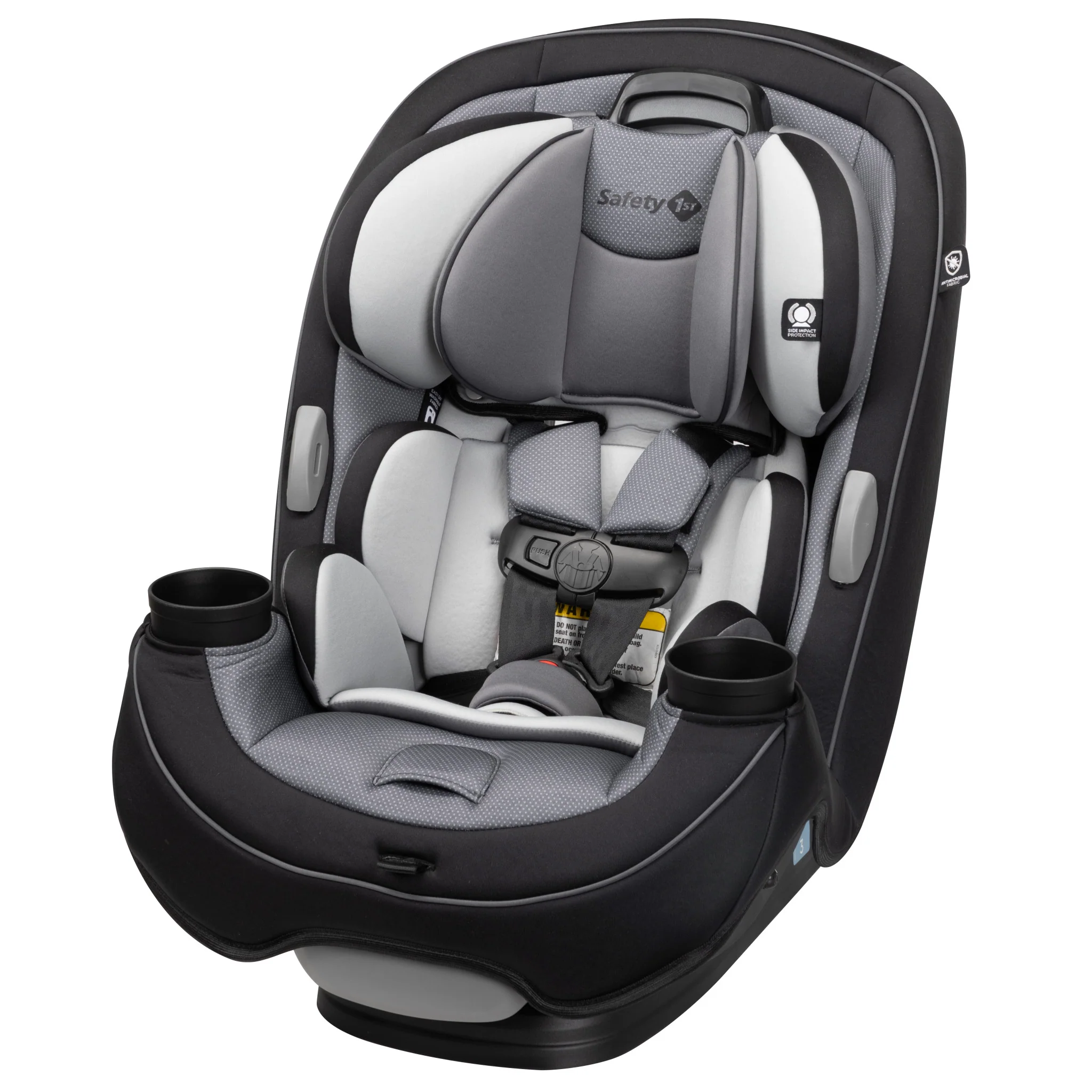 From newborn to toddler, the Safety 1st Grow and Go All-in-One Convertible Car Seat cradles them in comfort and safety. Parents love the design that gives them 7" more legroom and easy one-step harness and headrest adjustment.