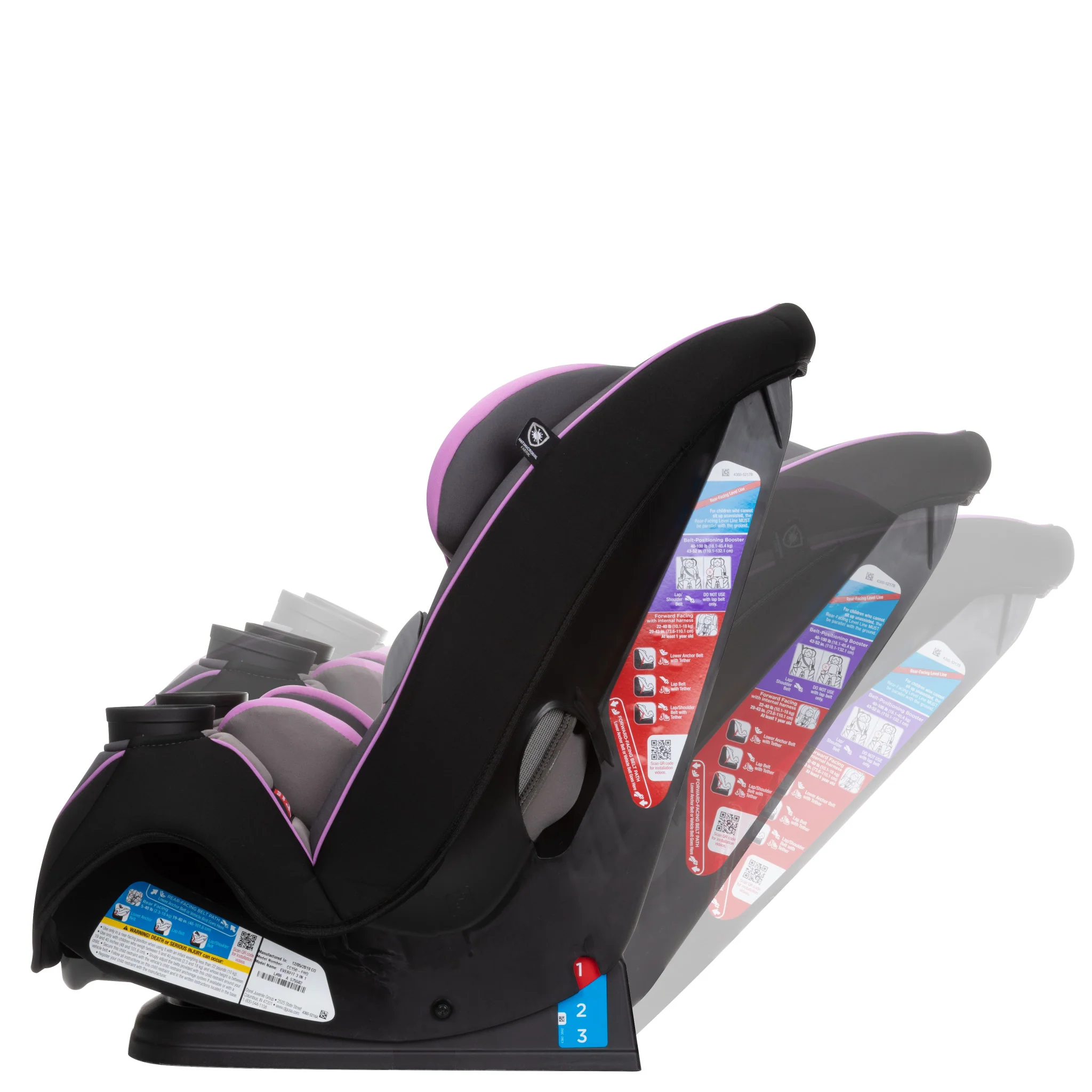 - Converts from rear-facing to front-facing harness to belt positioning booster seat