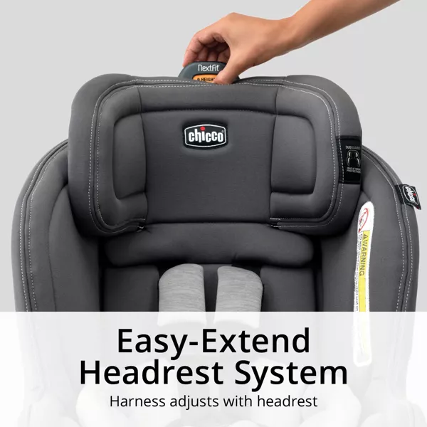- 9-position Easy-Extend Headrest System adjusts with the 5-point harness to effortlessly accommodate growth