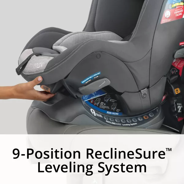 - Best in class, 9-position ReclineSure™ leveling system fits a wider range of vehicles and offers improved child comfort