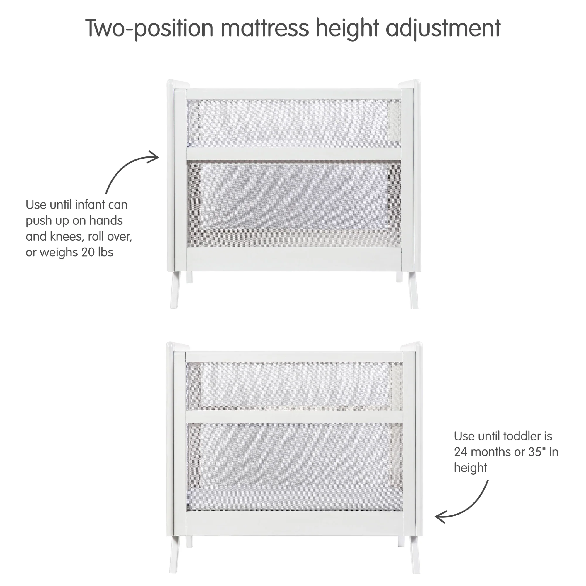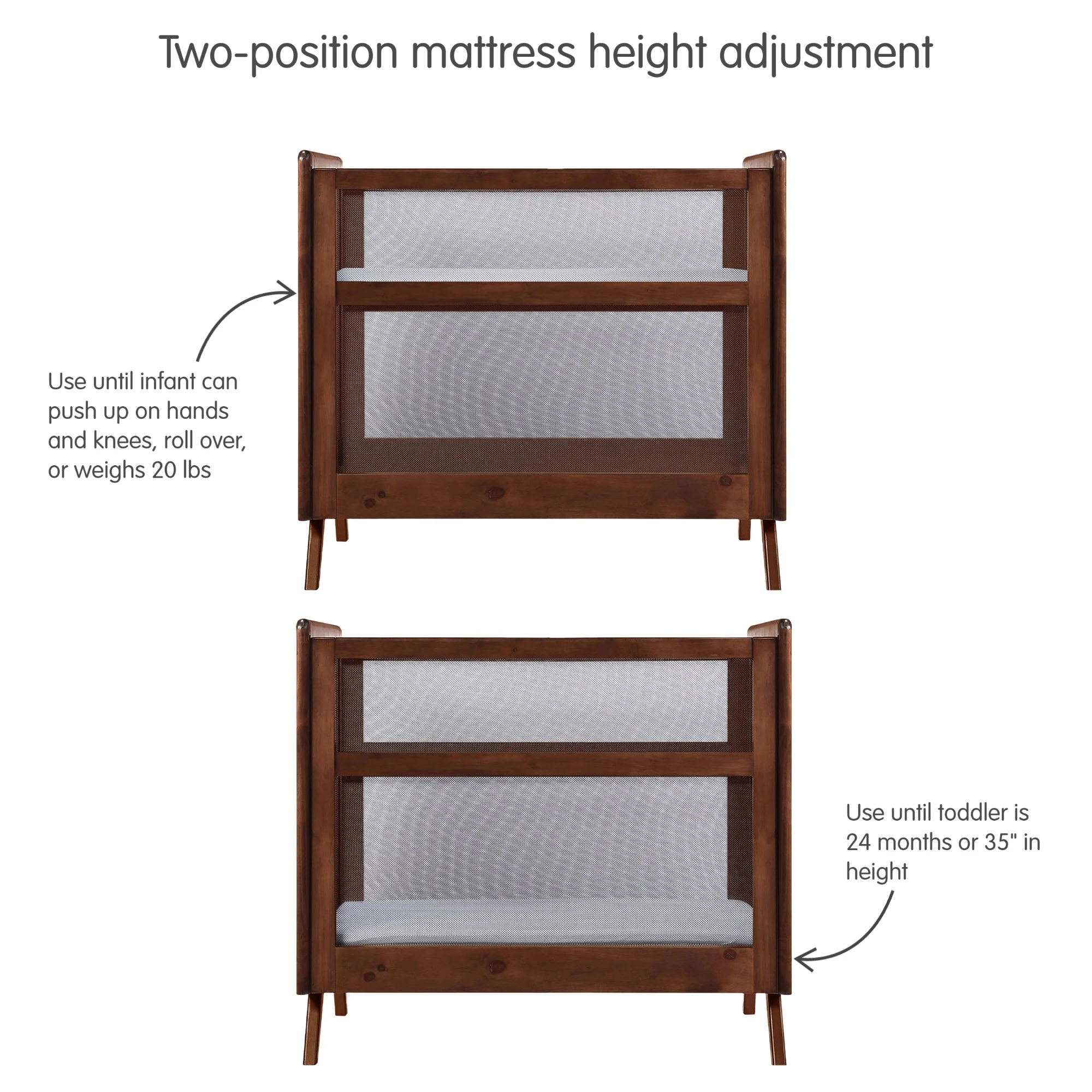 • Adjustable crib grows with baby from newborn to 24 months