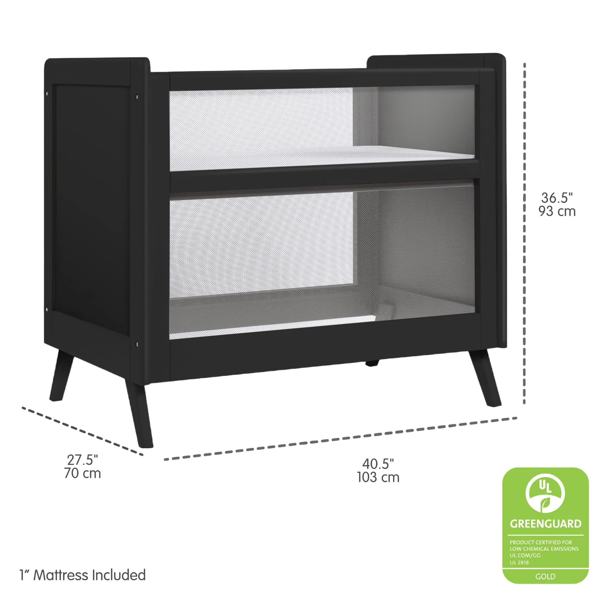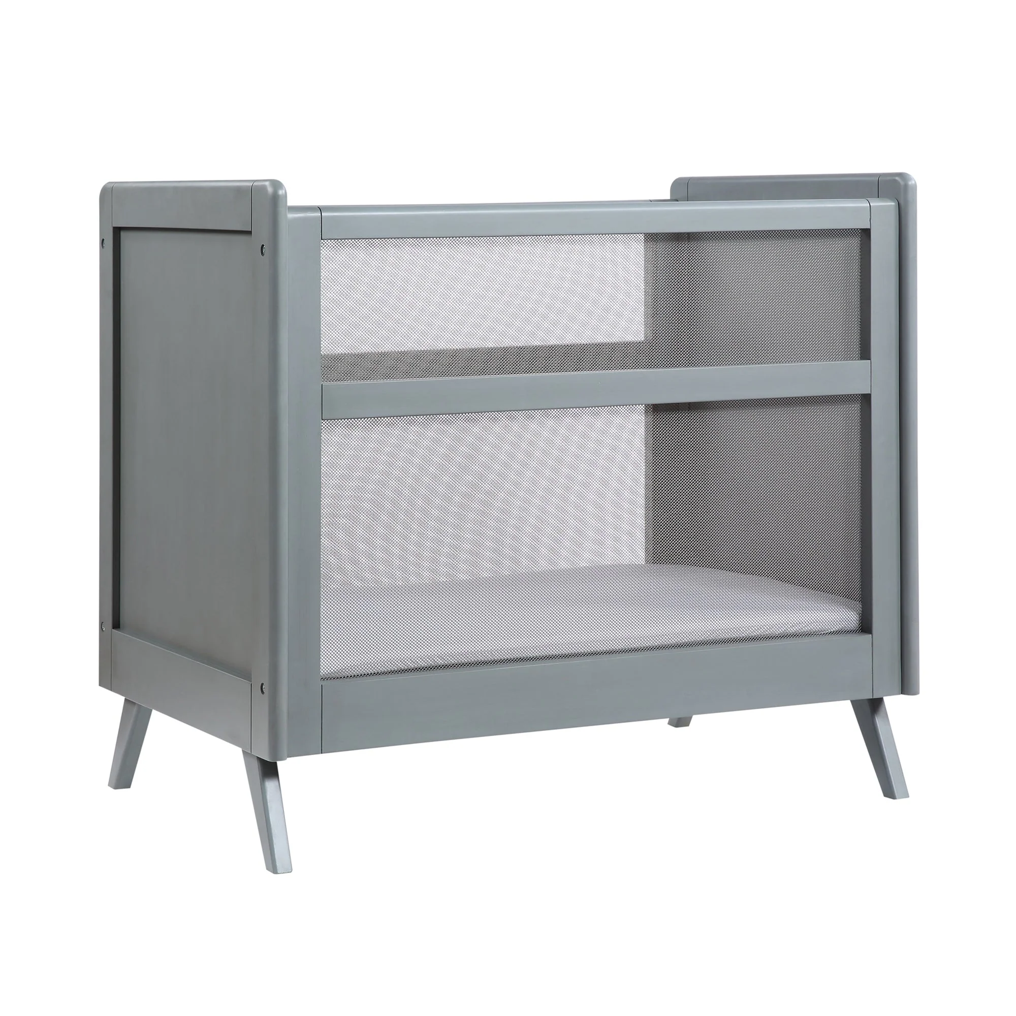 Surround baby in comfort and style with the classic Breathable Baby Mini Crib. Breathable mesh sides provide a relaxing area for your little one as a neutral grey wood finish complements the rest of your nursery decor.