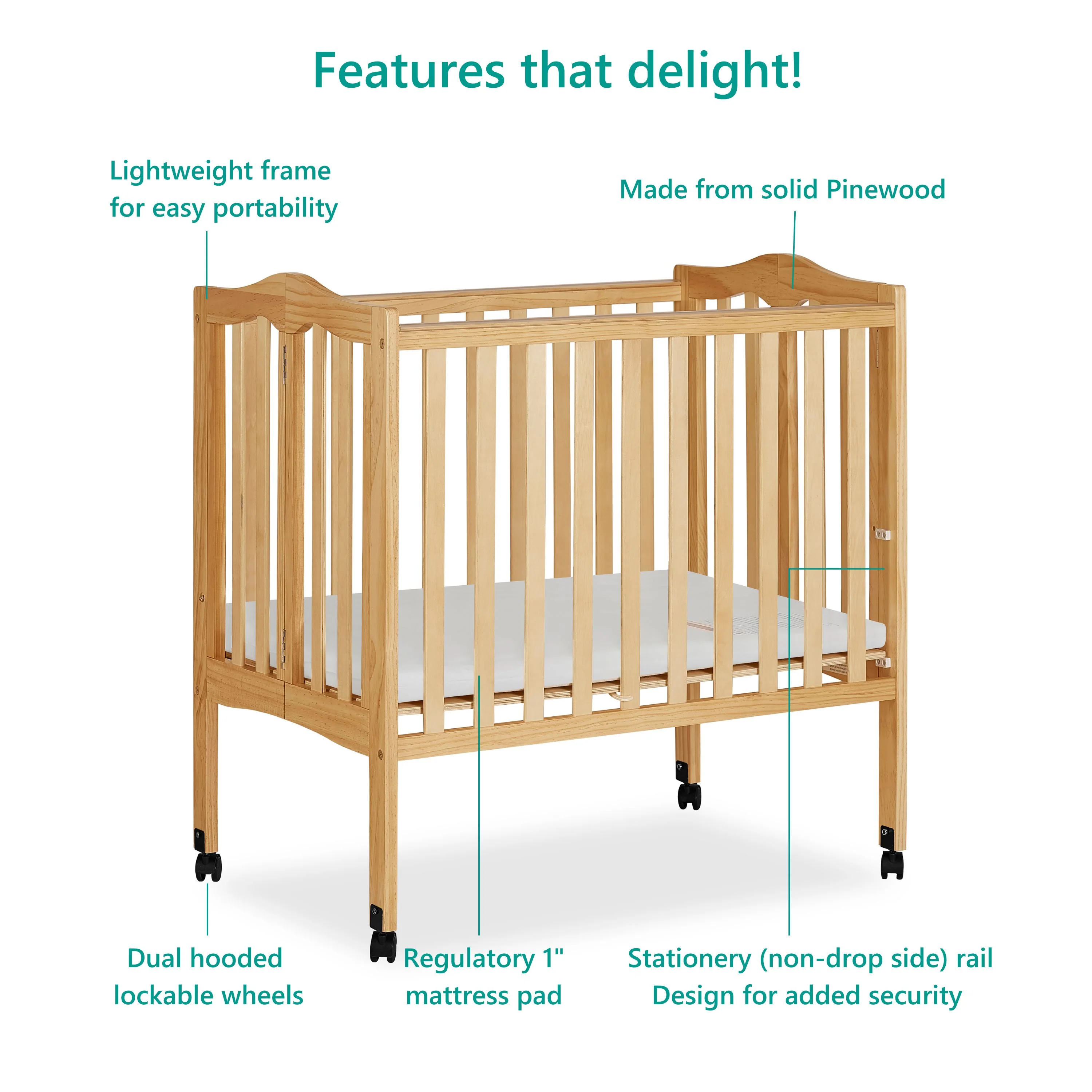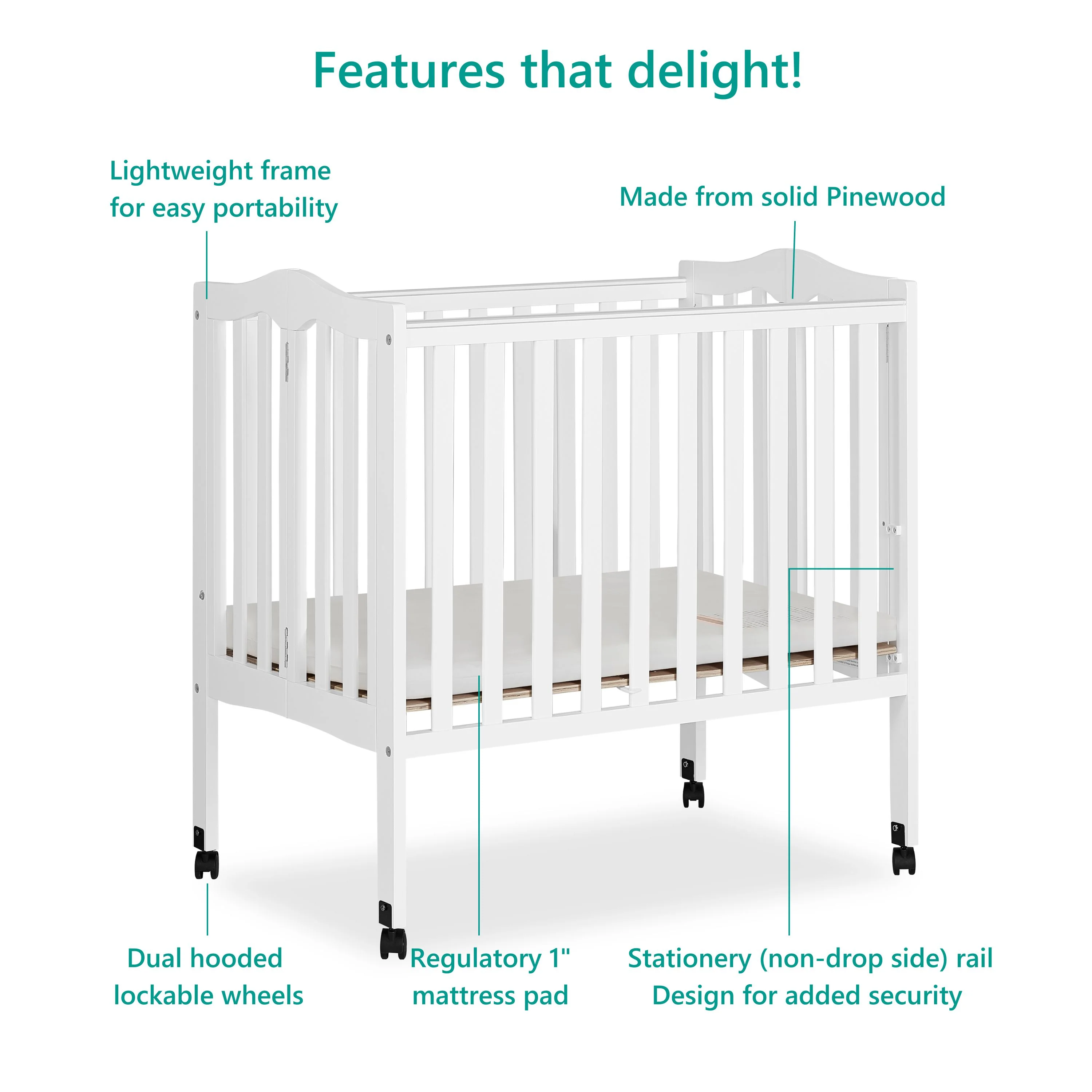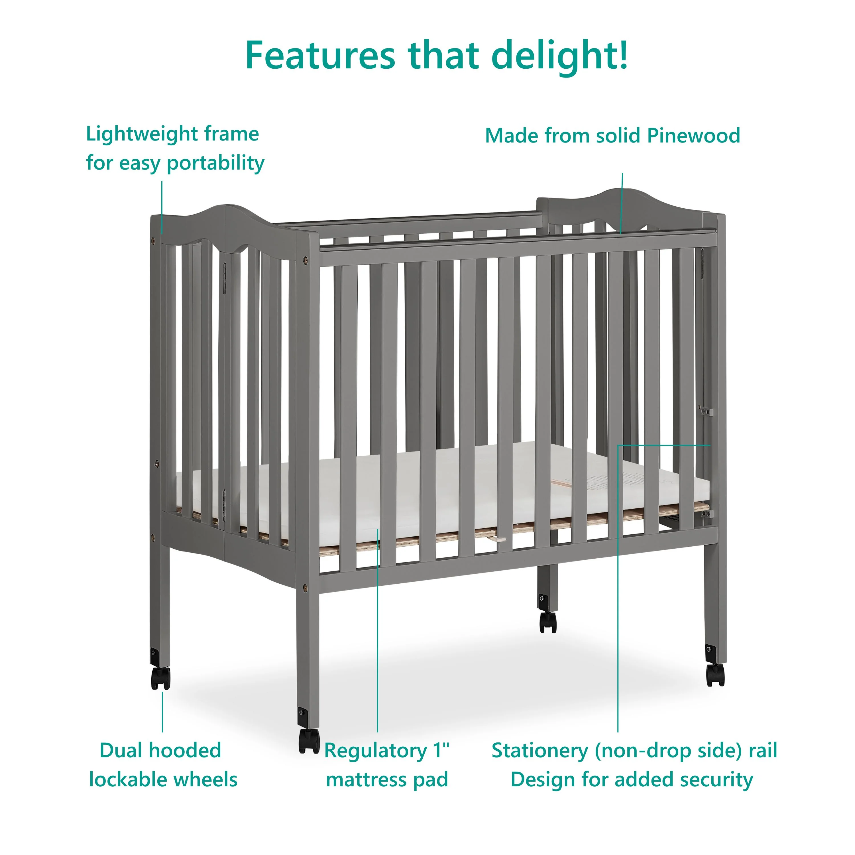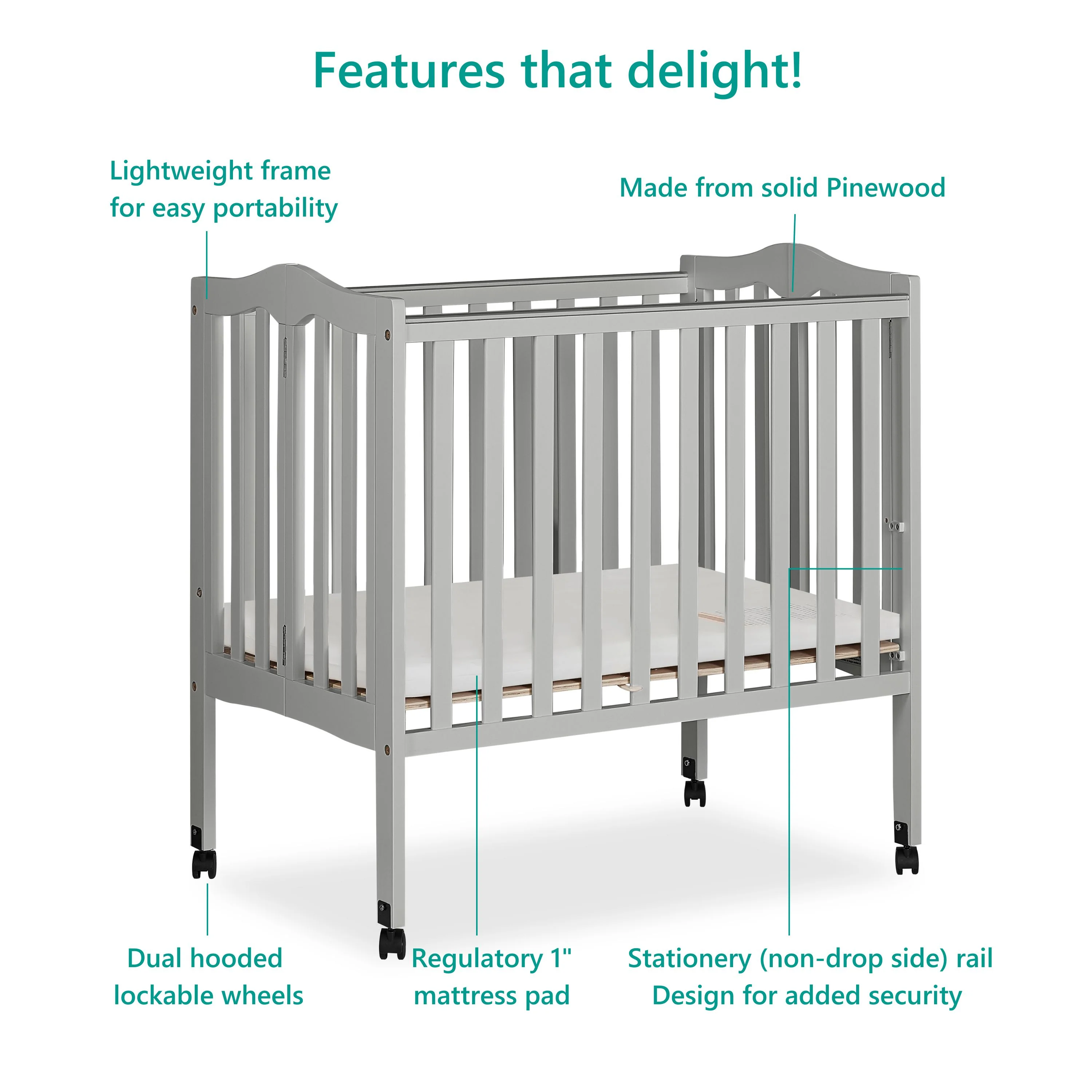 The Dream On Me 2-in-1 Lightweight Folding Portable Crib is a modern nursery essential