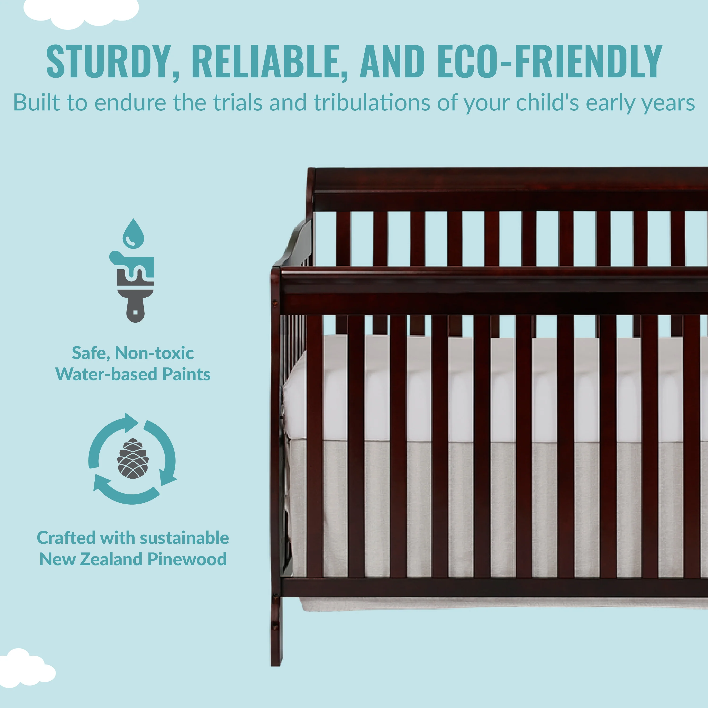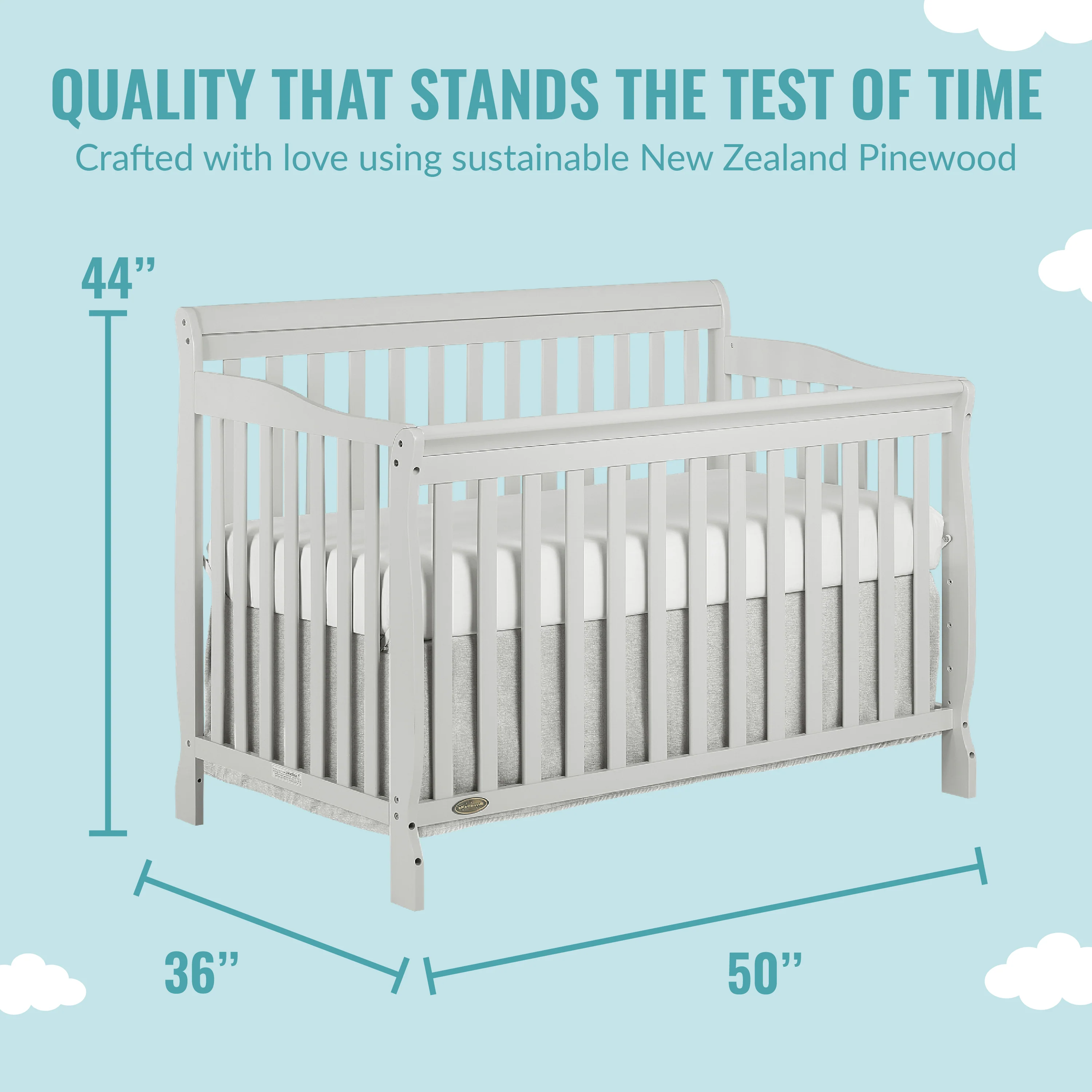 • DURABLE & STYLISH: The Ashton is built out of solid reclaimed New Zealand Pinewood.  With a classic design, this crib offers your little one a sleeping space that will never go out of style. Available in different finishes to match any nursery theme