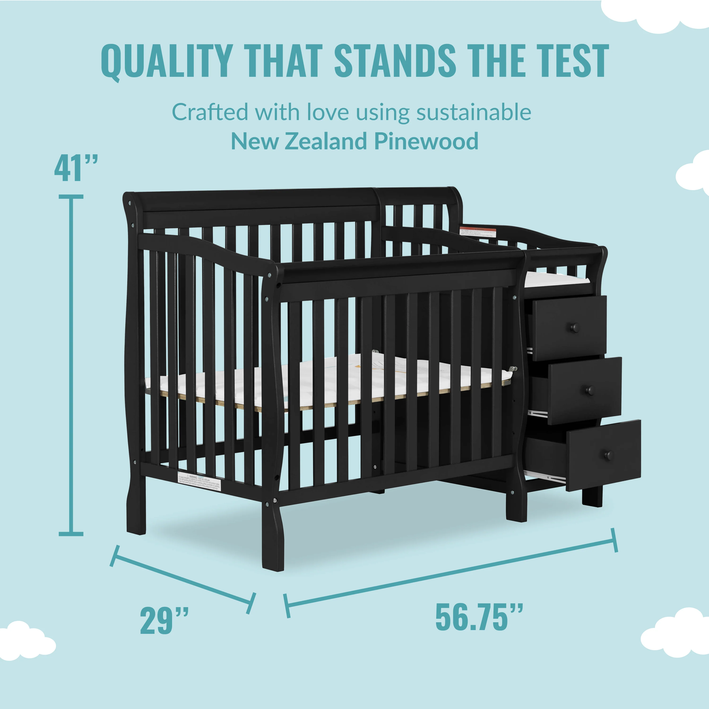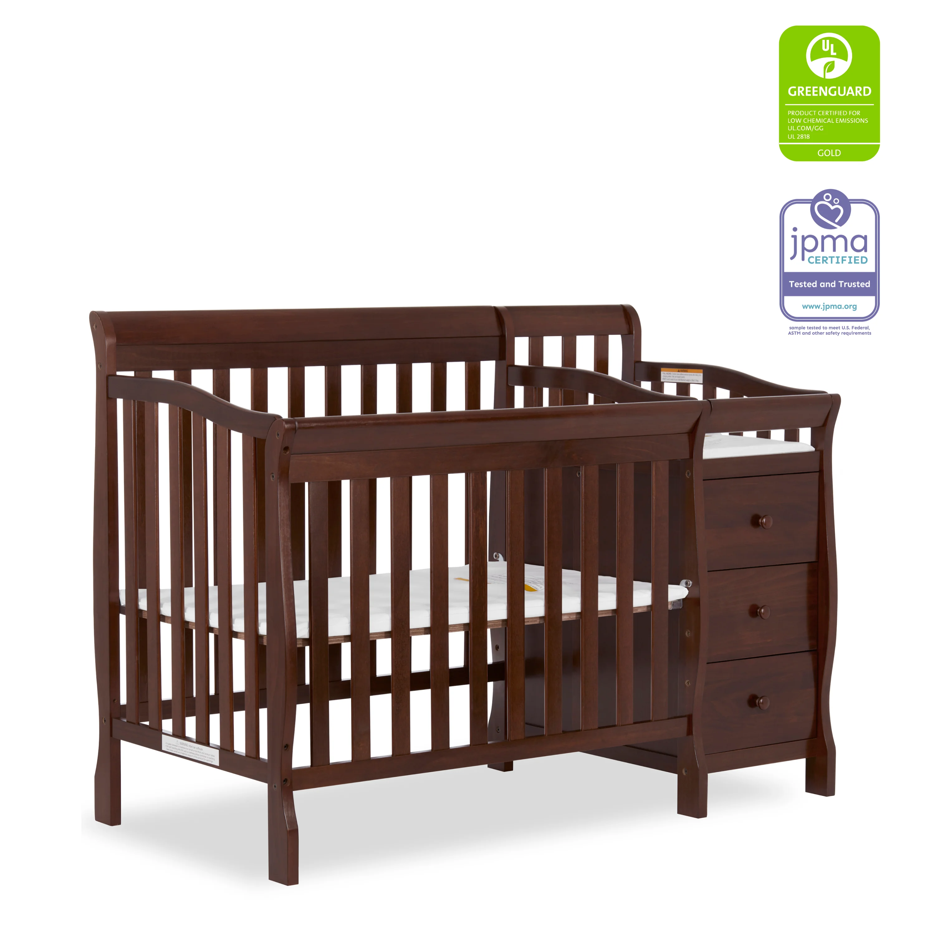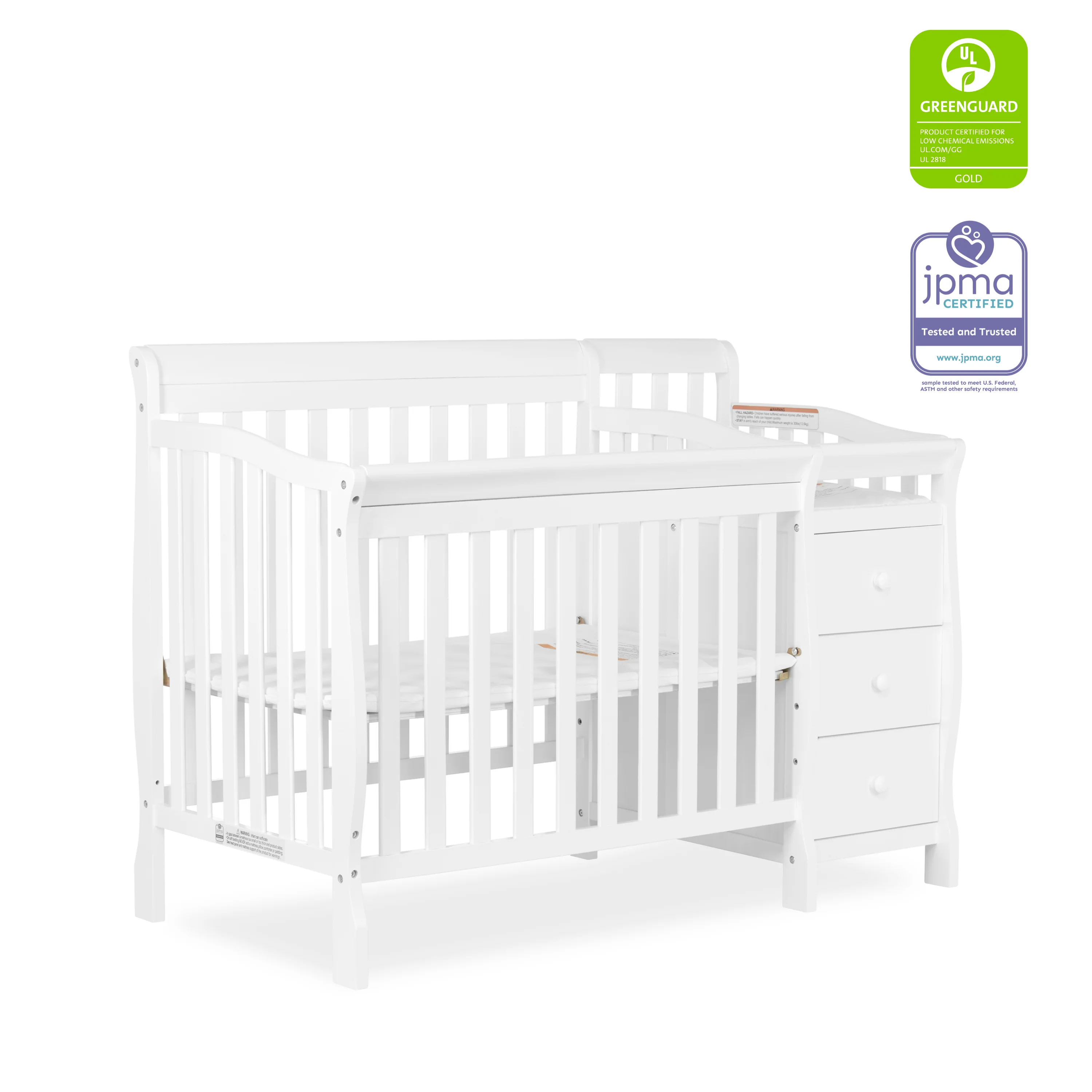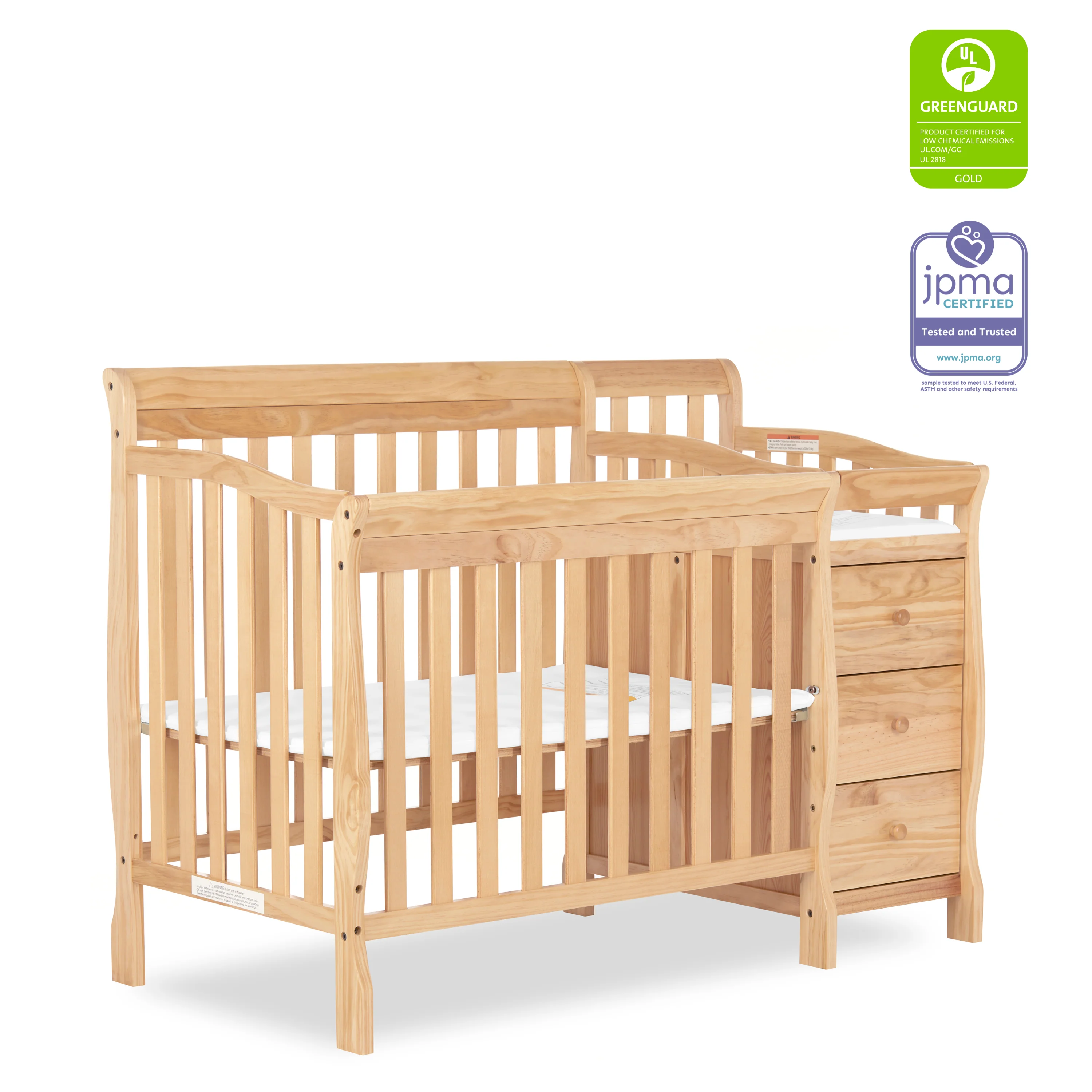 • Comes with 1 OEM Mattress pad. For additional aftermarket mattress purchase, we recommend any Dream On Me, non-toxic, Greenguard certified mini crib mattress.