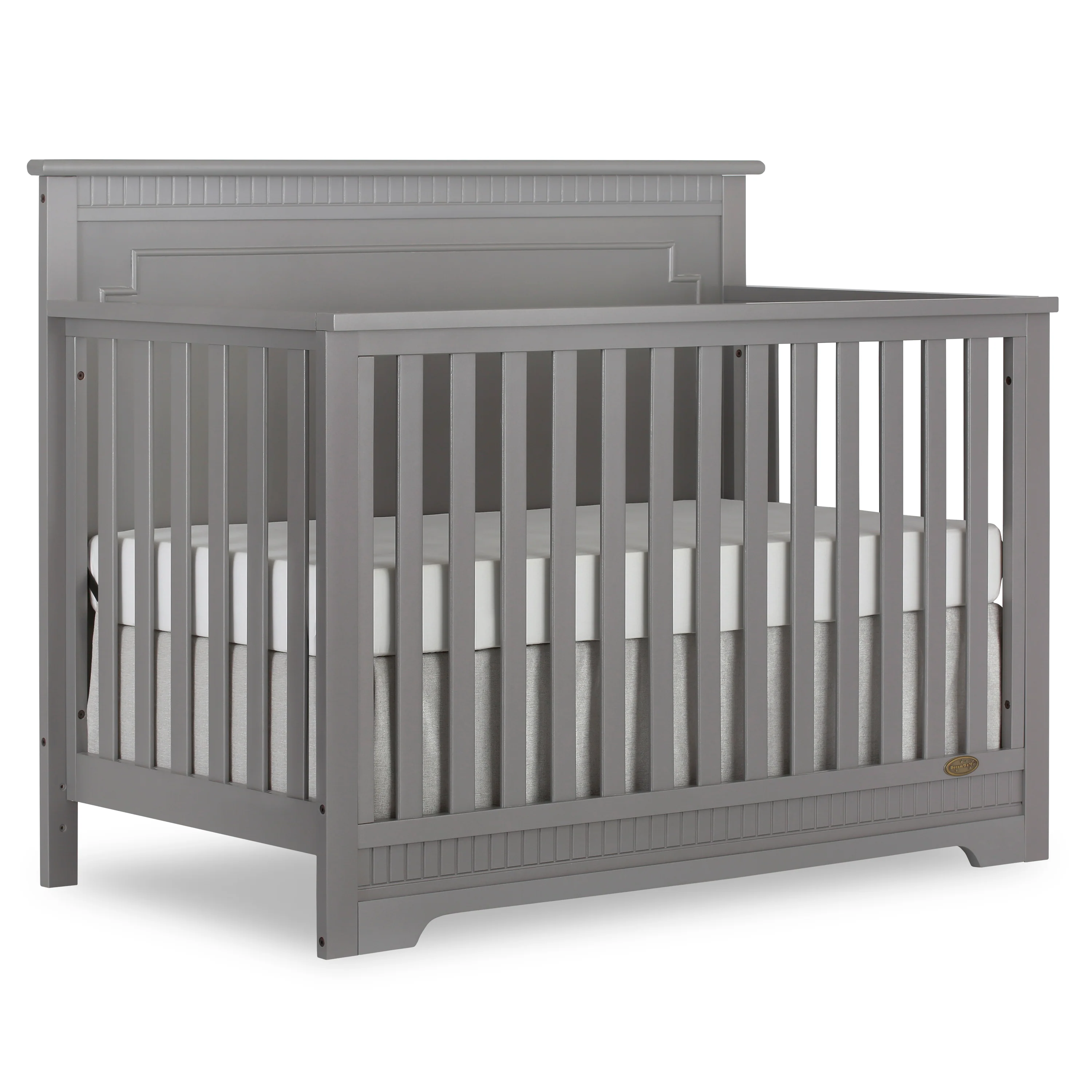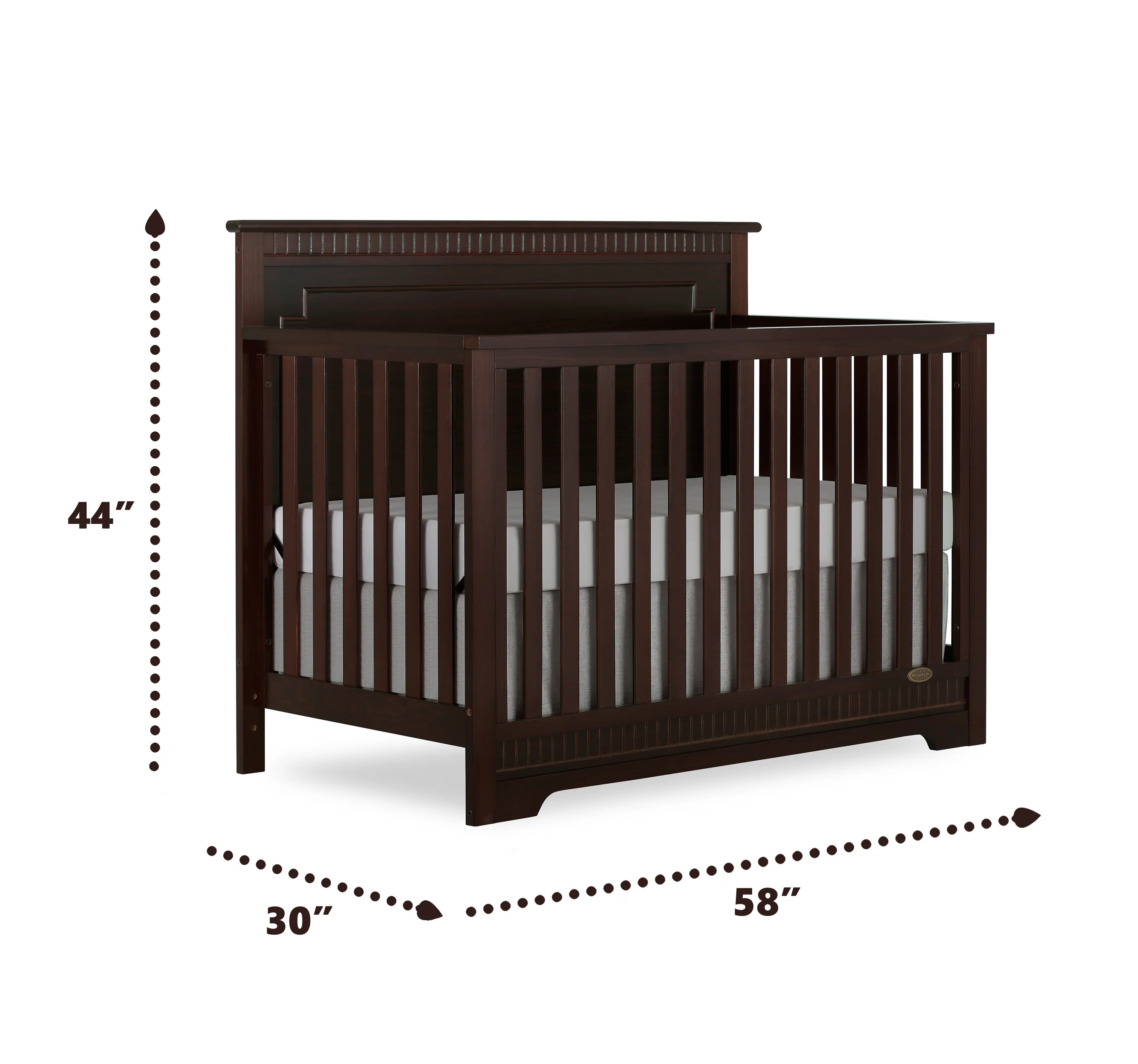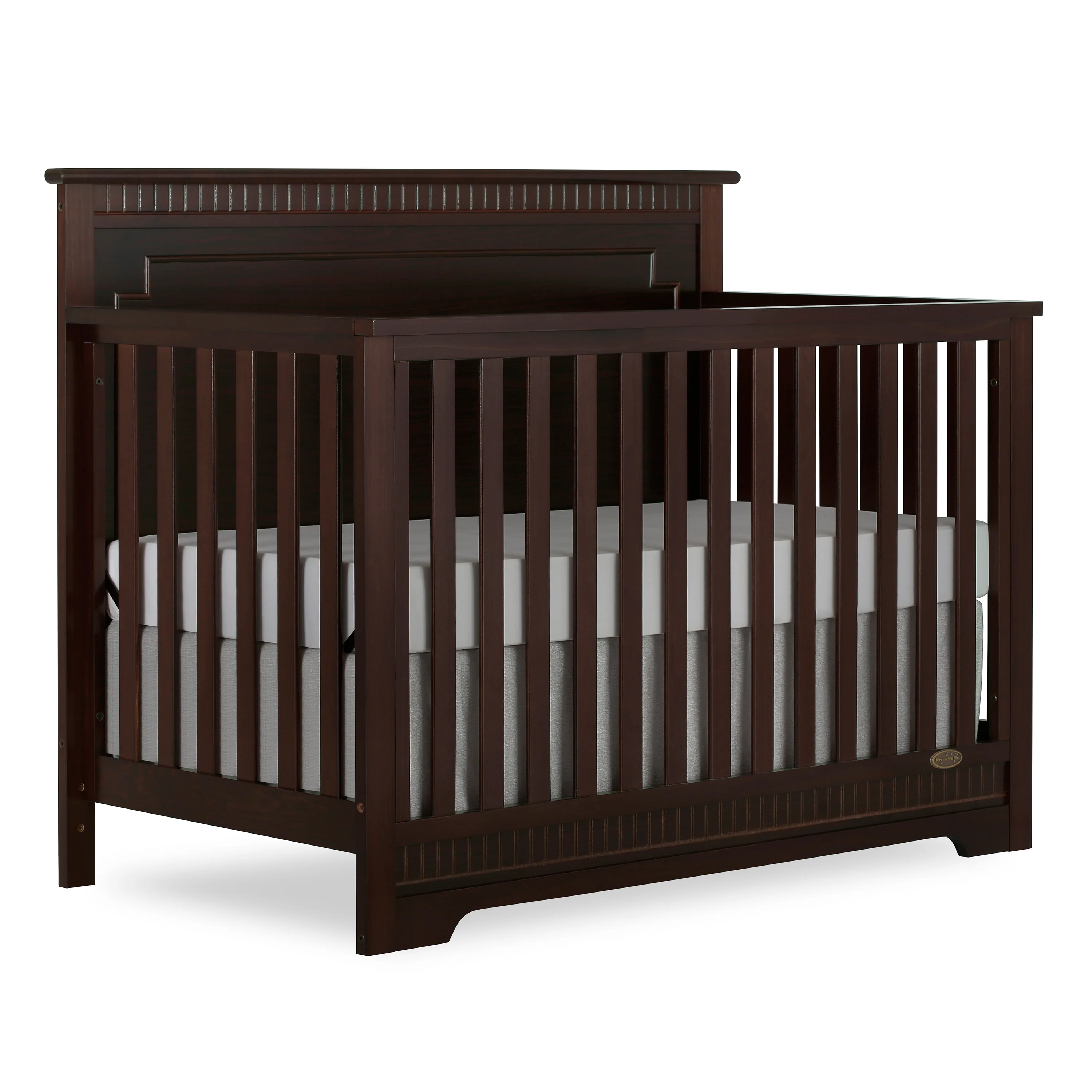 The Dream On Me Morgan inspired by the Boston sky line this modern , 5 in 1 convertible crib featuring full panel headboard connecting natural elements of wood with a flourish of decorator details. Its stylish flat-top headboard features dentil trim molding that lines the headboard and footboard. This crib offers a long term value converting into a charming toddler bed with our conversion kit ( sold separately ), daybed and theback panel converts to a full-size headboard with the simple addition of bed frame ( sold separately). The Morgan mattress platform adjusts to three different heights depending on the age of your baby. All Dream On Me cribs meets all applicable ASTM , CPSC and JPMA standards