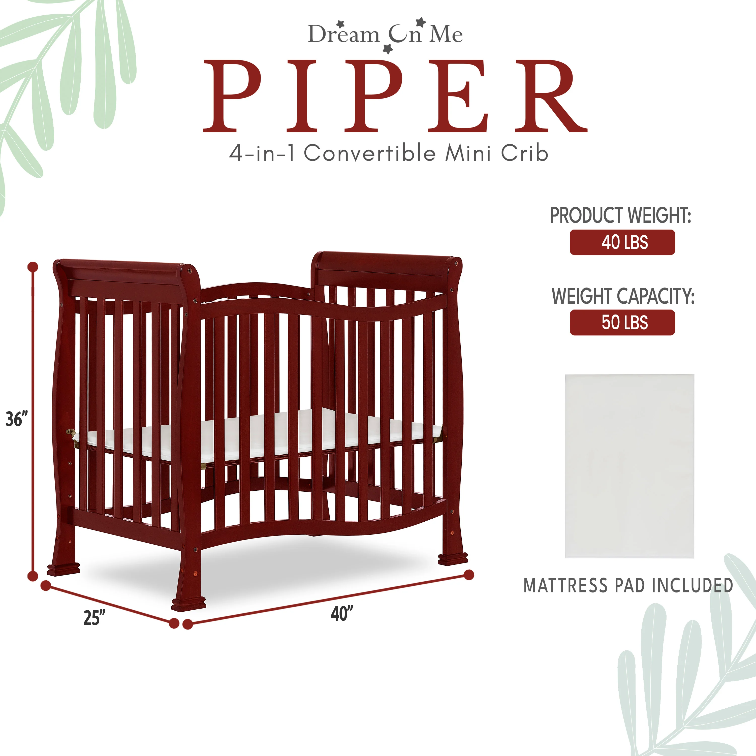 The Piper 4-in-1 Convertible Mini Crib is the perfect nursery solution for small spaces and to keep pace with the changing needs of your growing child. Starting as a mini crib, you can convert it into a mini daybed and twin-size bed (bed rails sold separately).