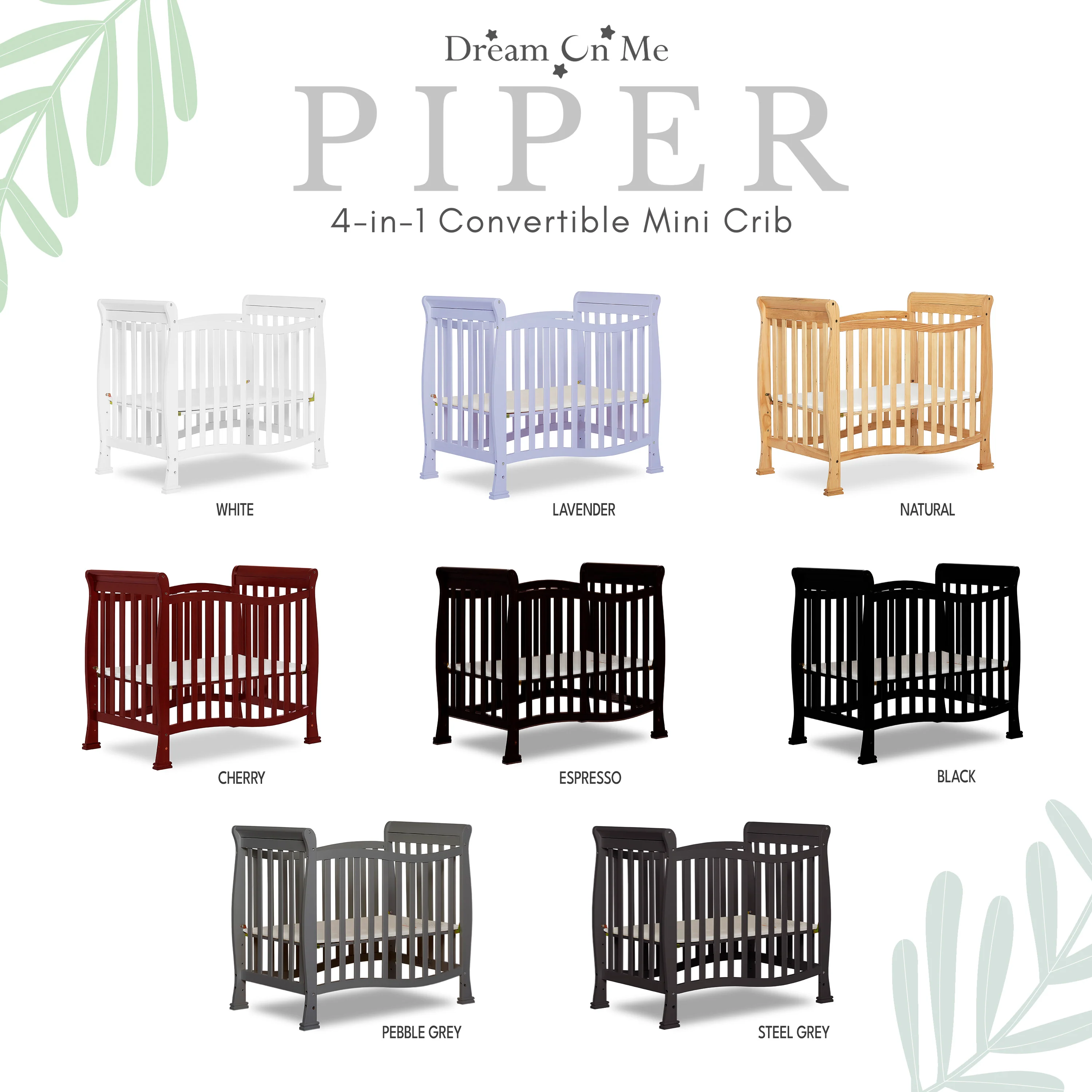 - CONVERTIBILITY OPTIONS: The Violet/Piper 4-in-1 Convertible Mini Crib keeps pace with your growing child. Starting as a mini crib, you can convert it into a mini daybed and twin-size bed (bed rails sold separately)