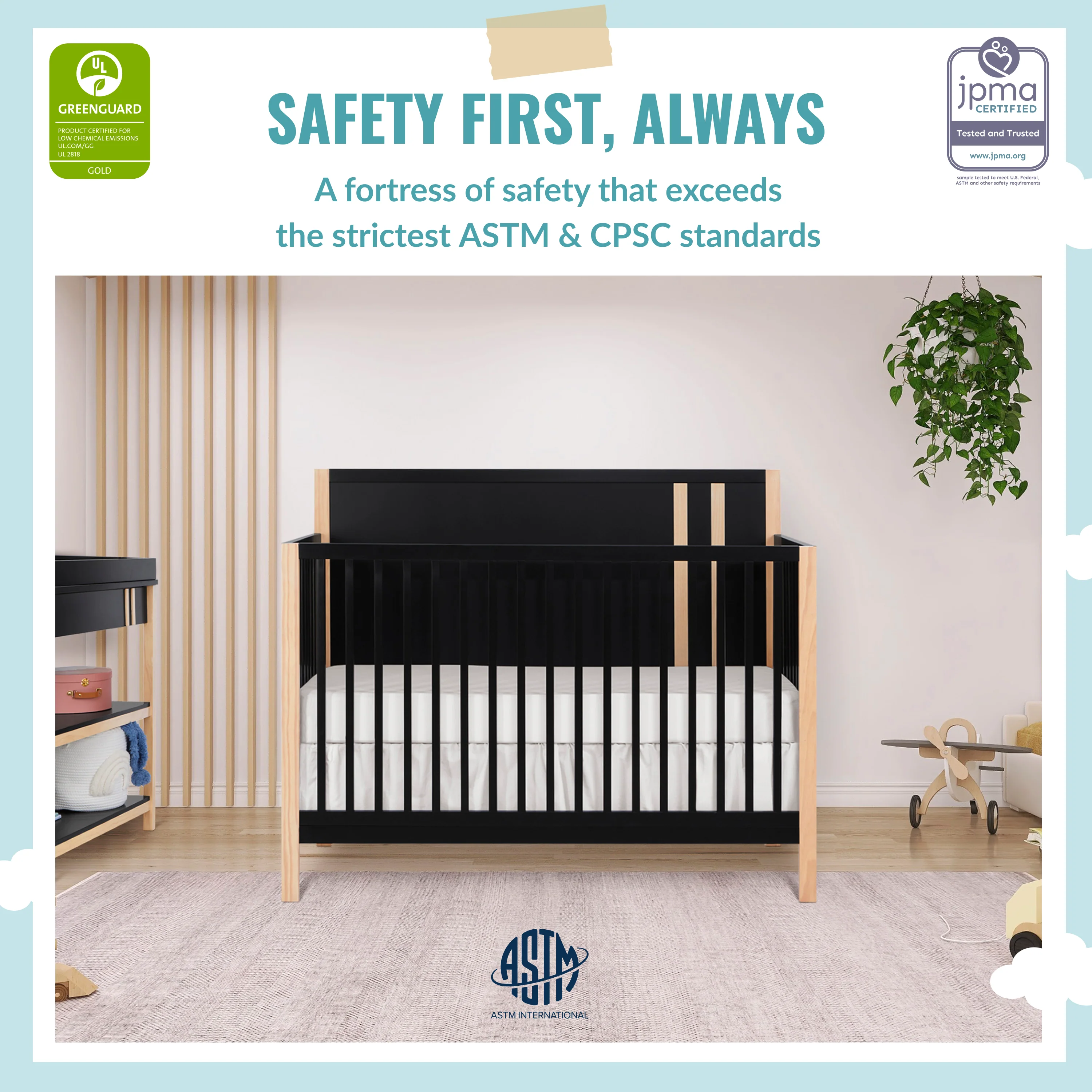 - A SAFE SLEEPING SURFACE: Rest easy knowing that the crib is both JPMA & Greenguard Gold certified and adheres to ASTM & CPSC standards, guaranteeing a secure sleeping space for your little one.