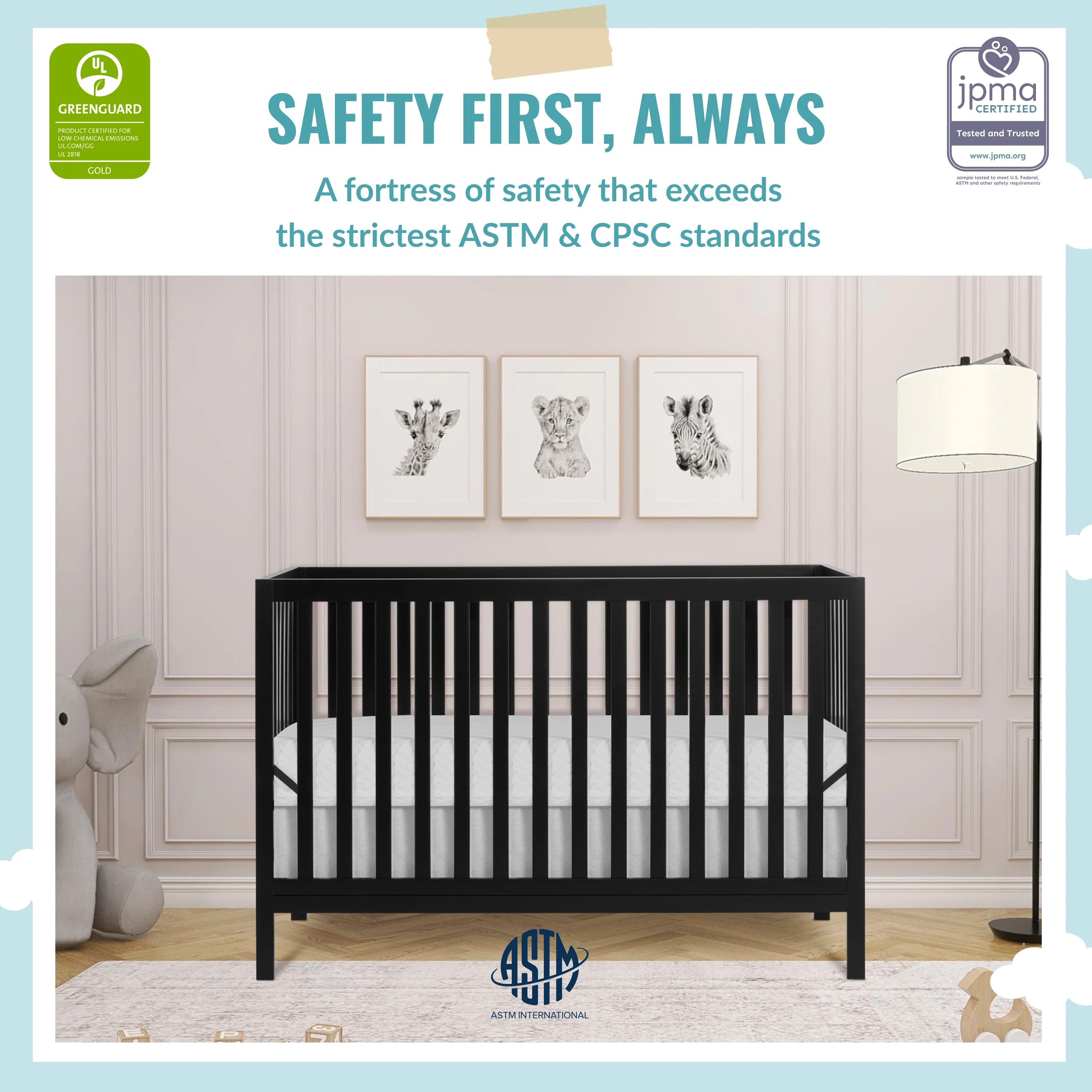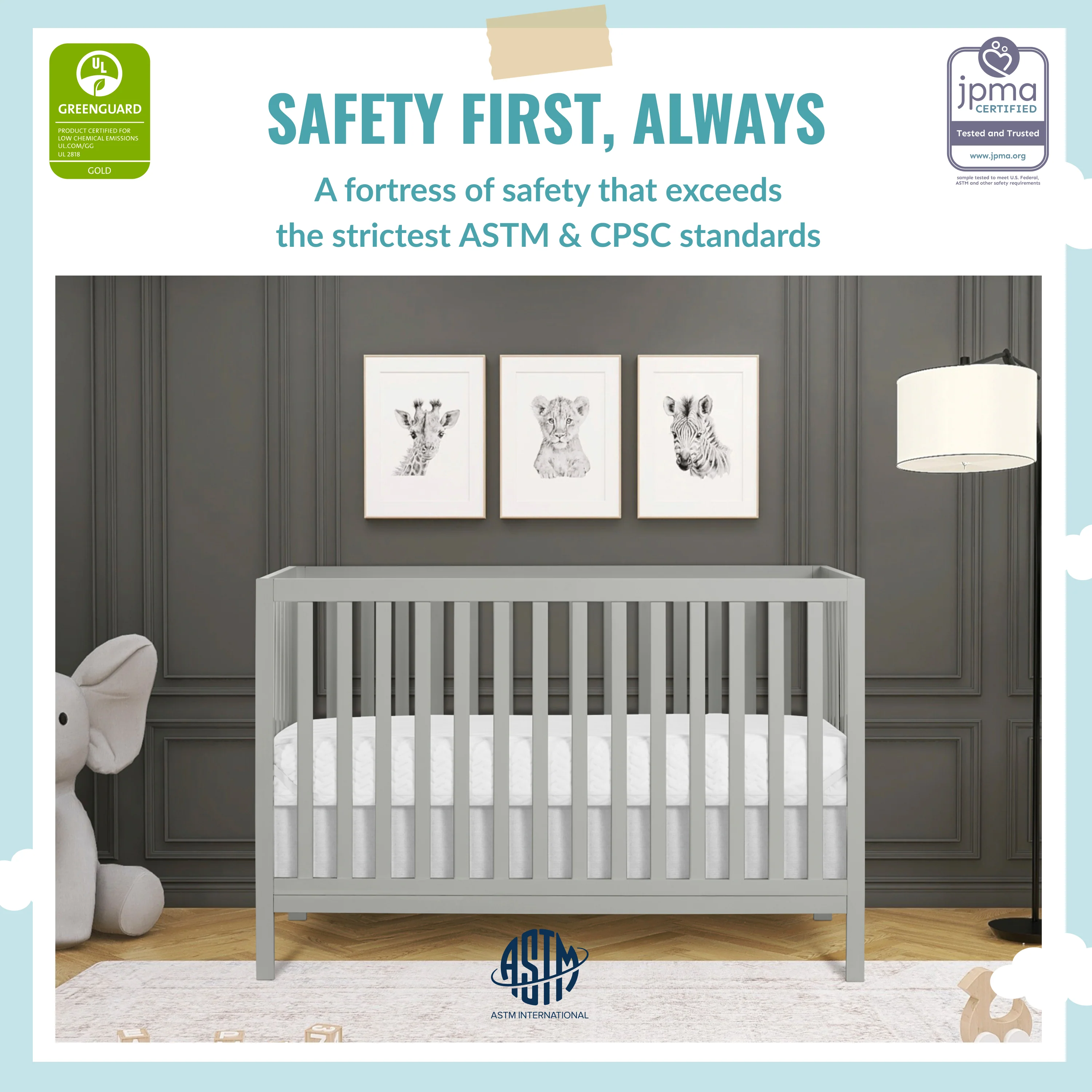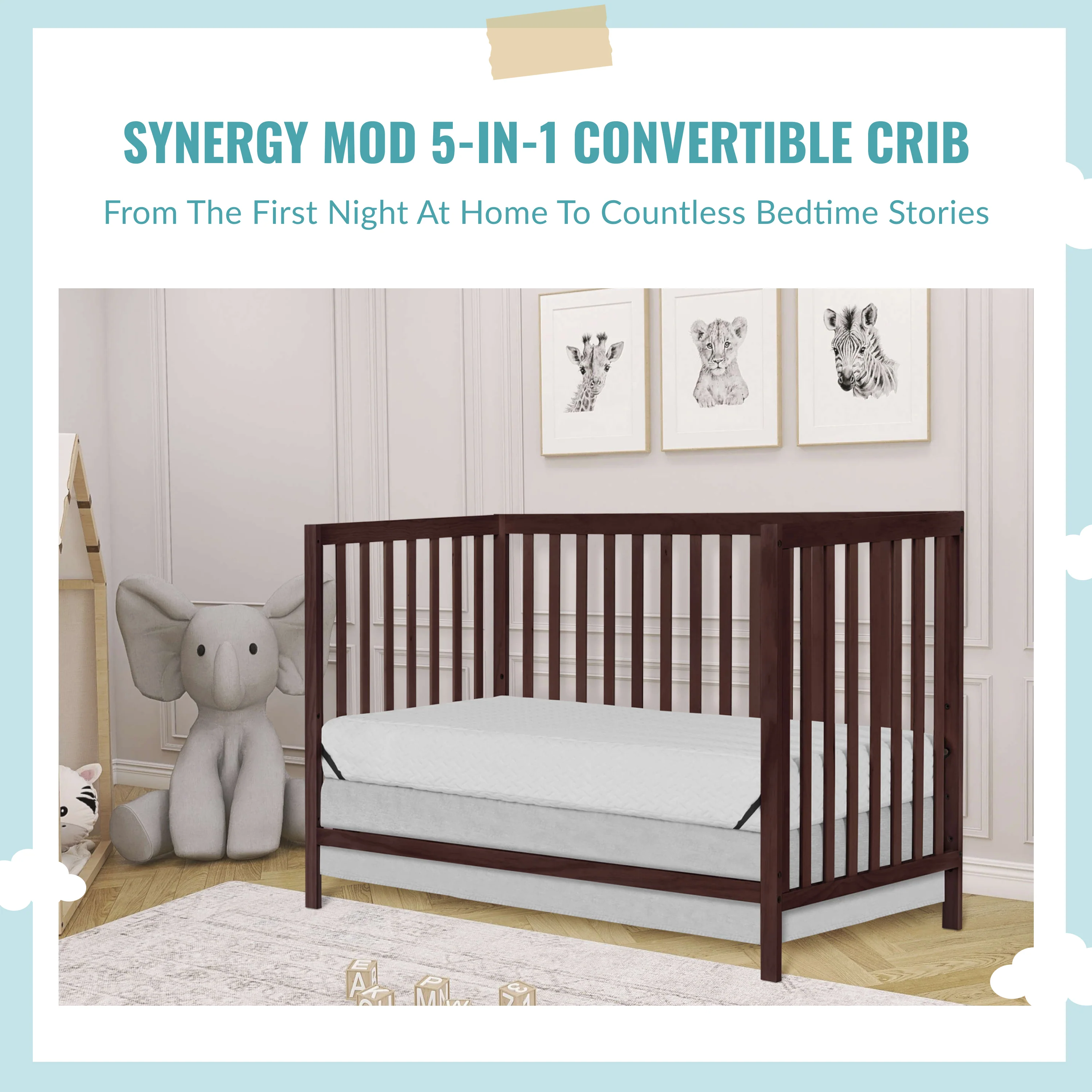 • SAFETY FIRST, ALWAYS: Rest easy knowing that the Dream On Me Synergy MOD Crib meets the highest safety standards, as it is both JPMA & Greenguard Gold Certified, and complies with ASTM/CPSC standards. 5 IN 1 CONVERTIBILITY: It is wonderfully designed to accompany your child during every growth milestone, as it effortlessly converts from crib to toddler bed, daybed & full-size bed, accommodating their ever-changing needs. BUILT TO LAST: Crafted from sustainable New Zealand pinewood, featuring wooden spindles and a metal mattress support, this crib ensures both durability and stability. BEAUTIFUL FINISHES: The Dream On Me Synergy MOD Crib comes in 5 beautiful finishes - White, Espresso, Natural, Cool Grey, and Matte Black, that allow you to create the nursery of your dreams �?contemporary, whimsical, fairy, vintage �?let your imagination reign supreme! PRODUCT SPECS: Product Dimensions are 53.18" L X 29.6" W X 35" H, with a weight of 34 Lbs.