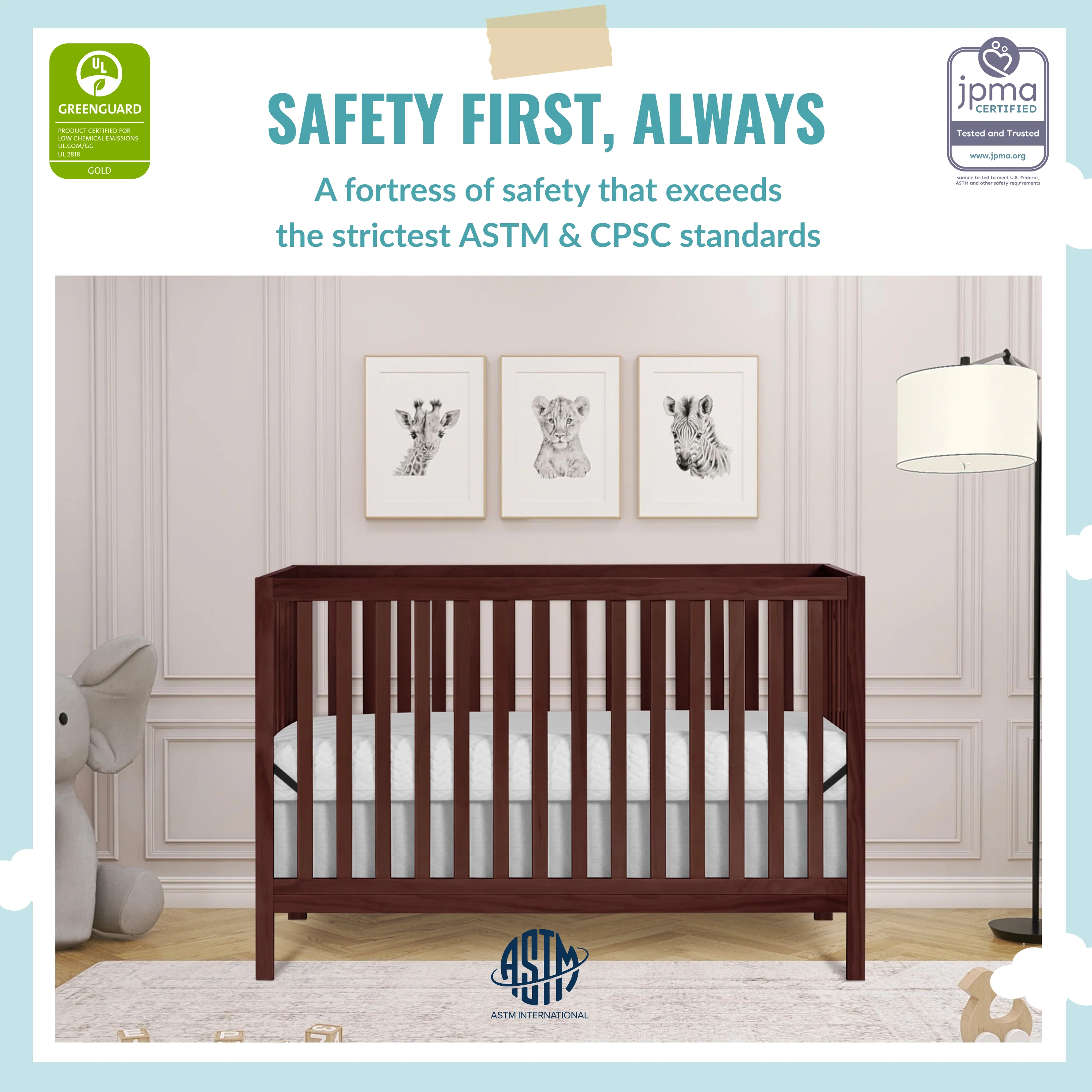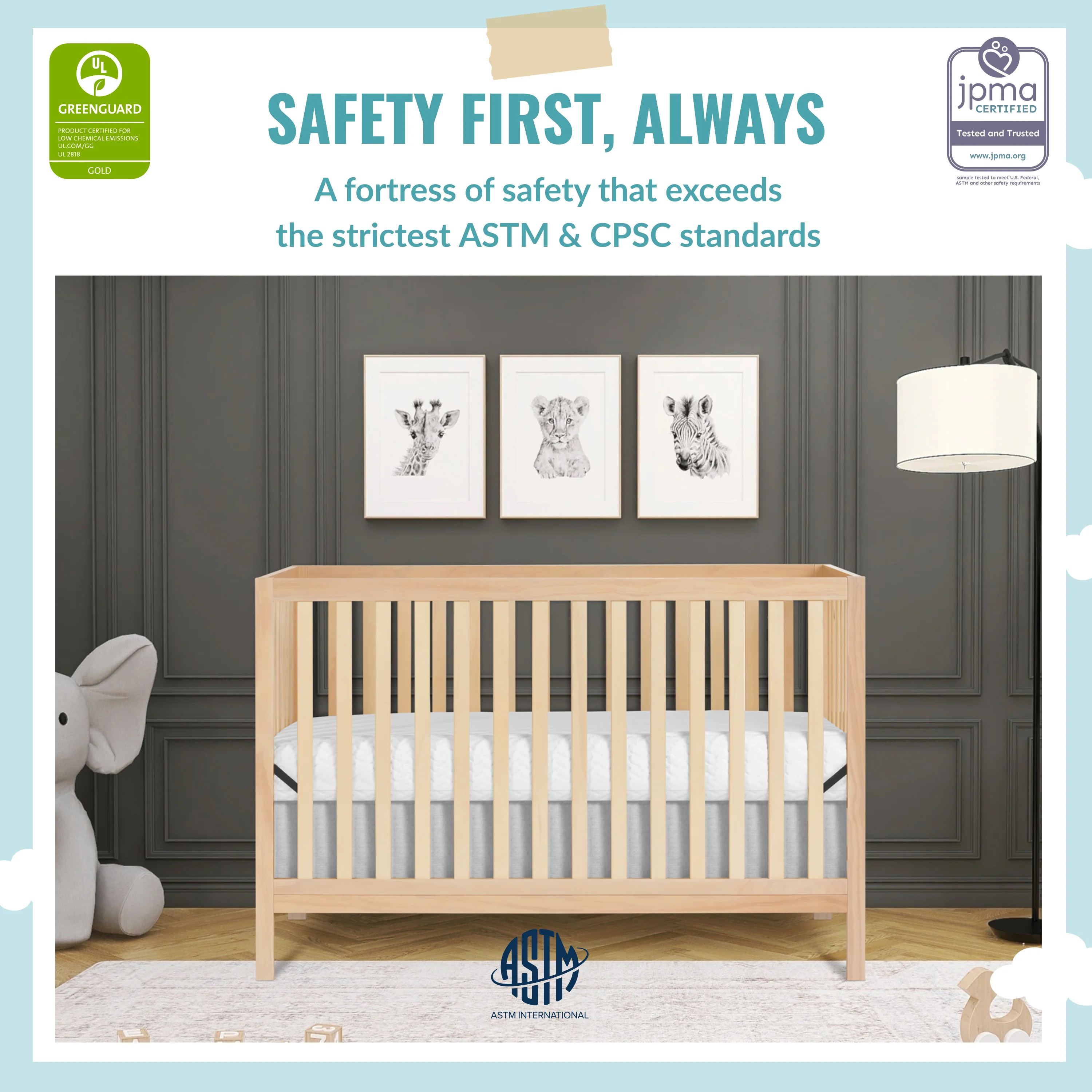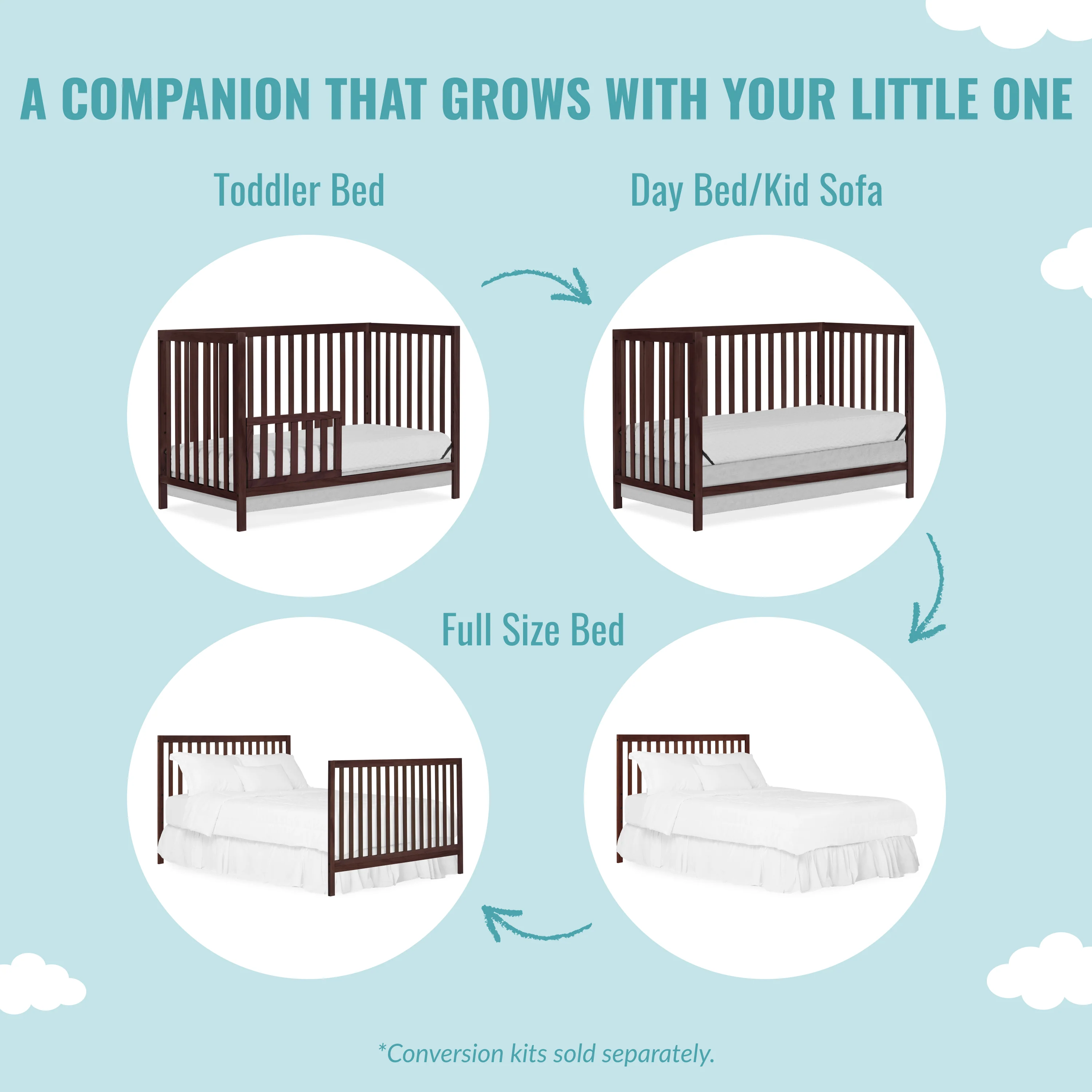 • SAFETY FIRST, ALWAYS: Rest easy knowing that the Dream On Me Synergy MOD Crib meets the highest safety standards, as it is both JPMA & Greenguard Gold Certified, and complies with ASTM/CPSC standards. 5 IN 1 CONVERTIBILITY: It is wonderfully designed to accompany your child during every growth milestone, as it effortlessly converts from crib to toddler bed, daybed & full-size bed, accommodating their ever-changing needs. BUILT TO LAST: Crafted from sustainable New Zealand pinewood, featuring wooden spindles and a metal mattress support, this crib ensures both durability and stability. BEAUTIFUL FINISHES: The Dream On Me Synergy MOD Crib comes in 5 beautiful finishes - White, Espresso, Natural, Cool Grey, and Matte Black, that allow you to create the nursery of your dreams �?contemporary, whimsical, fairy, vintage �?let your imagination reign supreme! PRODUCT SPECS: Product Dimensions are 53.18" L X 29.6" W X 35" H, with a weight of 34 Lbs.