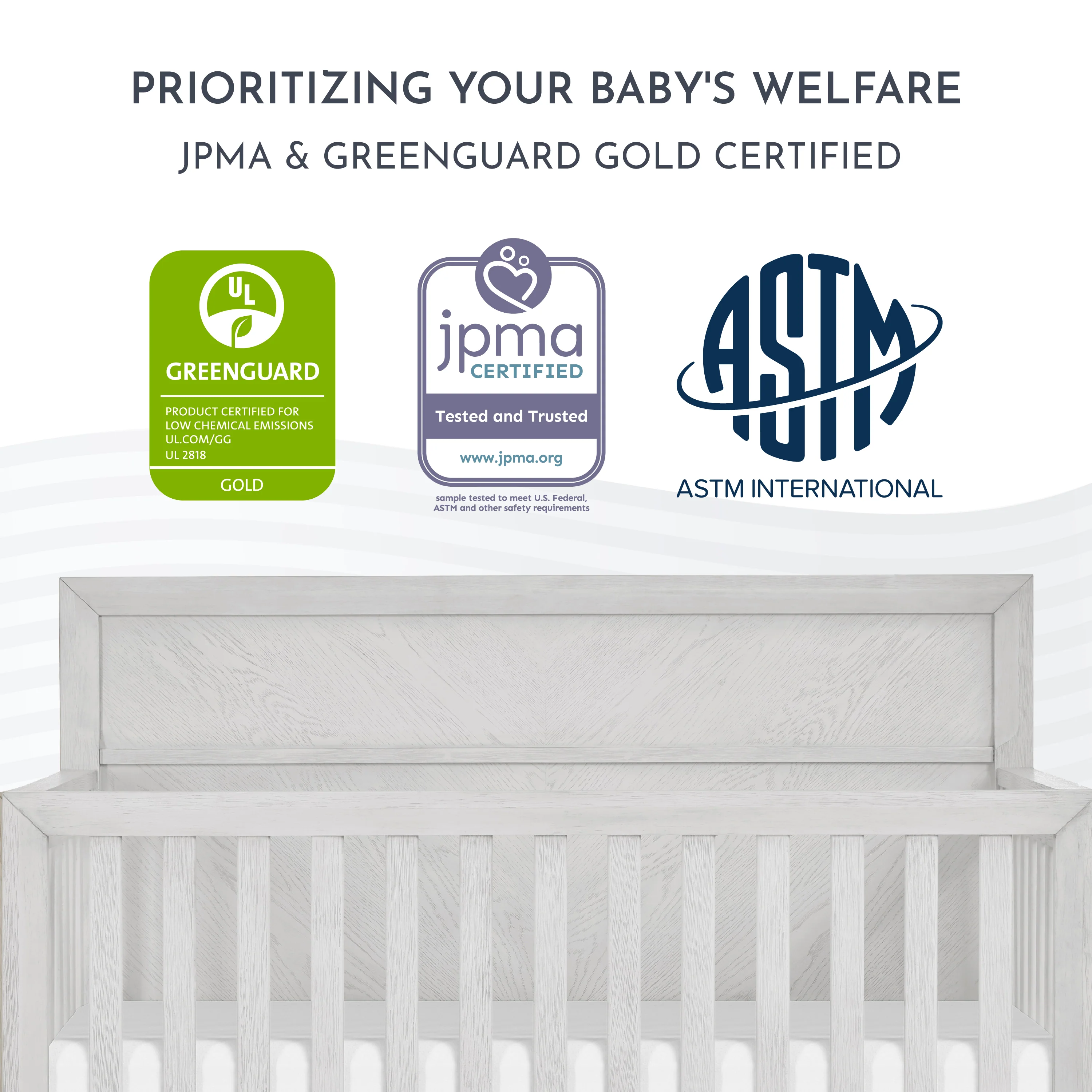 - Built to the highest safety standards and is both JPMA & Greenguard Gold certified