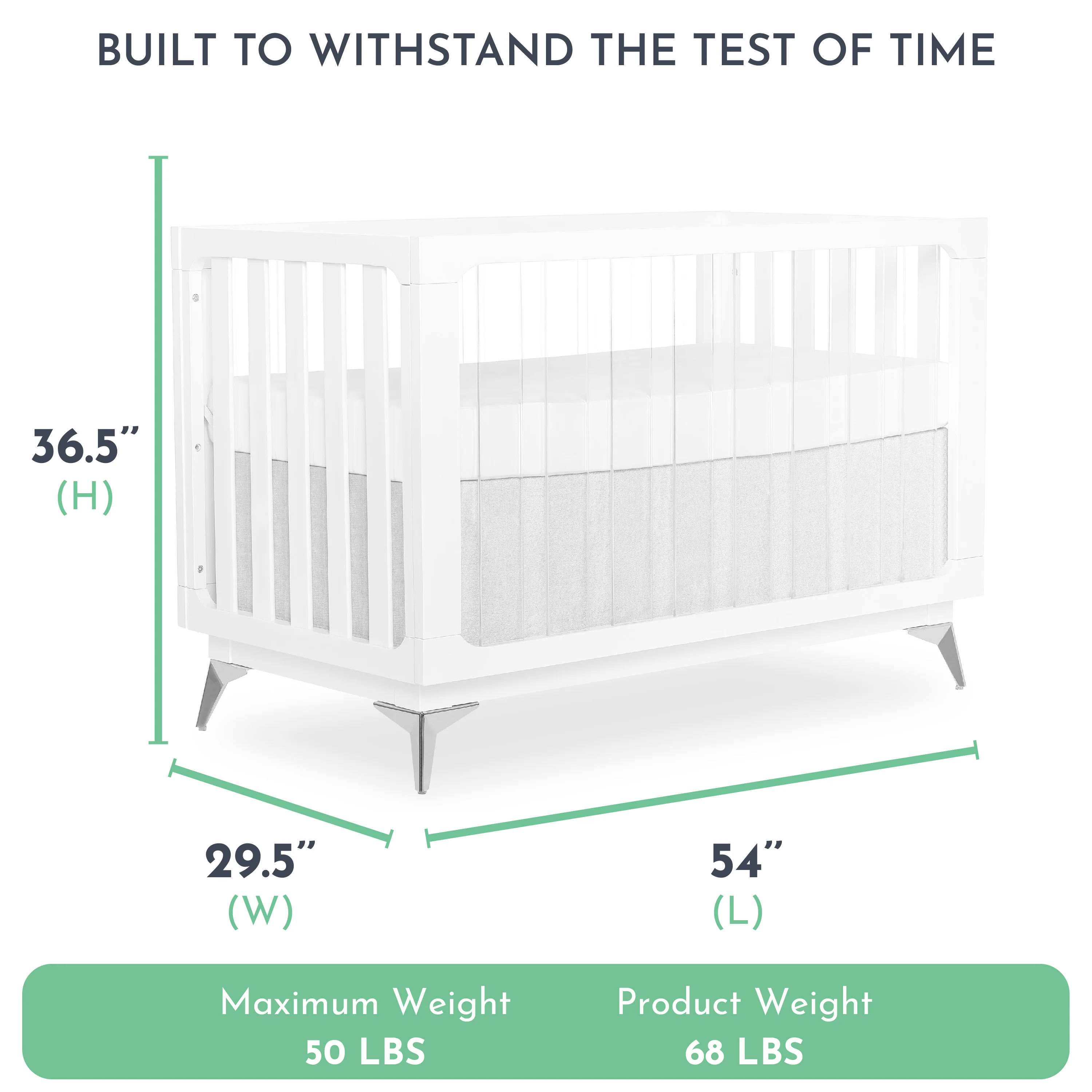 - Evolur Acrylic Millennium 4 in 1 Convertible Crib I Modern Full Size Crib I Baby Crib I Easily Coverts to Toddler Bed and Day bed I Adjustable Mattress Support Base I Acrylic Slats I In White