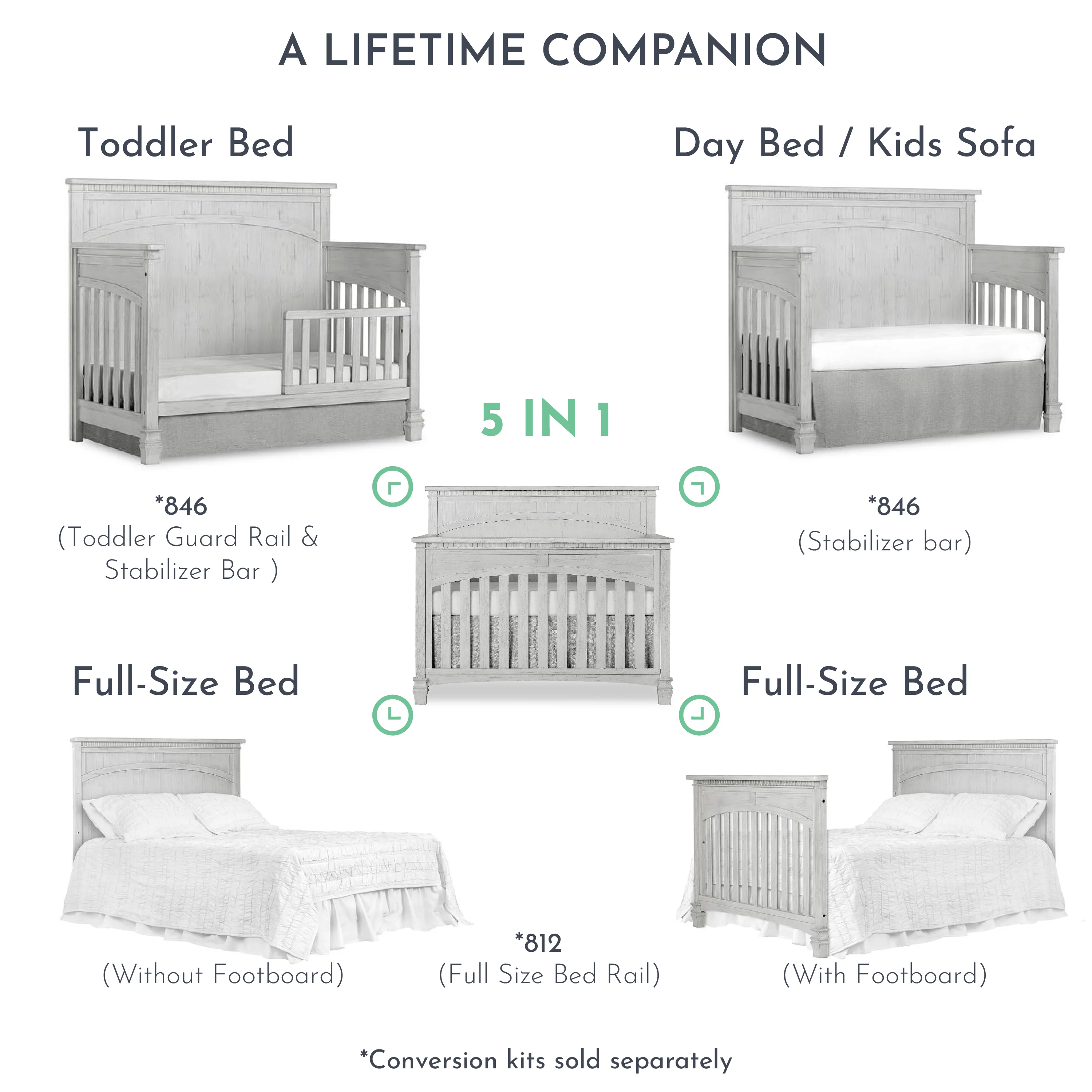 - The Santa Fe converts t-a charming toddler bed with our conversion kit ( sold separately ), daybed and the back panel converts t-a full-size headboard with the simple addition of our wooden bed frame (sold separately)