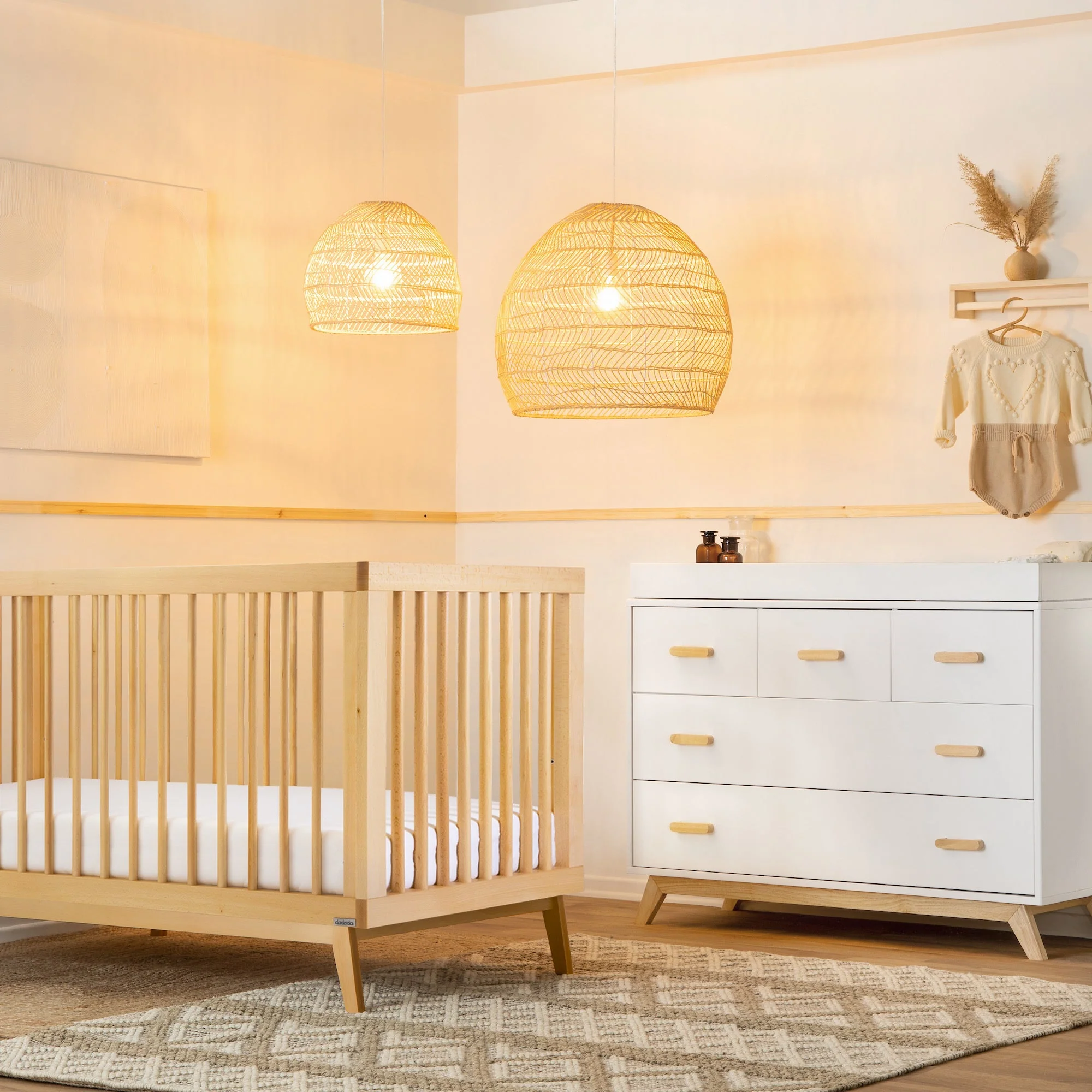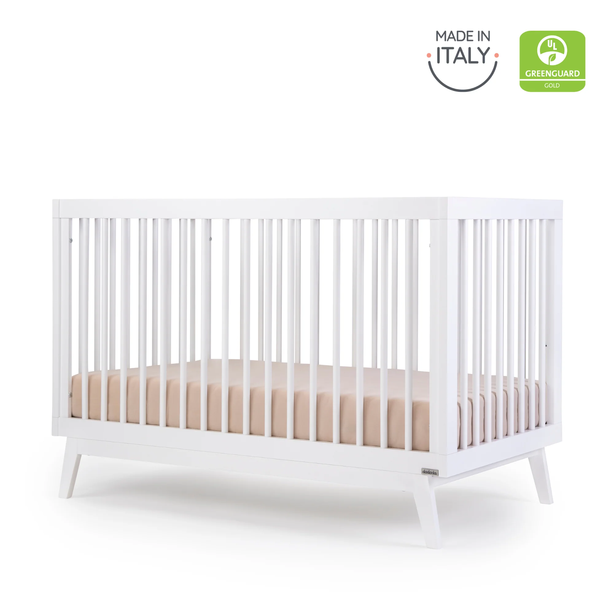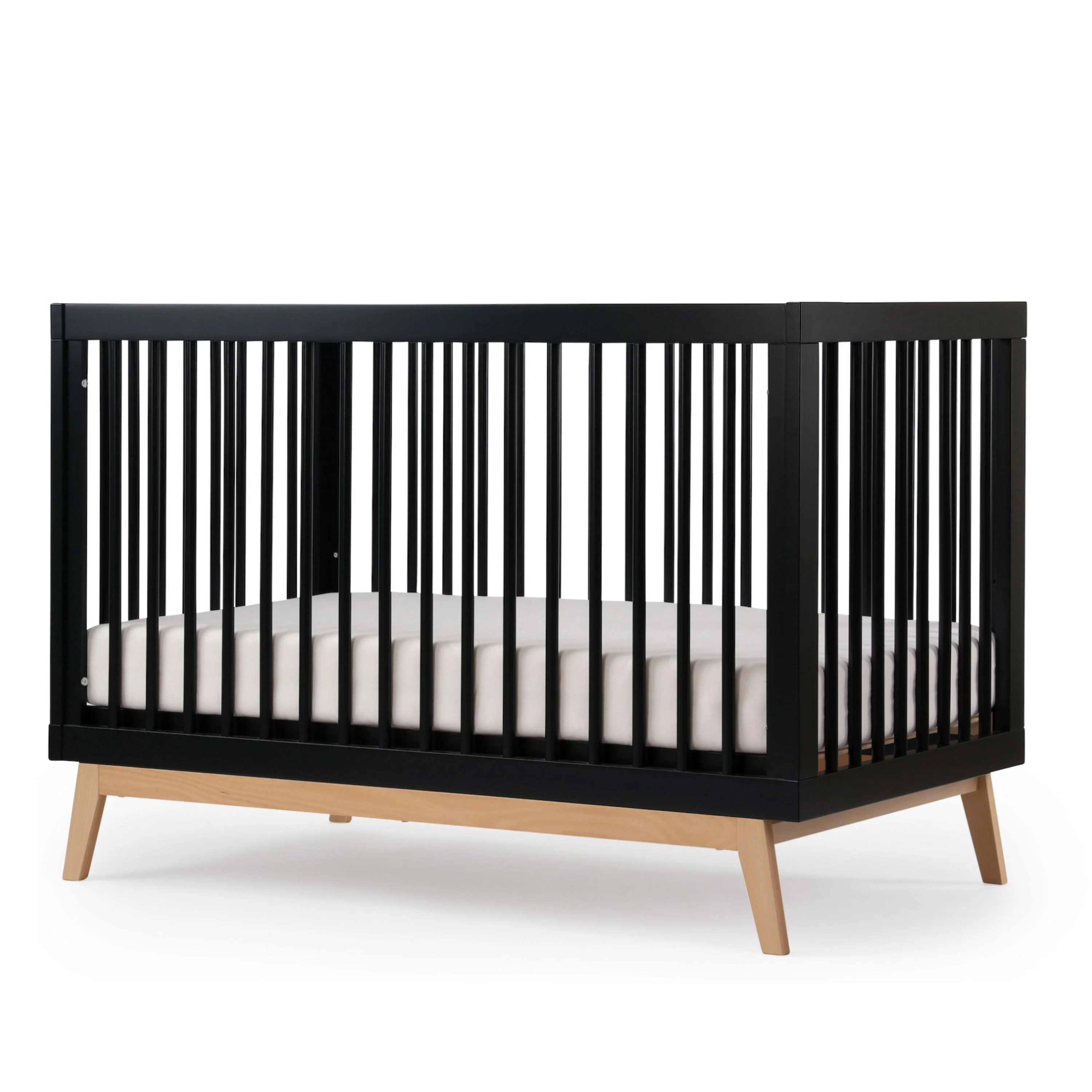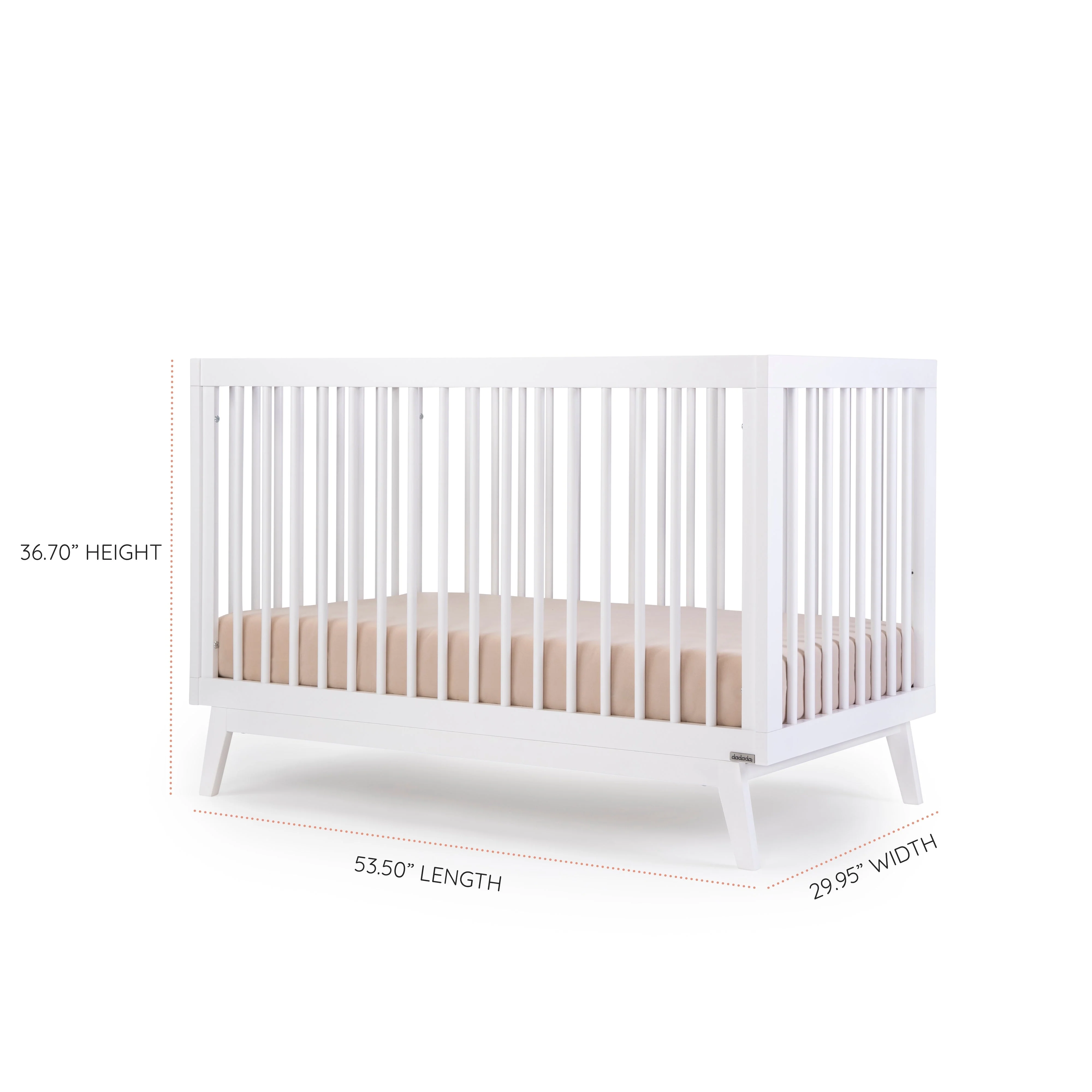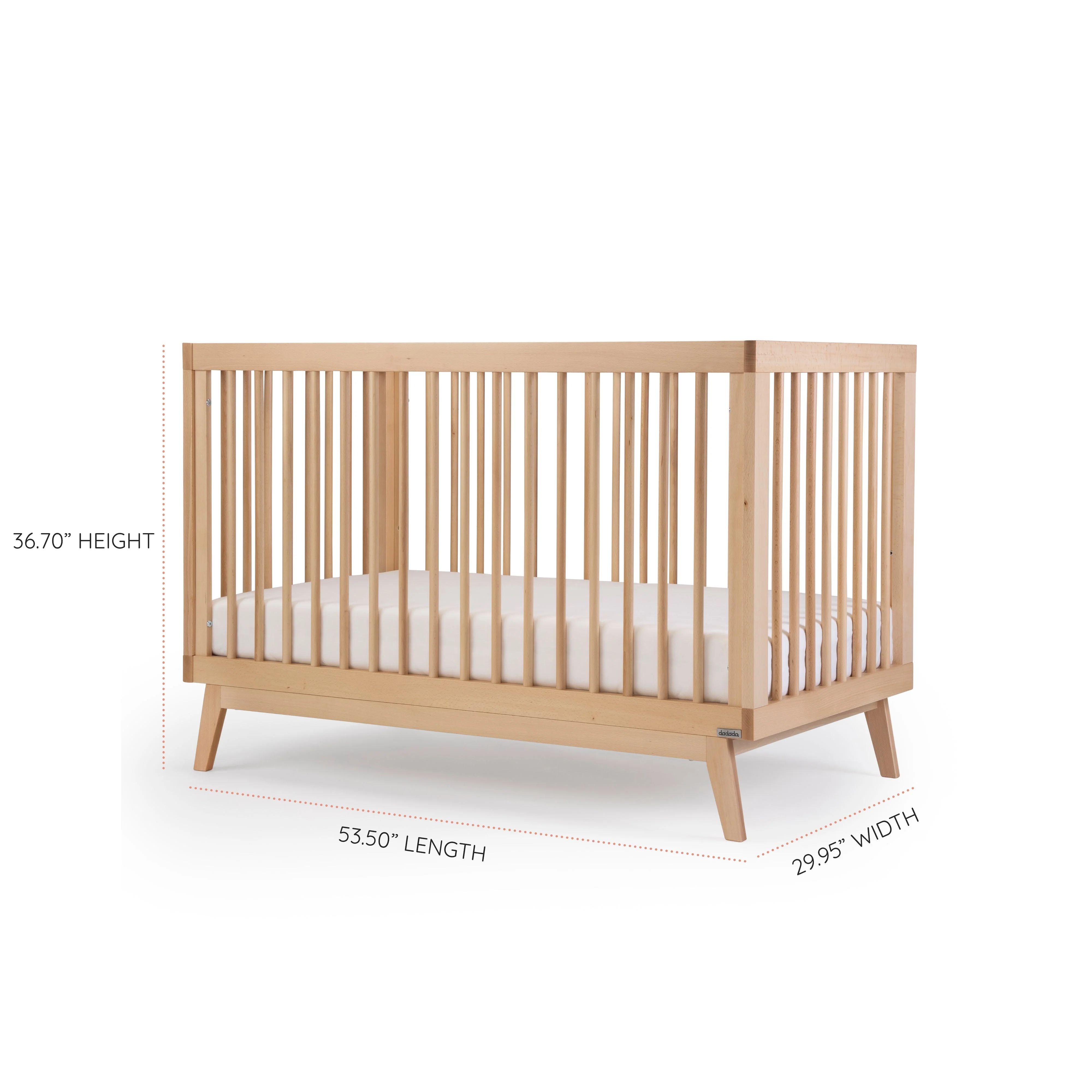 The dadada Soho 3-in-1 Crib offers a classic open Scandinavian design with mid-century modern lines to complement any room style. Sturdy inclined legs tuck beneath a strong frame and all four walls allow easy air circulation and breathability. With three mattress positions available, you can easily adjust the dadada Soho 3-in-1 Crib to match your baby’s growth from newborn to toddler.