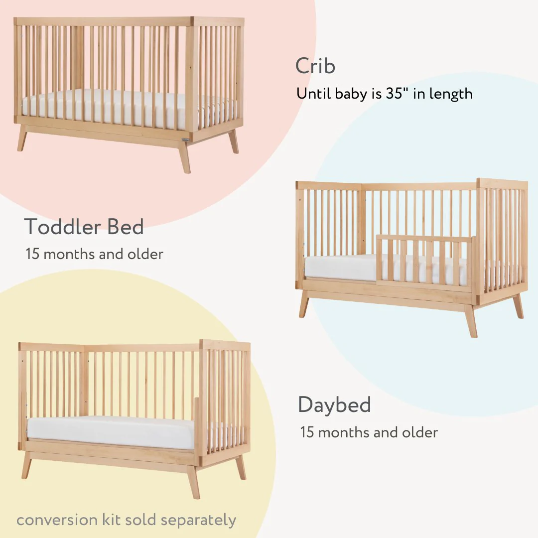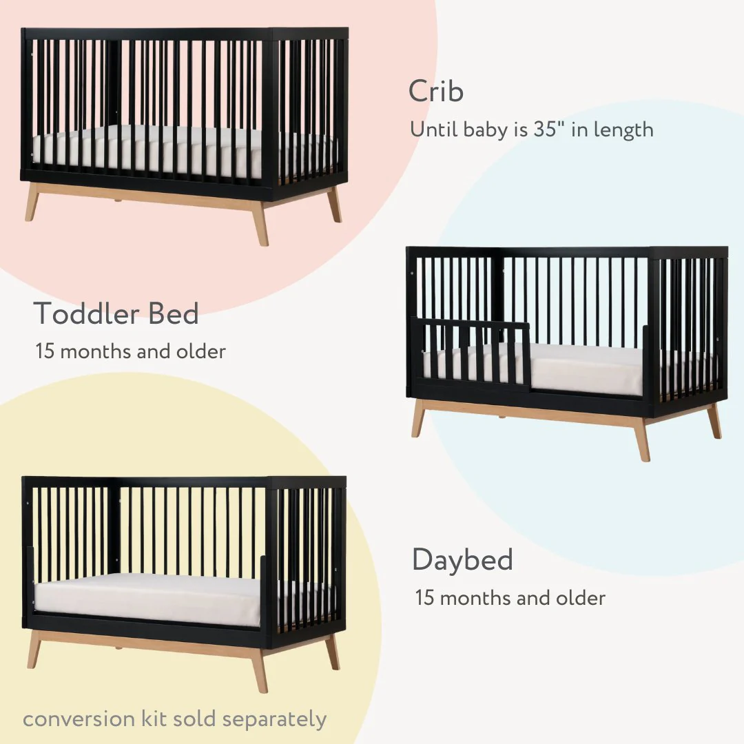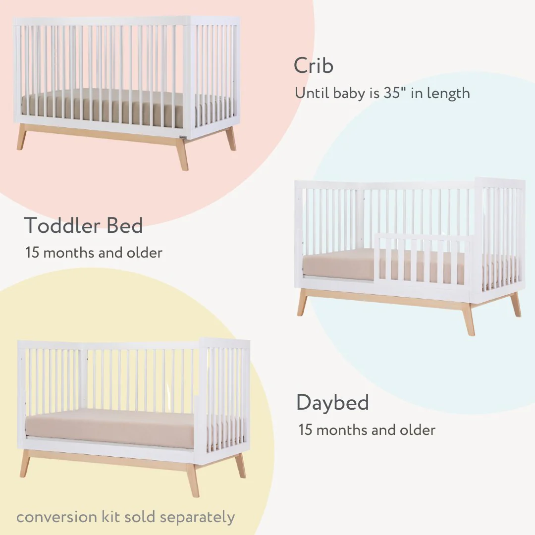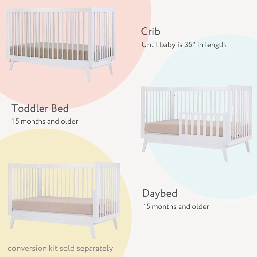 - 3-in-1 convertible crib (crib, toddler bed and daybed)
