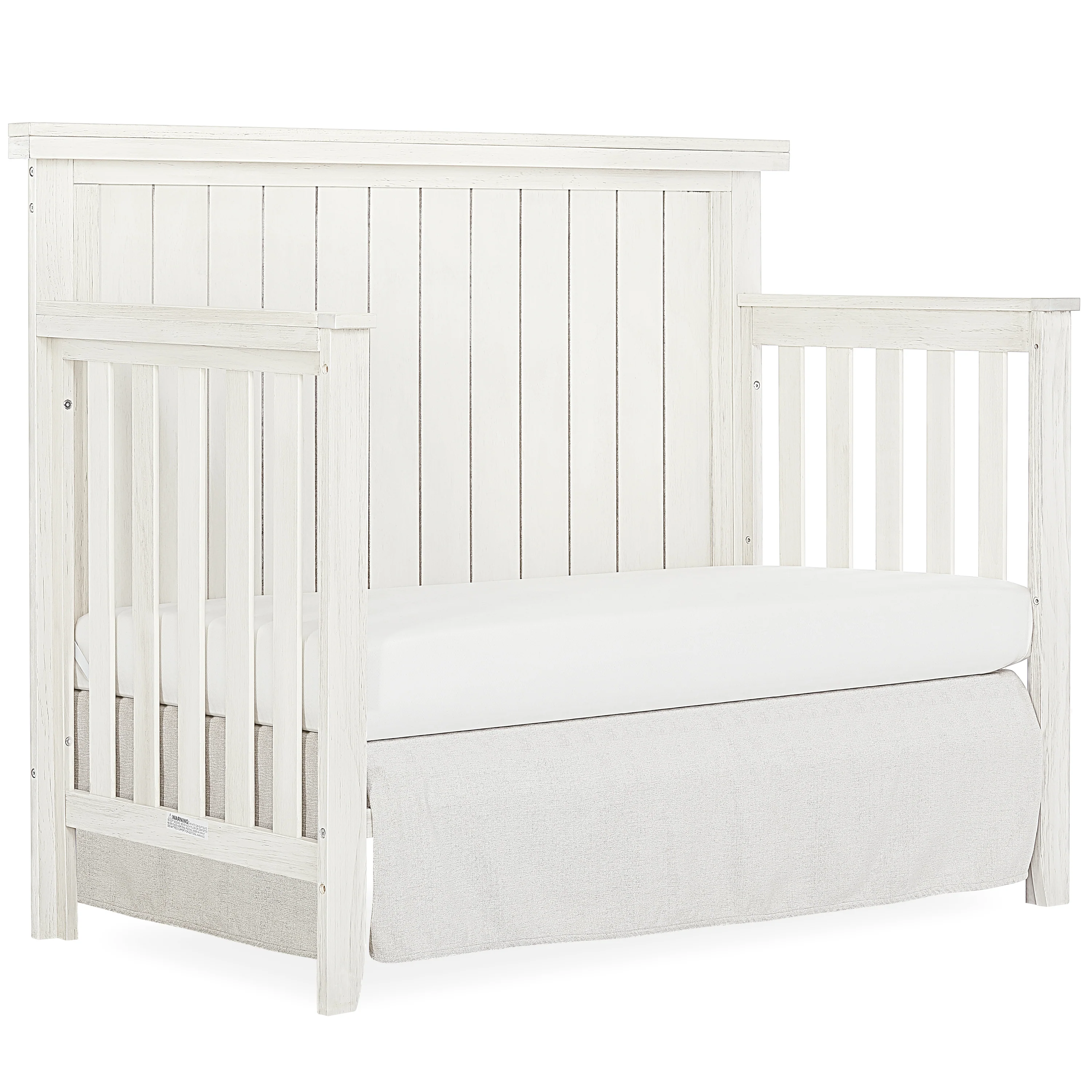 - The Red Wood crib is designed with a plank pattern headboard and an aged finish which creates a modern farmhouse nursery.