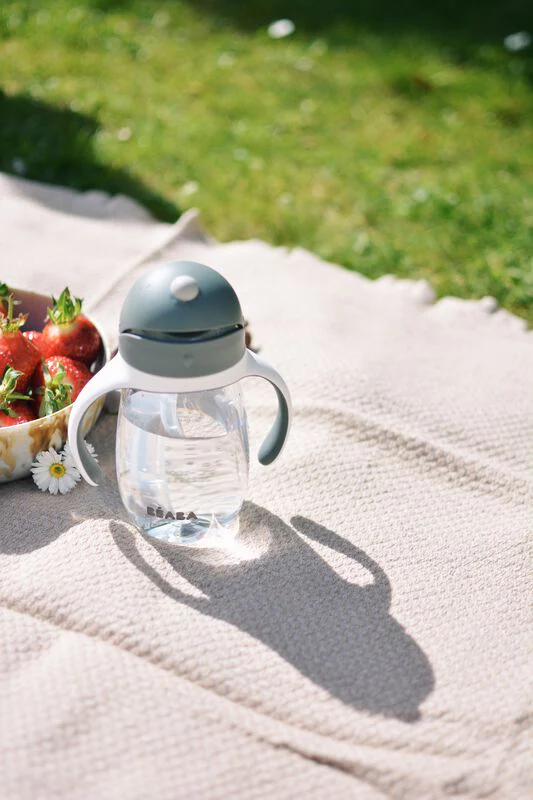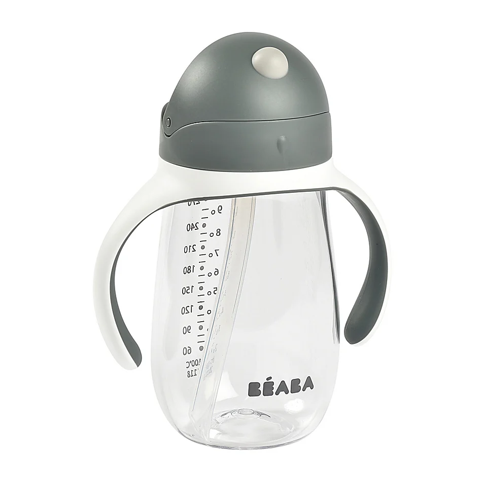 The Straw Sippy Cup from BEABA helps reinforce the transition of children 8 months and up to learn to independently drink on their own. Comes with removable handles plus a handy slide opening that's 100% leak-proof, open or closed.
