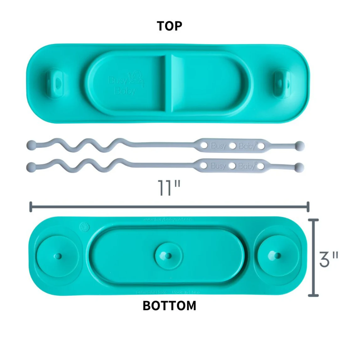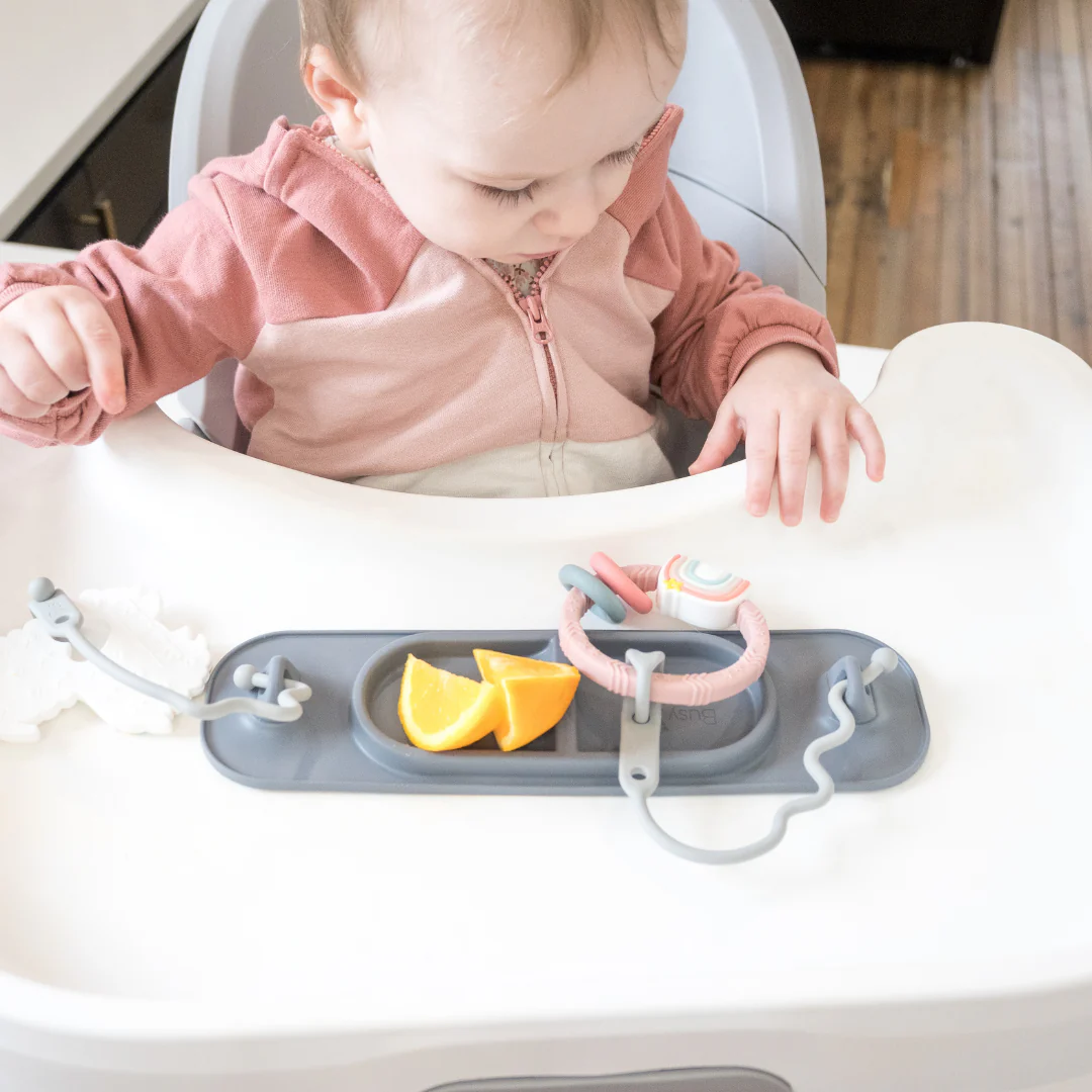 Whether used during playtime or mealtime, our Mini Mat and tether system supports sensory development and fine motor skills, builds problem-solving skills, and encourages their independence as they begin to feed on their own.!