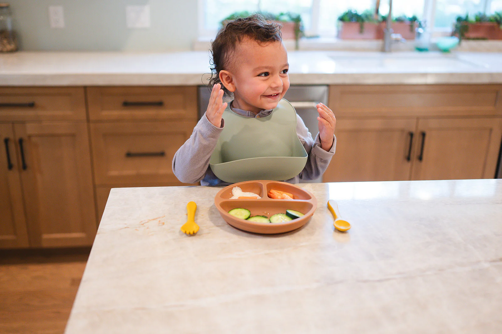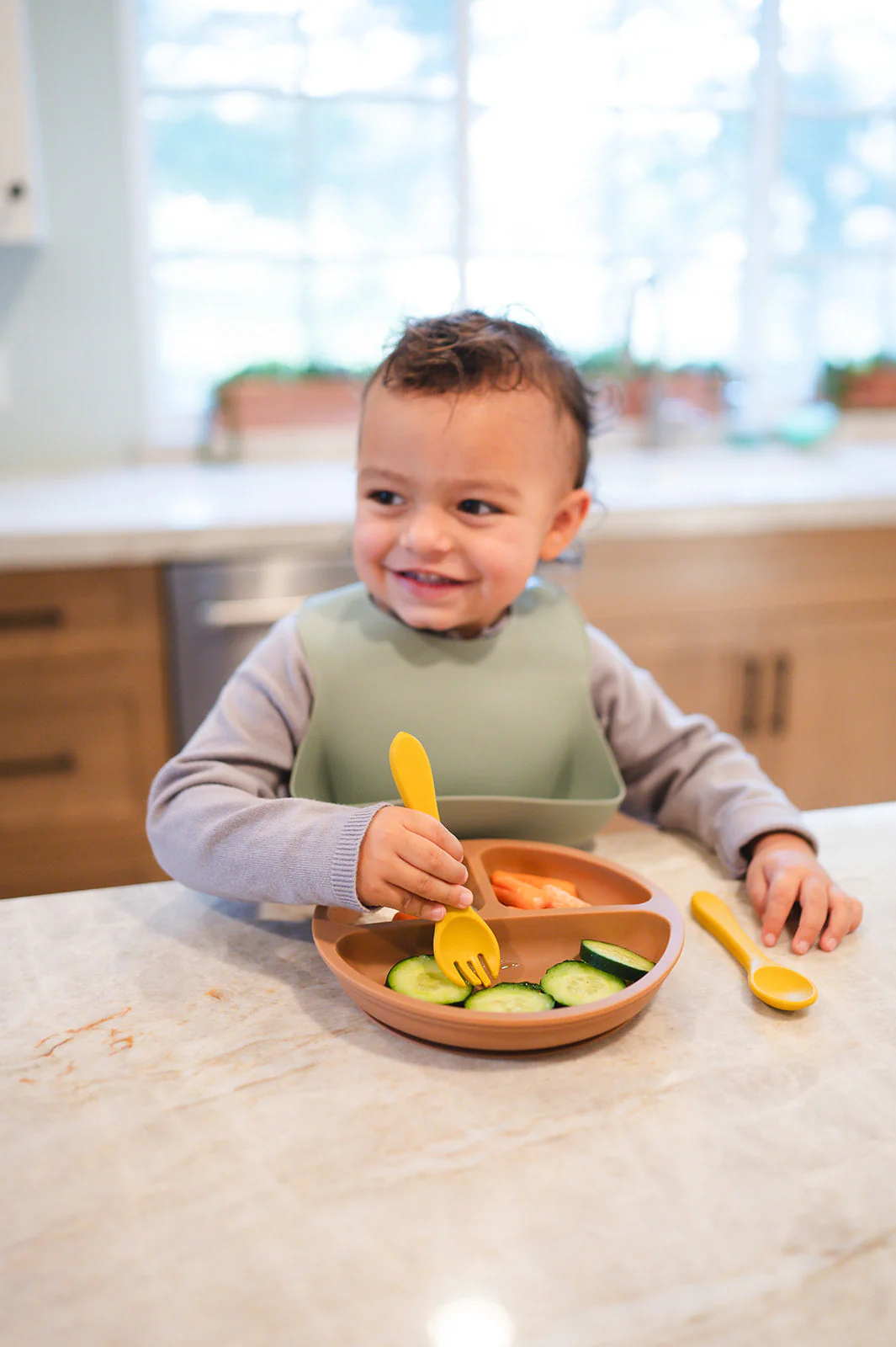 Do you find yourself struggling to feed your little one? Tired of worrying that they'll slip off the table or make a mess by throwing their food on themselves and everything else around them? And then there's the dreaded "spill guard" situation - you put down a mat, they throw it over. You use a plate, they throw it over. With this silicone suction plate, parent feeding worries end! This silicone suction cuts down on spills while being easy to clean and remarkably dishwasher-friendly. It also teaches kids self-feeding skills when combined with feeders--without any frustration involved!