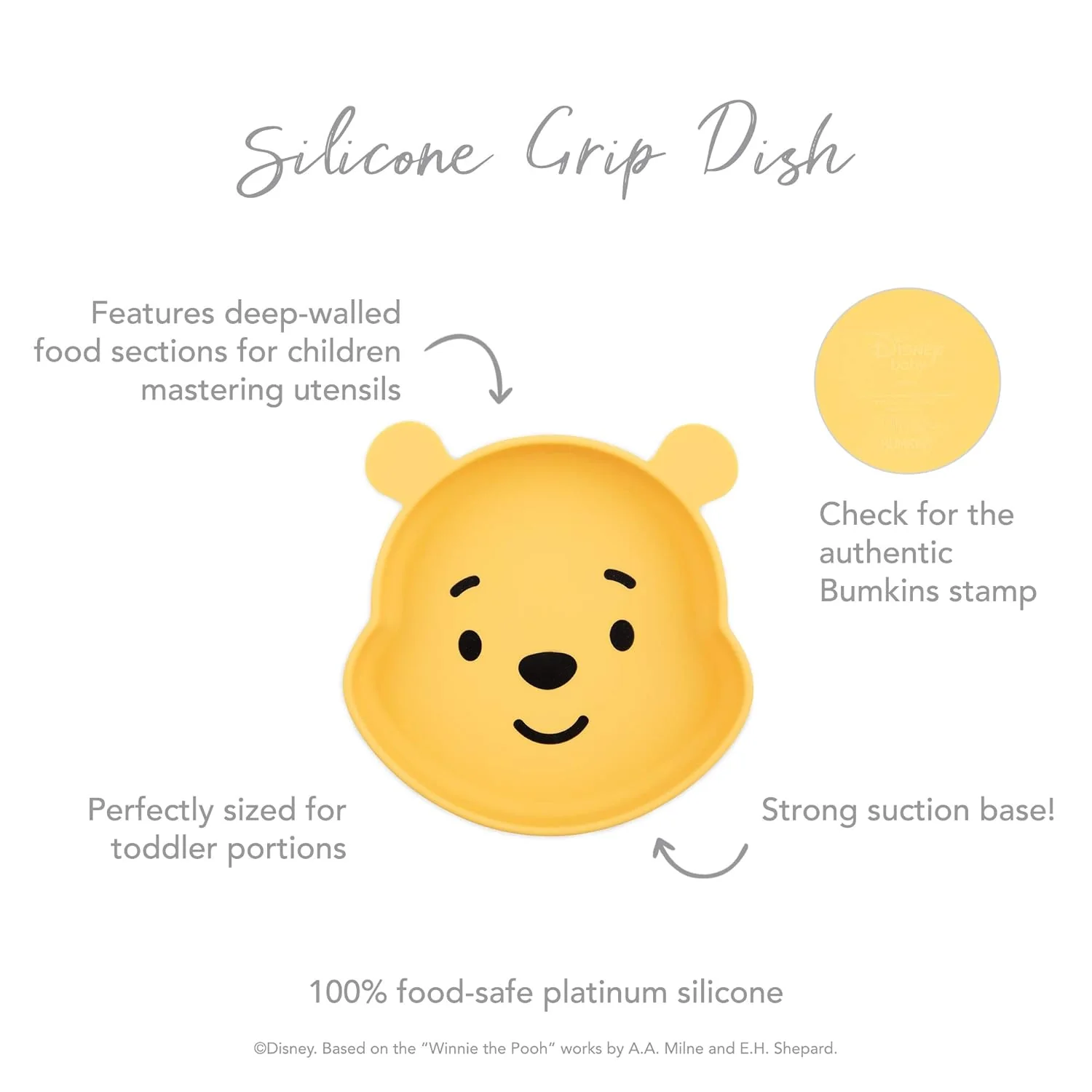 Our Winnie the Pooh Grip Dish is perfect for little ones learning to self-feed! This plate is sized for baby and toddler portions. A strong suction base ensures the dish sticks – even with the most aggressive toddler! To help suction and prevent skid, try dampening the bottom of the suction with just a little bit of water so it stays put!