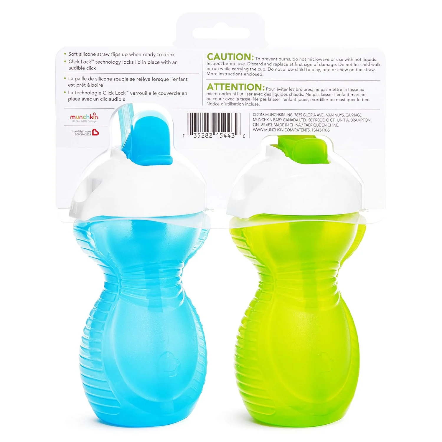 Toddlers and messes go hand in hand, but you can eliminate at least one kind of leak with Munchkin's Click Lock Flip Straw Cups, which come with a 100. These innovative toddler cups have flipping straws and feature a simple locking lid that closes to create a leak-proof seal. You can see, hear, and feel the cup lock in place, so you have triple assurance against dribbles and drips. Munchkin even backs this no-leak promise with a 100. Secured, and rest assured - this might be the sippy cup of your dreams. et of (2) flip straw cups with 9 ounce capacity for water, milk or juice
