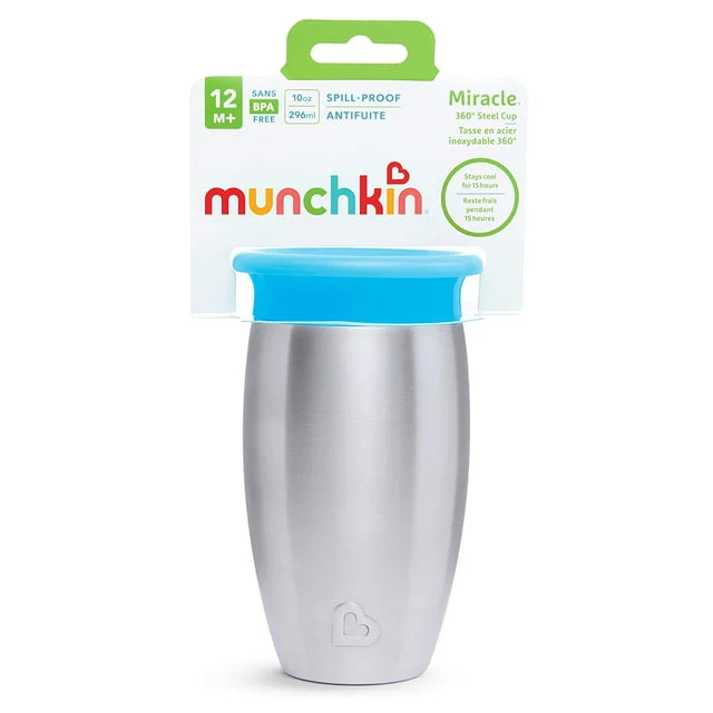 Miracle Stainless Steel 360° Sippy Cup is here to "steel" your heart when it comes to sippy cups! Let's face it: toddlers are a messy bunch, especially when first navigating sippy cups. Now imagine a world in which drinks didn't spill at all-no, it's not a miracle- it's Munchkin's Miracle 360° Cup.