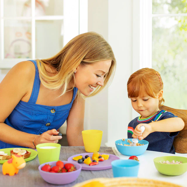 - Perfectly sized plates for toddler meals and high chair trays
