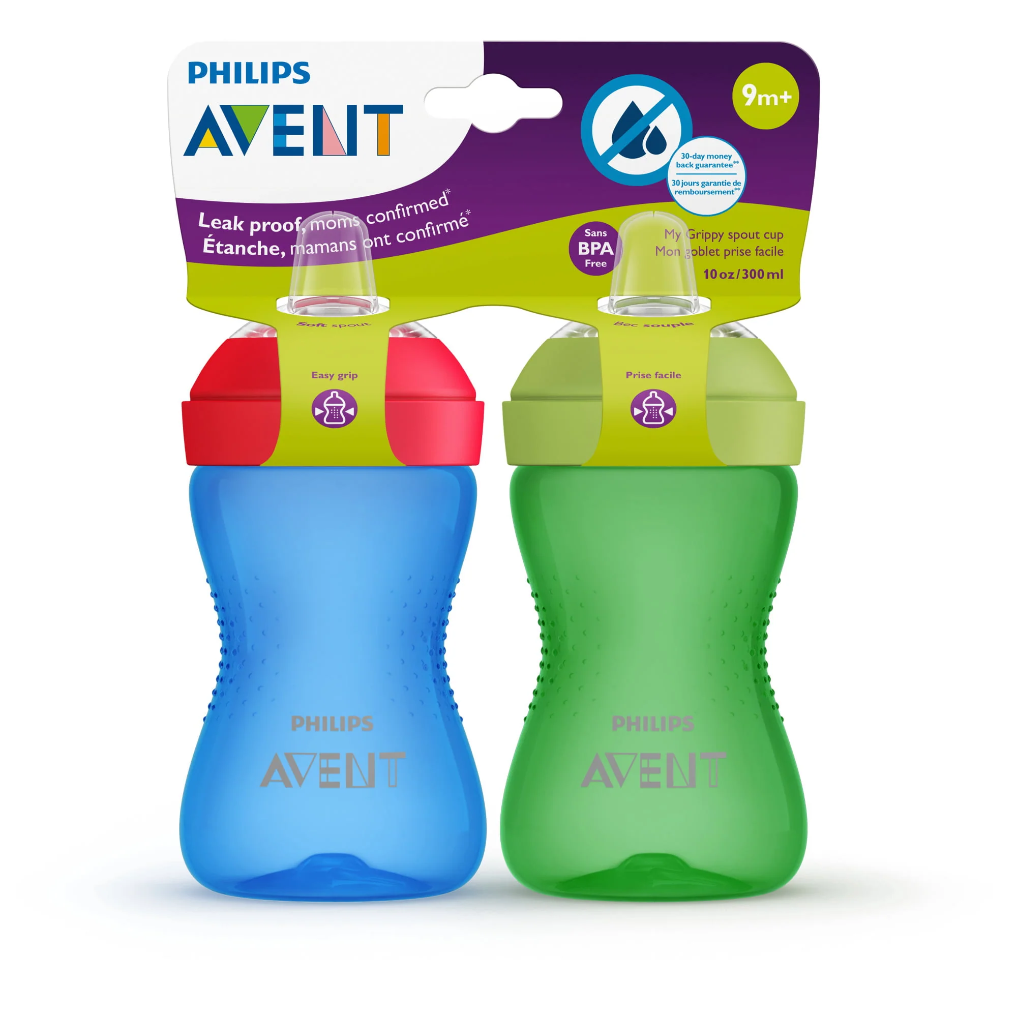 Philips Avent My Grippy Spout Cups have a contoured shape with anti-slip textured grips that's easy for little hands to hold and a soft silicone spout that's gentle on gums. Its leak-proof design is perfect for growing toddlers.