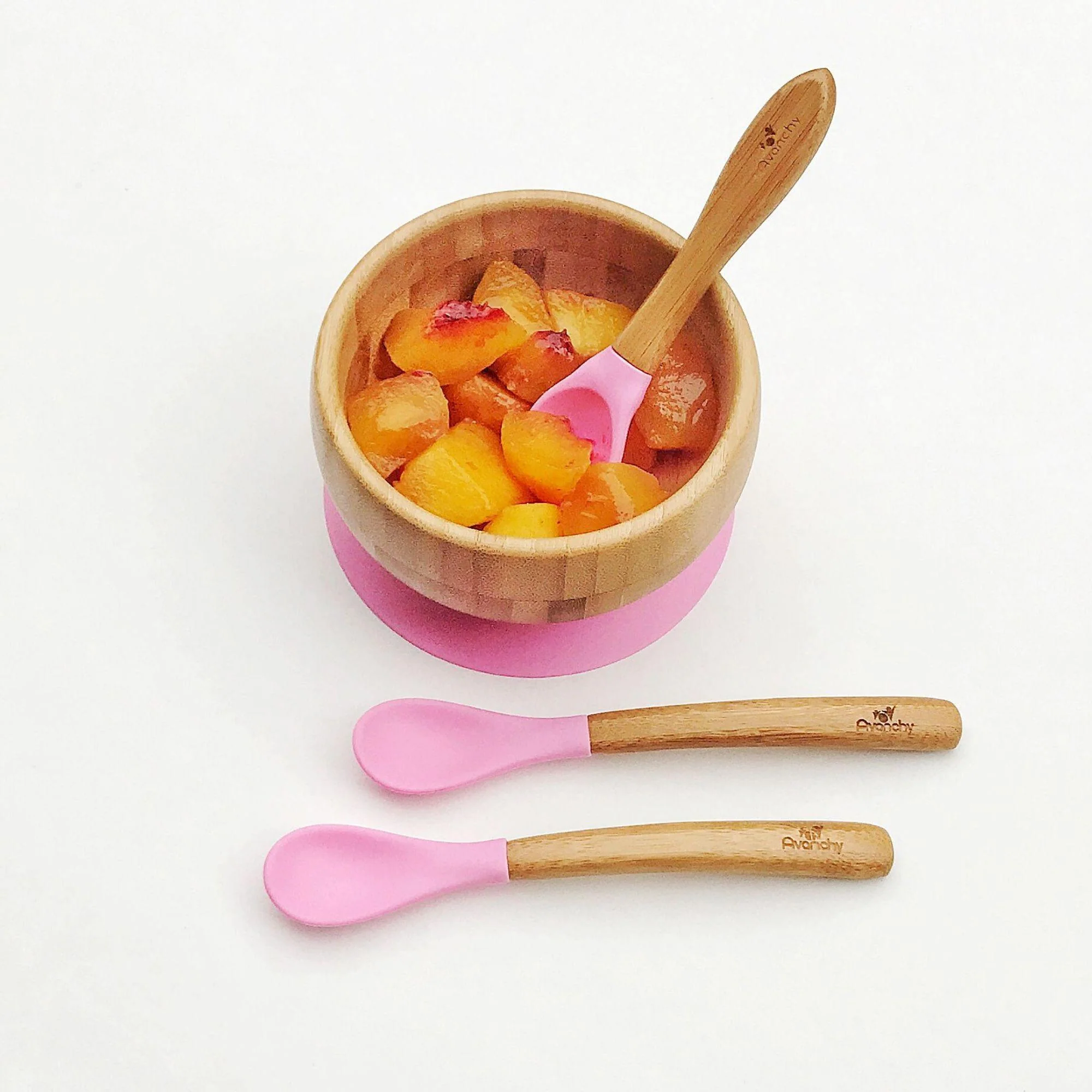 Introduce solids with ease using Avanchy's Bamboo Infant Spoons. Designed for younger babies, this spoon features longer handles for parent-led feeding and thinner scoops for tiny mouths. Made from organic bamboo and 100% food-grade silicone tips, it is the eco choice for your baby's first foods.