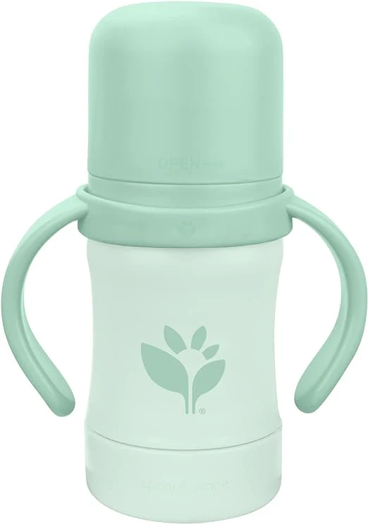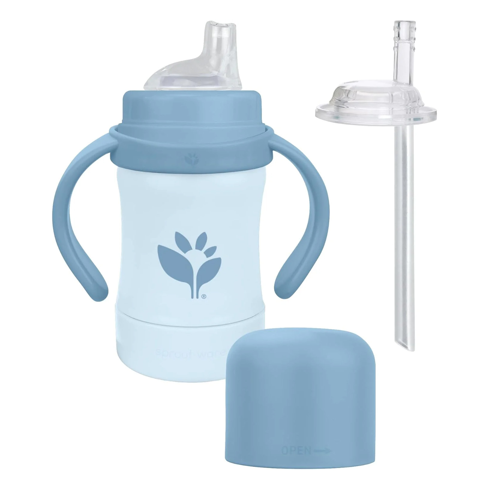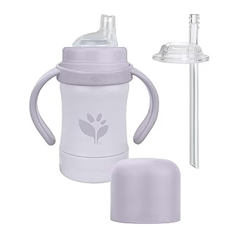 Keep your little one sipping safely throughout development stages with our green sprouts® Sprout Ware® Sip & Straw. Our innovative Sprout Ware® plant-plastic is a non-toxic, lightweight, durable, and recyclable material made without PVC and hormone disrupters like BPA for baby’s health and safety. Safer materials reduce the risk of chemical leaching—with our non-toxic straw sippy cup, liquids touch only Sprout Ware® plant-plastic and 100% platinum-cured silicone. The soft sippy spout made from food-grade silicone allows baby to comfortably sip when transitioning from bottle-feeding and breast-feeding, and drip-free spout only releases liquid when pressure is applied to avoid spills. As your little one grows, the straw spout encourages proper oral development, and the removeable straw allows for traditional or tilted drinking positions. The contoured design and removable handles are easy to grip, hold and tilt while learning. A wide neck and removable base make this non-toxic sippy cup easy to clean by hand for longevity, but all parts are dishwasher safe. Made with love for little ones 6 months and up and holds 6 ounces (177 ml) of liquids. Our training cup has interchangeable parts with other green sprouts® bottle and cups, including spouts, collar, and bases, for convenience and to grow with baby for a longer product lifespan.