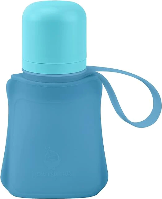 Keep your little one sipping safely at any age with our green sprouts® Sprout Ware® Sip & Straw Pocket made from Silicone and Plants (8 oz.). Our Sprout Ware® plant-plastic collar & travel cap is an innovative bio-based material that replaces petroleum plastics to avoid harmful chemicals such as PVC and hormone-disrupting BPA, BPS, BPF, BFDGE, NOGE or BADGE additives. The Sip & Straw Pocket pouch is made from 100% LFGB silicone that is soft, flexible, and lightweight. These pouches stand upright to easily add formula or breastmilk and is safe for the freezer, stovetop, microwave. The soft sippy spout is also made from 100% LFGB silicone, which allows baby to comfortably sip when transitioning from bottle-feeding and breast-feeding, and drip-free spout only releases liquid when pressure is applied to avoid spills. As your little one grows, the straw spout encourages proper oral development, and the removeable straw allows for traditional or tilted drinking positions. The wide neck makes this sip & straw pocket easy to fill and clean by hand for longevity, and all parts are dishwasher safe. Made with love for little ones 3 months and up and holds 8 ounces (236 ml) of liquid. Our sip & straw pocket has interchangeable parts with other green sprouts® bottle and cups and are compatible with most wide-neck breast pumps and bottle brands.