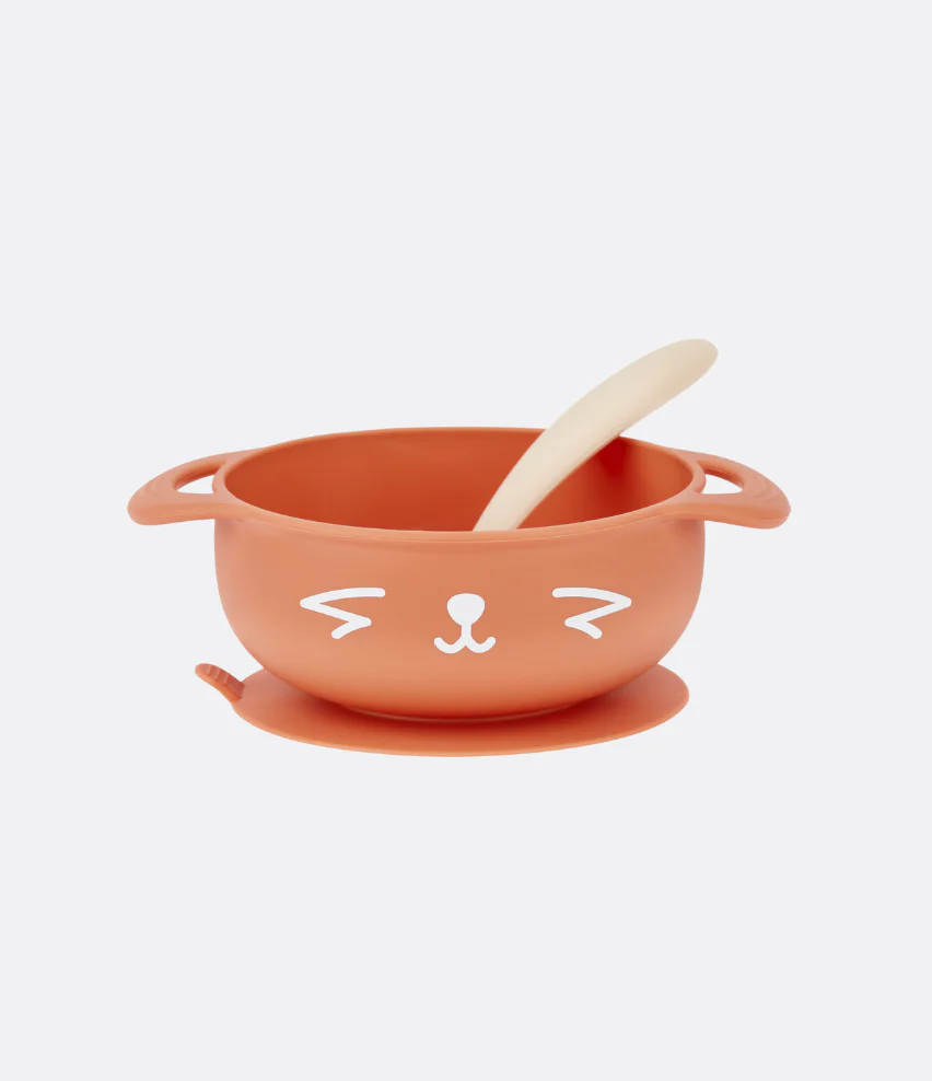 - Includes 1 silicone baby bowl and 1 soft silicone weaning spoon