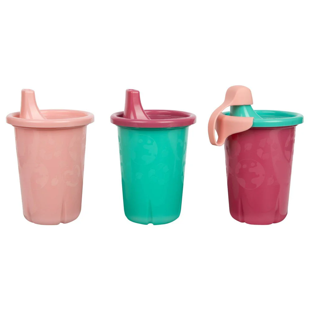 The First Years GreenGrown Reusable Spill-Proof Sippy Cups, Pink/Teal