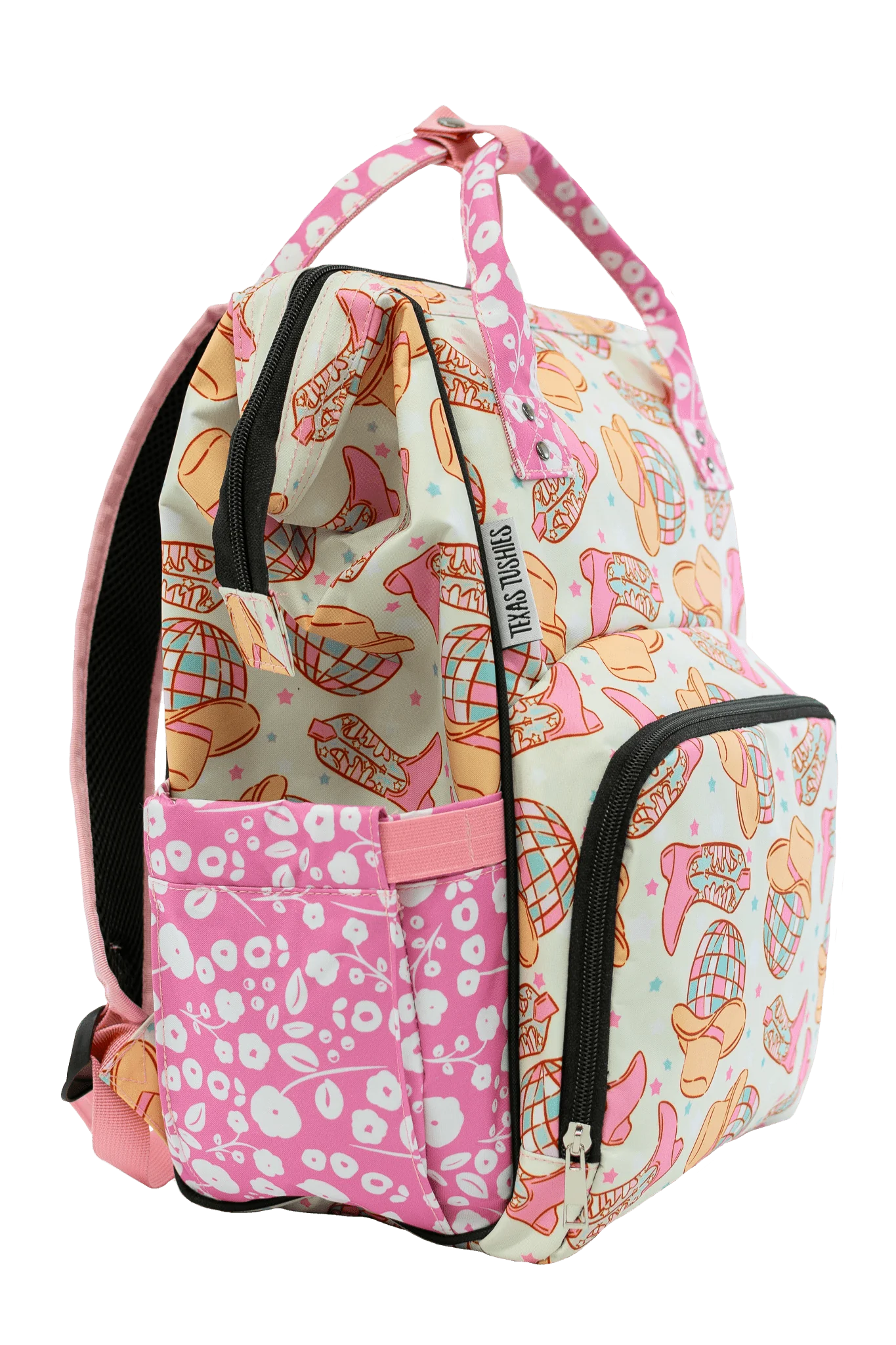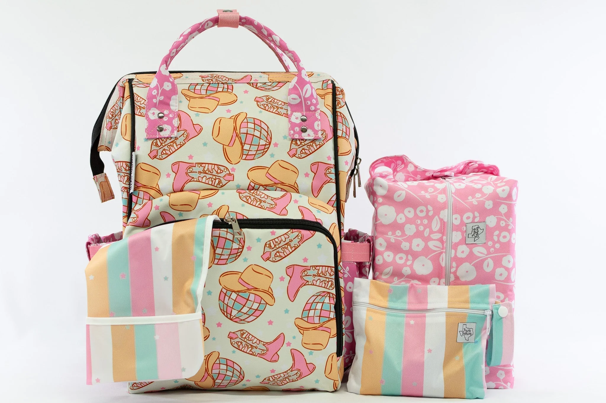 It’s all about the bag! Available in several different prints, our diaper bags are sure to get some attention. Not only are they trendy, but the backpack-style design allows for a comfortable and convenient way to carry everything you need when you’re on the go. Designed with the busy parent in mind, our diaper bags have a zippered pocket on the outside, as well as three insulated pockets on the inside. The excellent quality provides the durability necessary to hold everything you and your baby need for your outing.