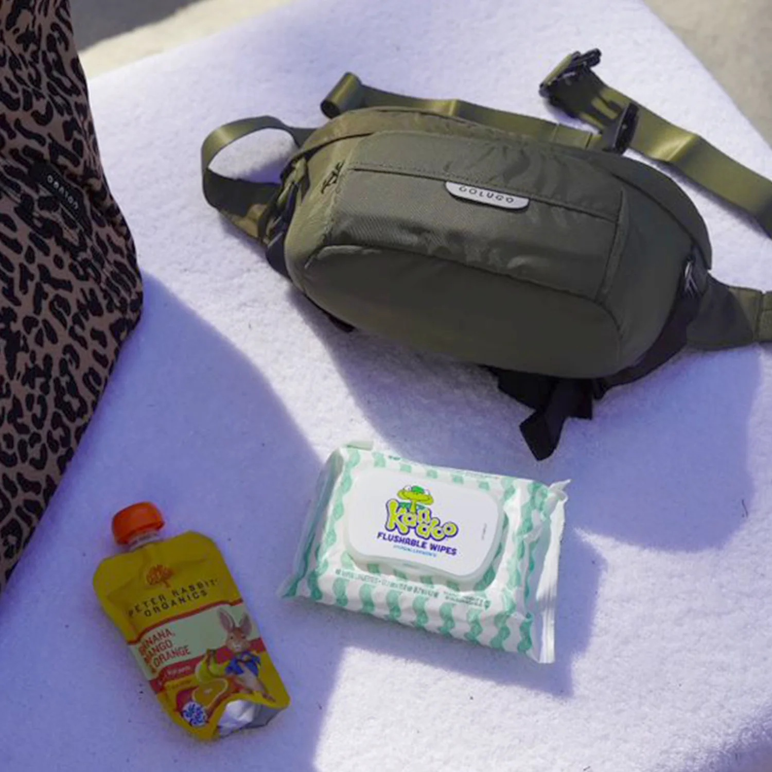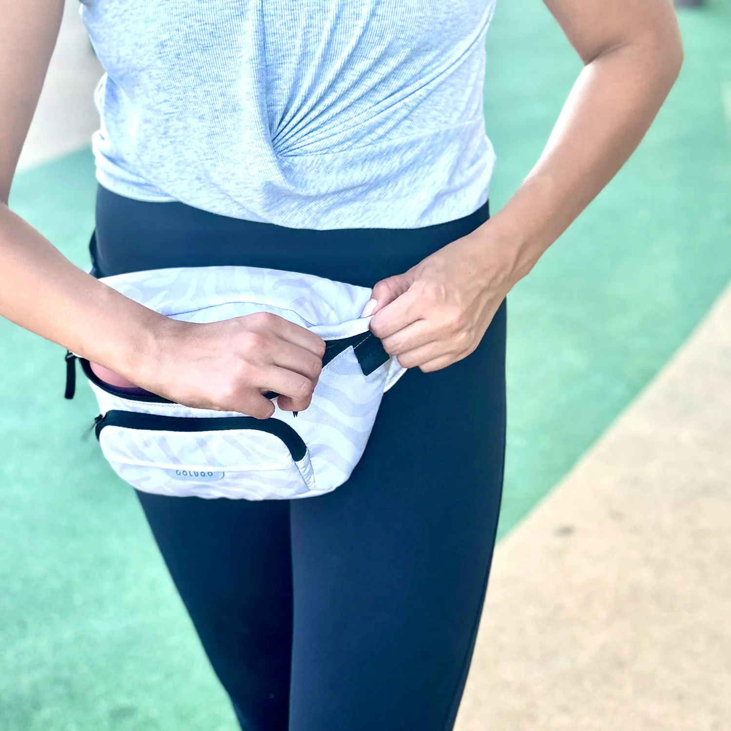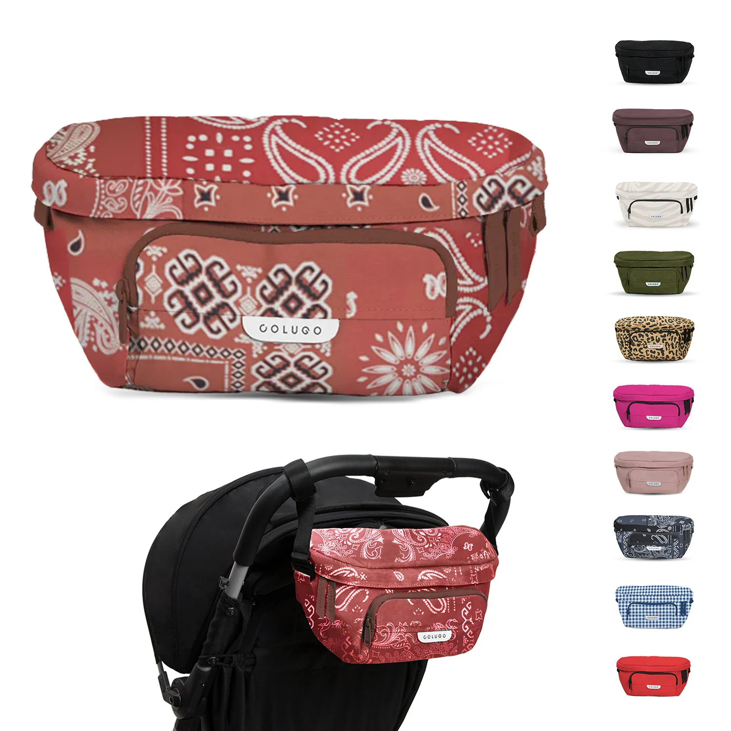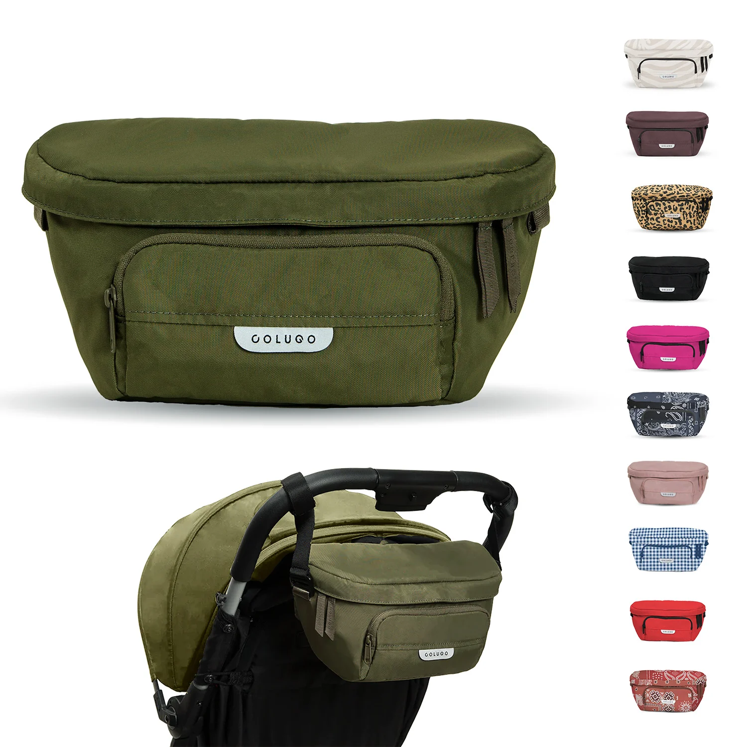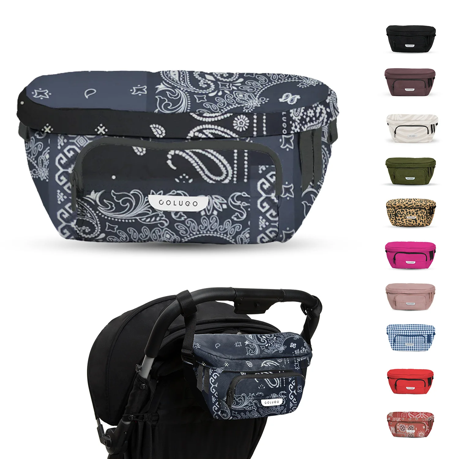 Designed to fit to your Colugo stroller, this organizer has 2 secure attachment points, 2 cup holders and 3 zippered pockets. It can fit pouches, wipes, pacifiers — the things you need in an instant while you're on the go. It also converts into a fanny pack or crossbody bag for those moments you want to take your valuables with you. You’ll be surprised how much you can fit in this bag.