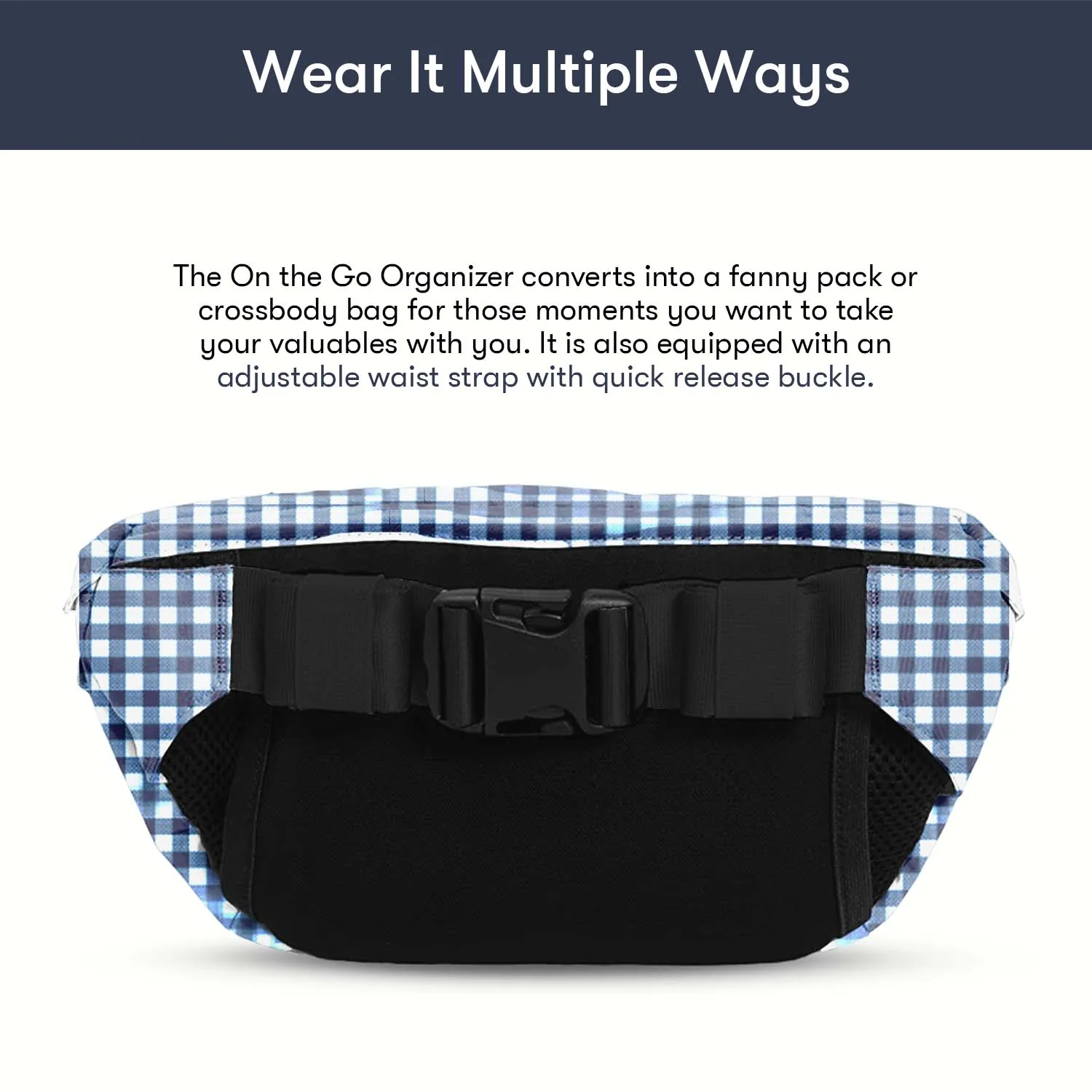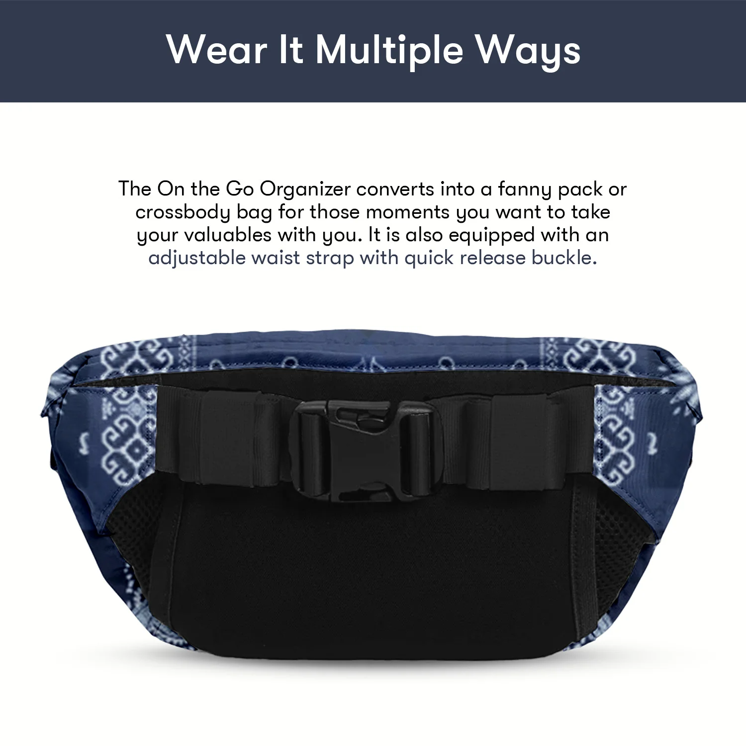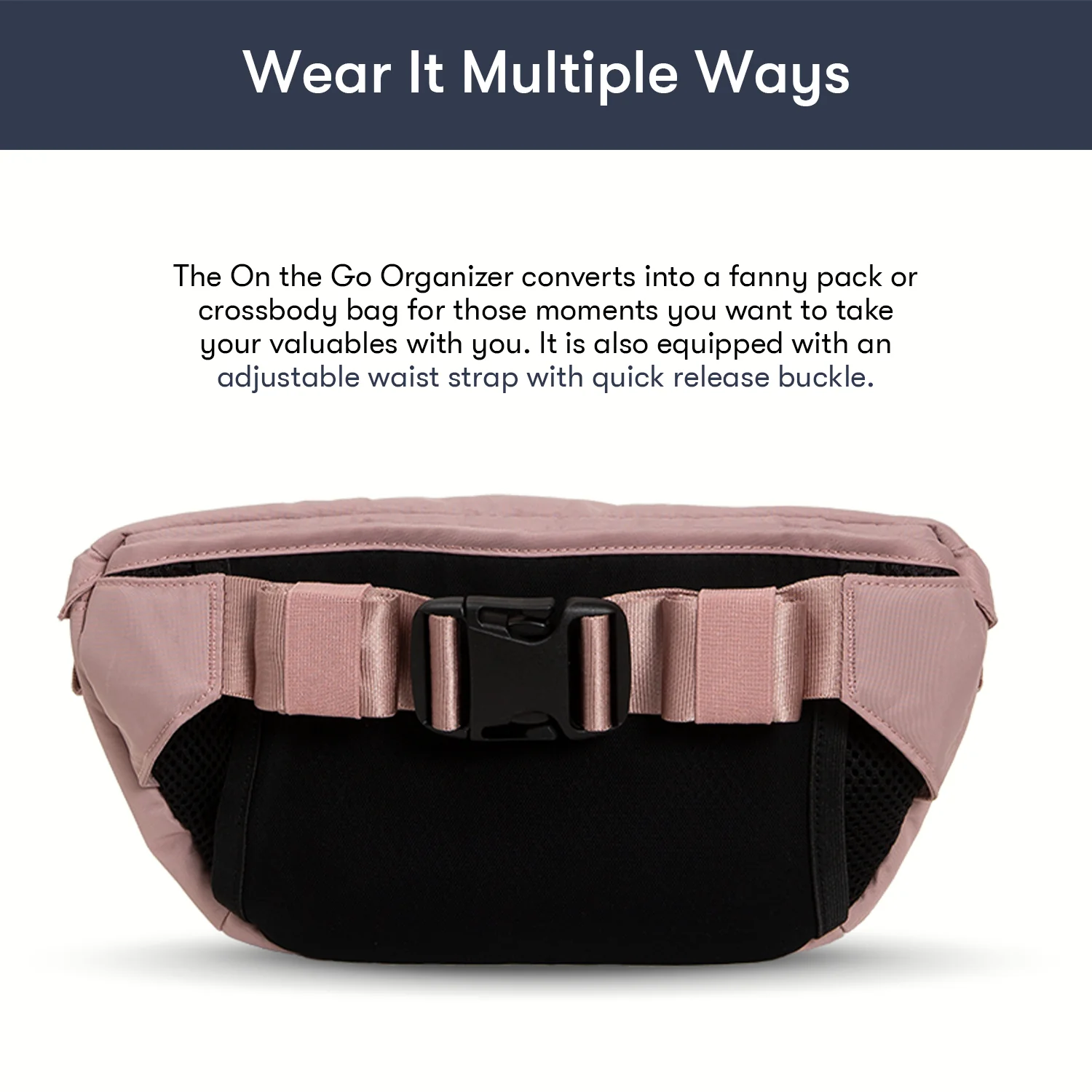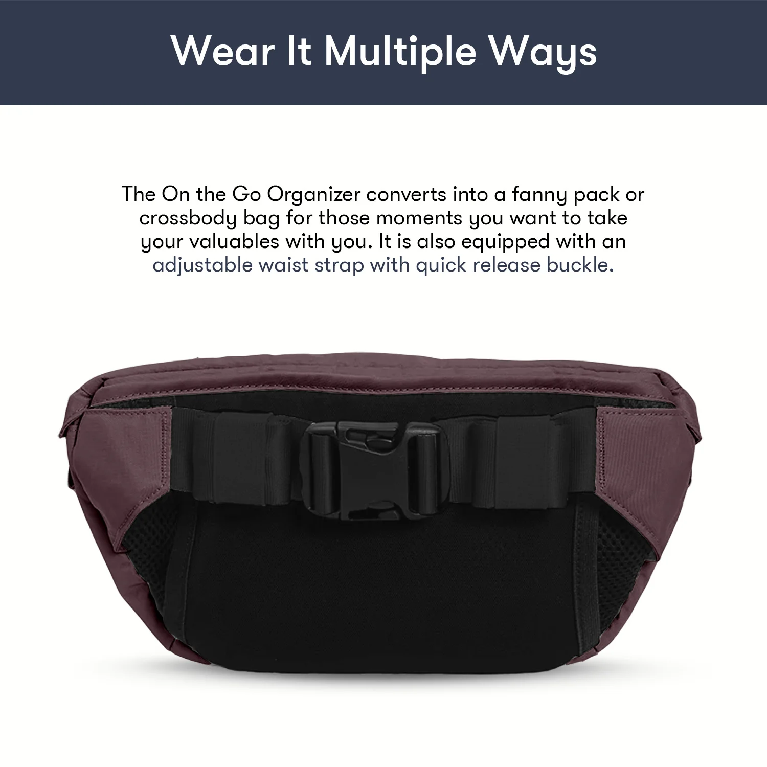 - Converts into a fanny pack or crossbody bag