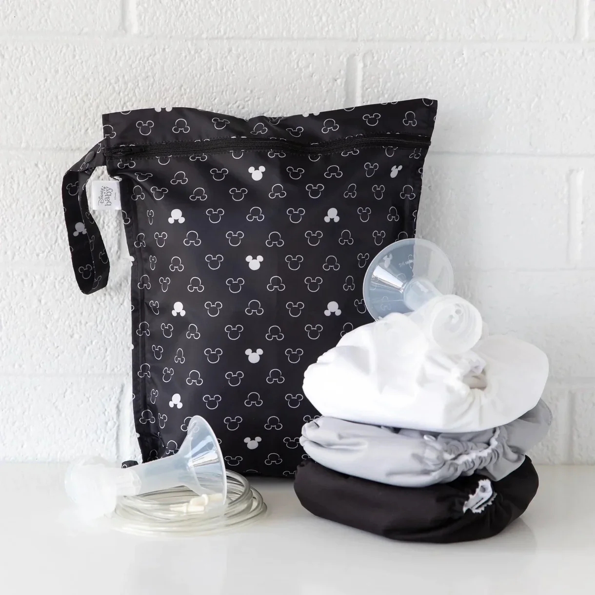 Fresh off the celebration of his 90th birthday, Mickey Mouse and his sweetheart, Minnie Mouse, are sporting new, classic black and white looks in our Wet Bags.