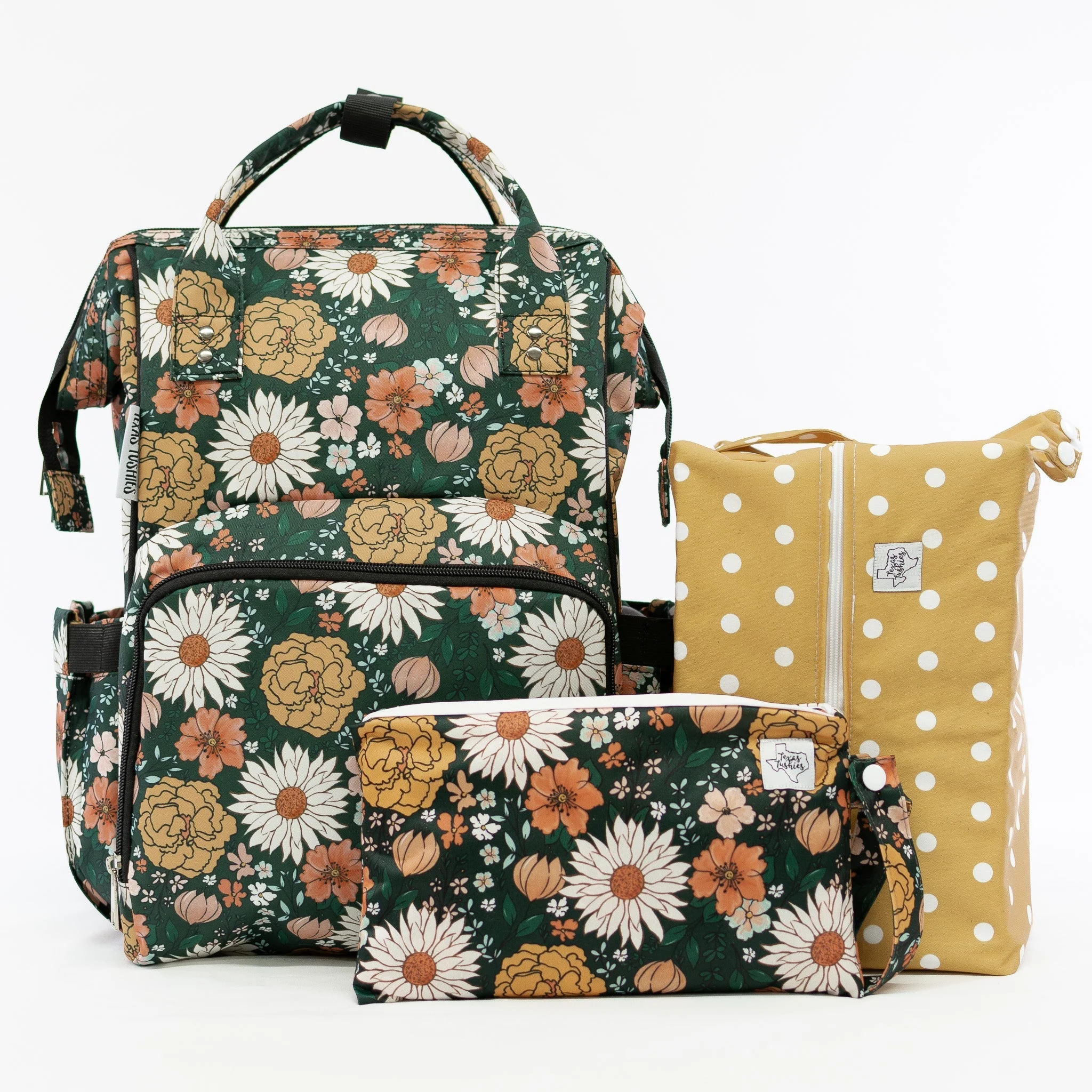 It’s all about the bag! Available in several different prints, our diaper bags are sure to get some attention. Not only are they trendy, but the backpack-style design allows for a comfortable and convenient way to carry everything you need when you’re on the go. Designed with the busy parent in mind, our diaper bags have a zippered pocket on the outside, as well as three insulated pockets on the inside. The excellent quality provides the  durability necessary to hold everything you and your baby need for your outing.