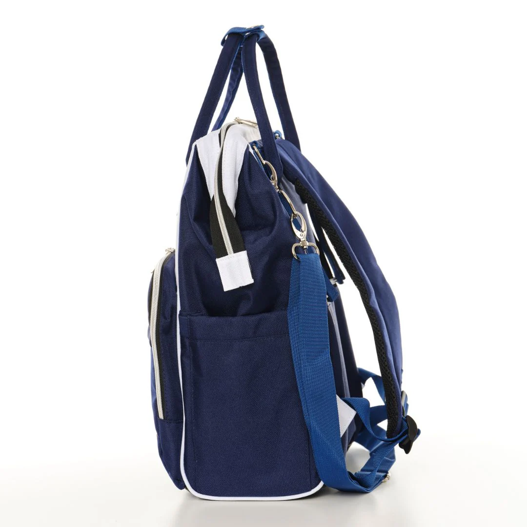 Room For Everything: Large capacity interior with 7 pockets, 8 exterior pockets, cell phone pocket with USB charging hub, and 2 large insulated drink holders allow you to easily pack everything from laptops and baby wipes to diapers and breast pumps. On top of all that our recycled material is water & stain resistant as well machine washable.