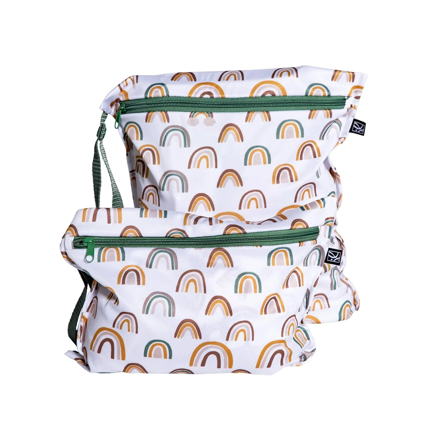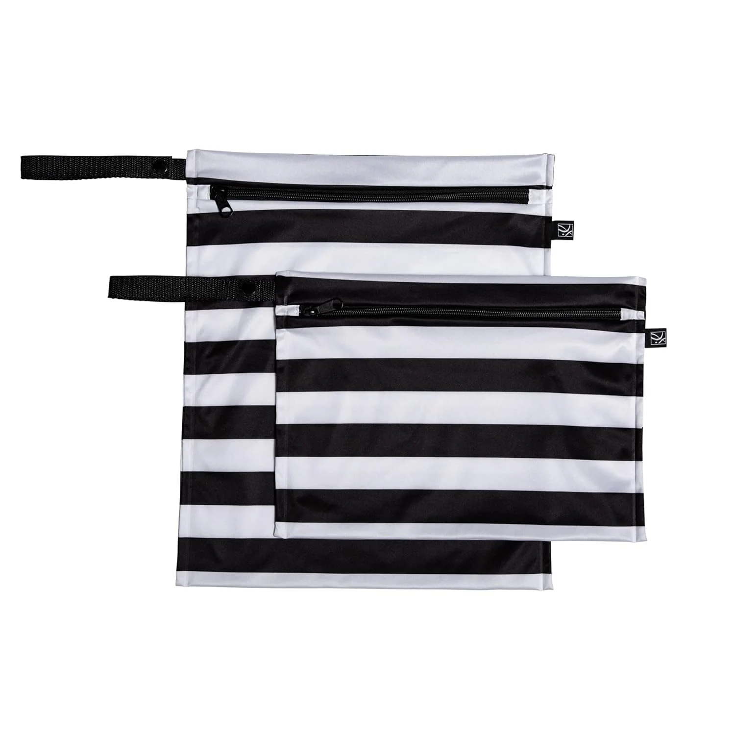 - 2 PACK: One large and one small odor- and moisture-controlling bag with zippered top closure and snap wrist strap; an on-the-go solution for carrying soiled diapers, wash cloths, wet clothing, swim suits and more.