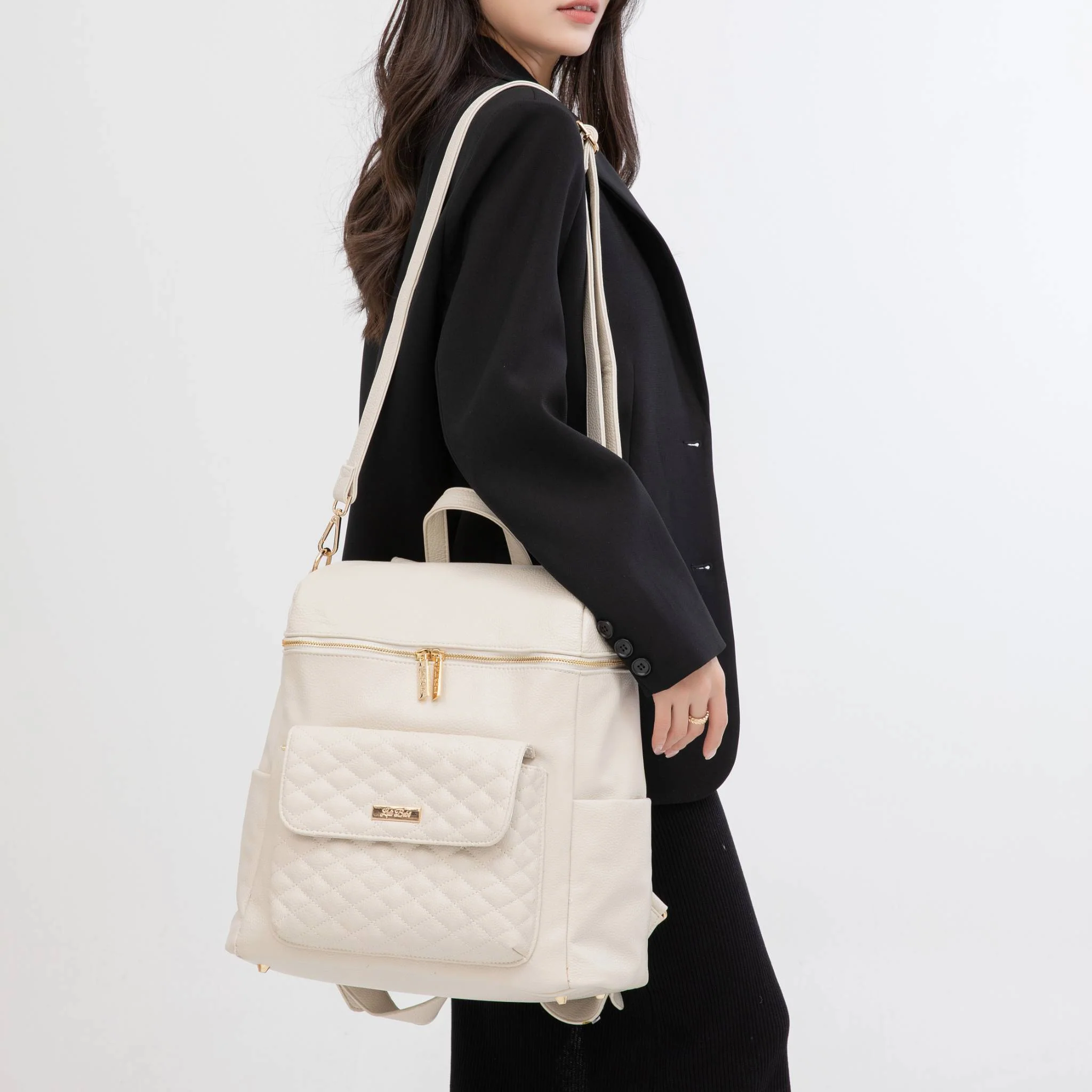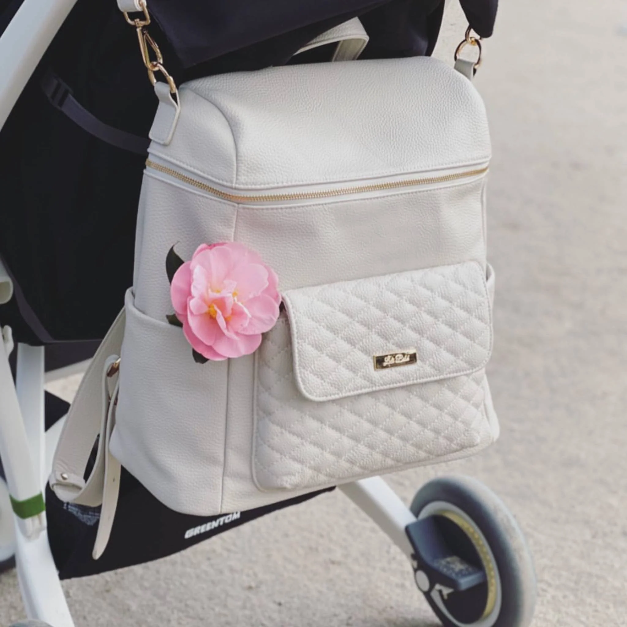 Designed in Los Angeles, the Monaco Diaper Bag is crafted with premium faux vegan leather and features a distinctive quilted texture front pouch with classic gold enameling. Unlike traditional diaper bags that feature bulky silhouettes and unappealing prints and fabrics, the Monaco boasts a smooth design of supreme luxury and cultured finesse.