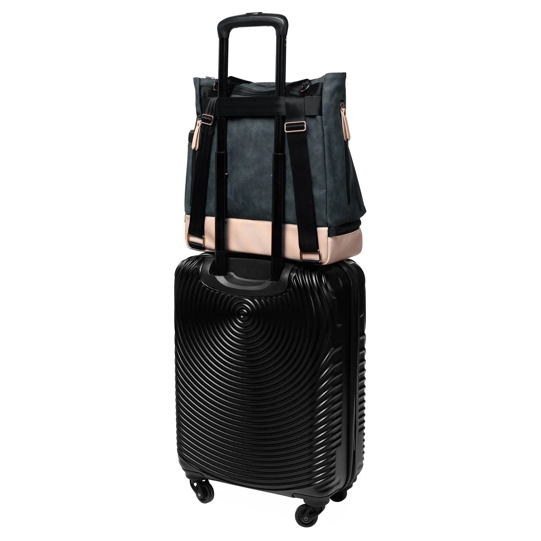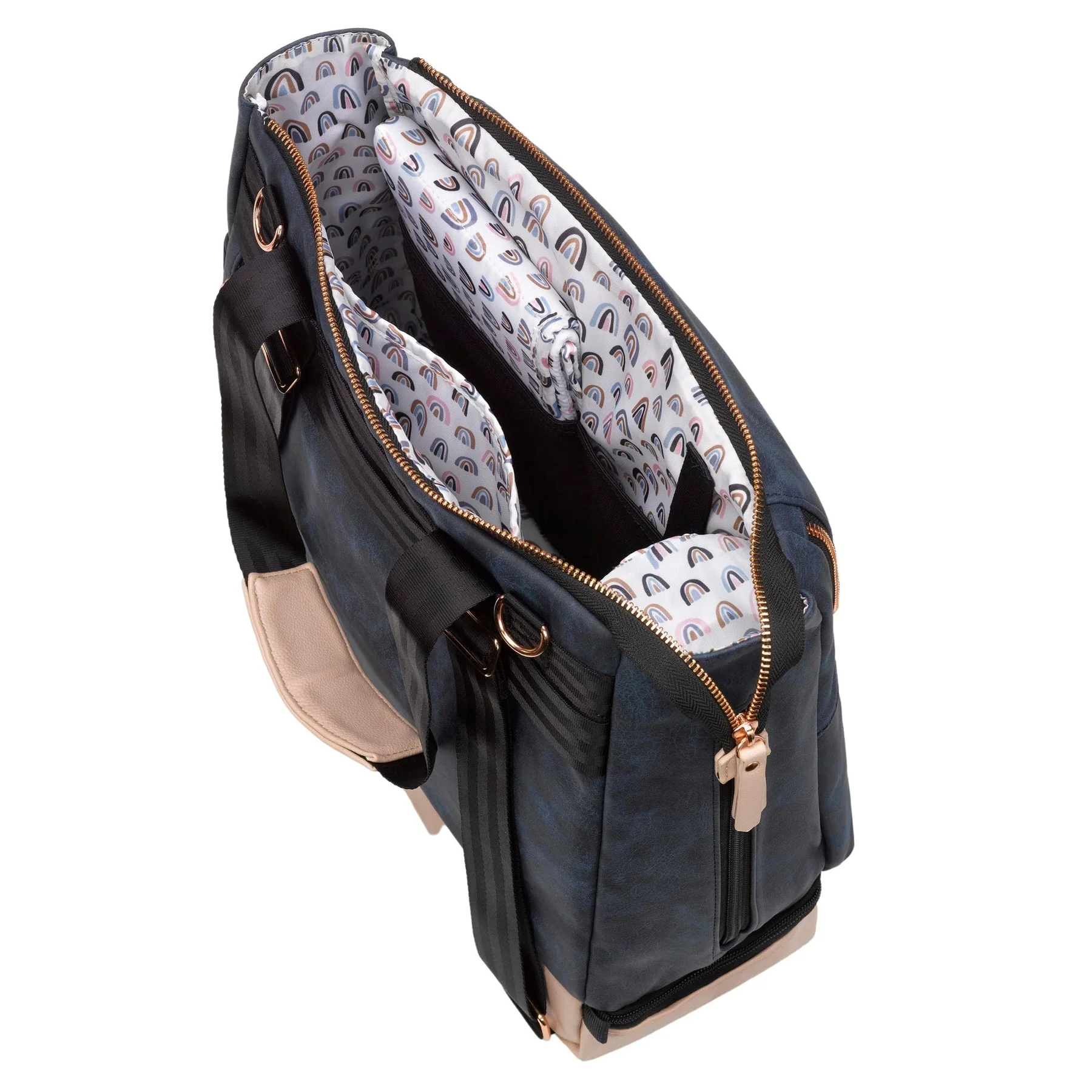 - Two-tone design with rose gold hardware