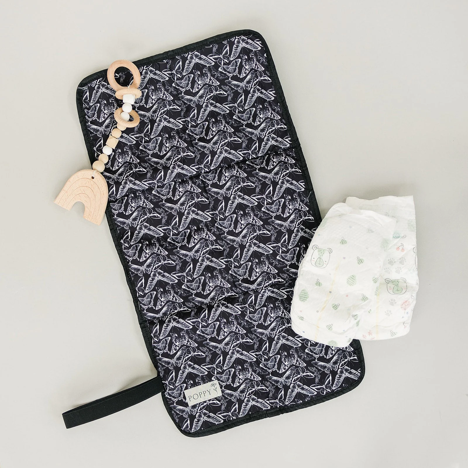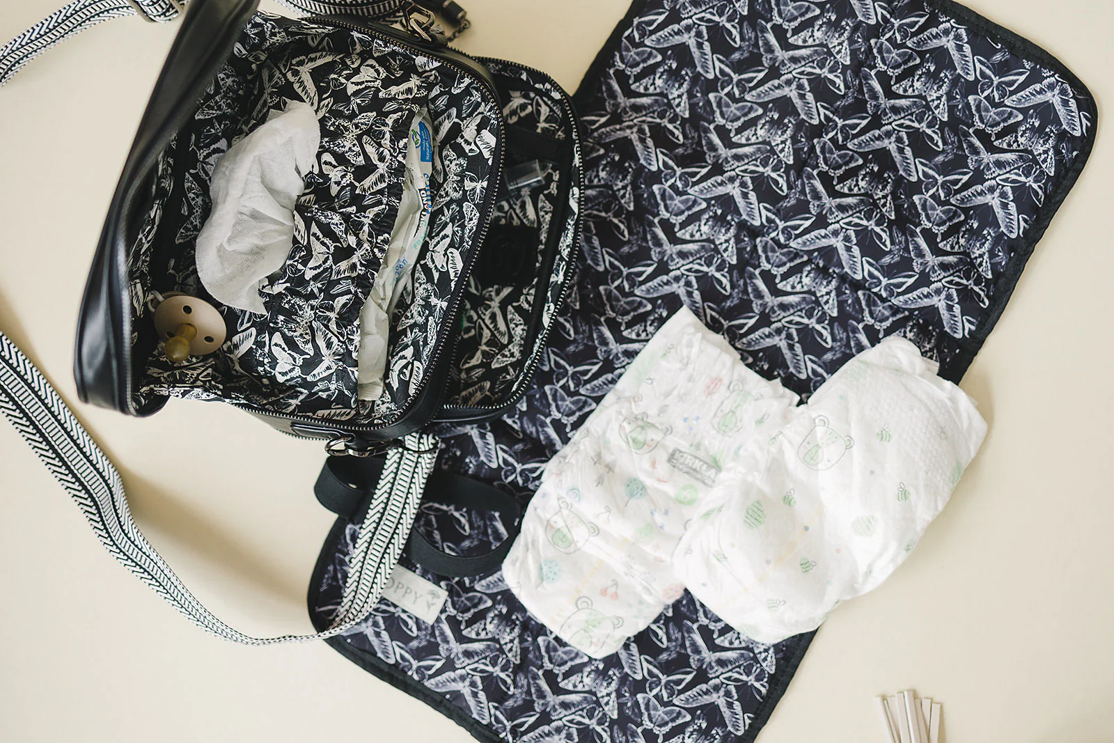 The Poppy also has a matching, foldable, wipe-clean changing pad that fits perfectly inside the bag.