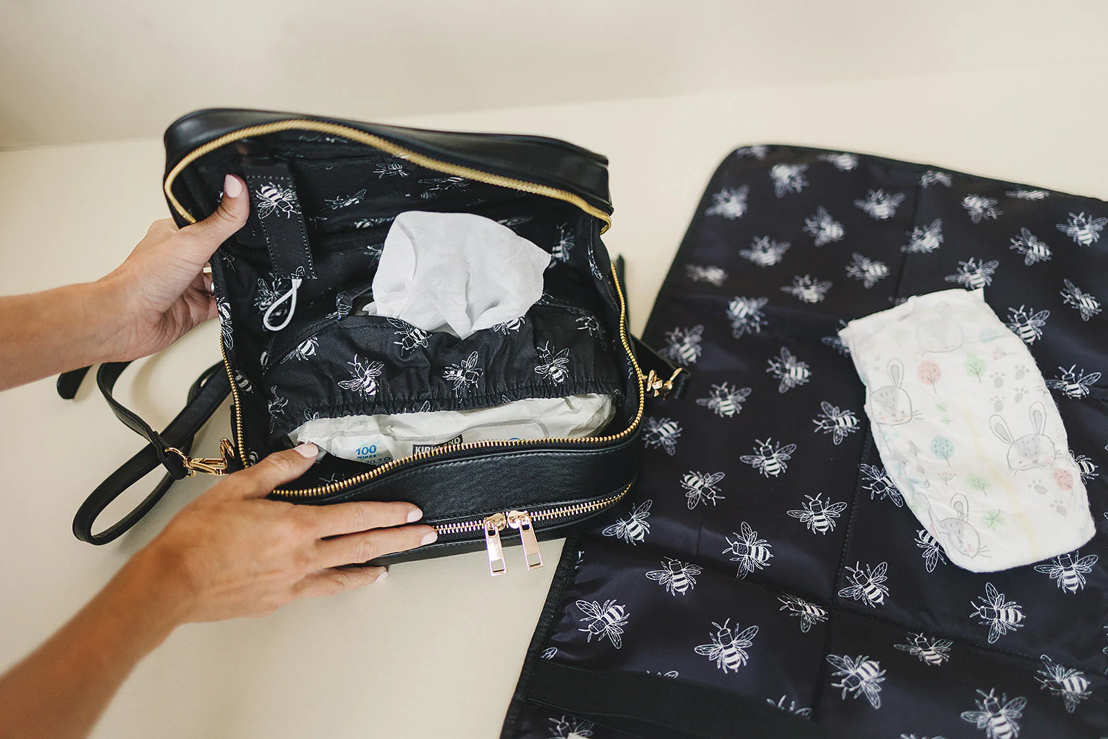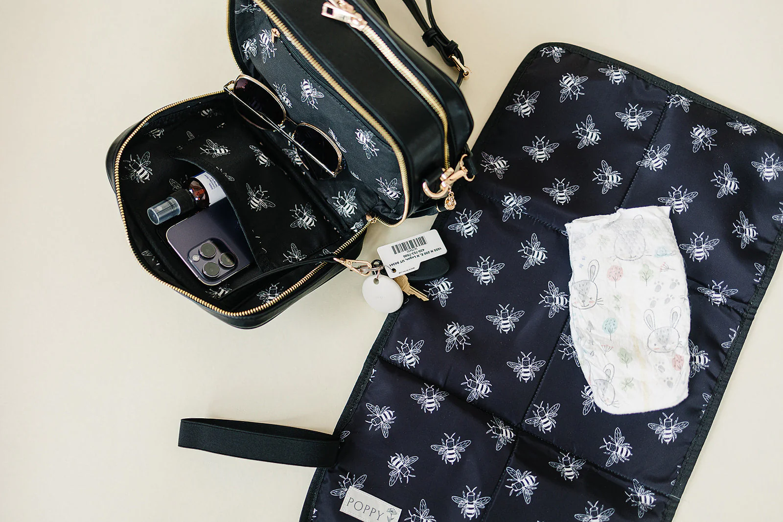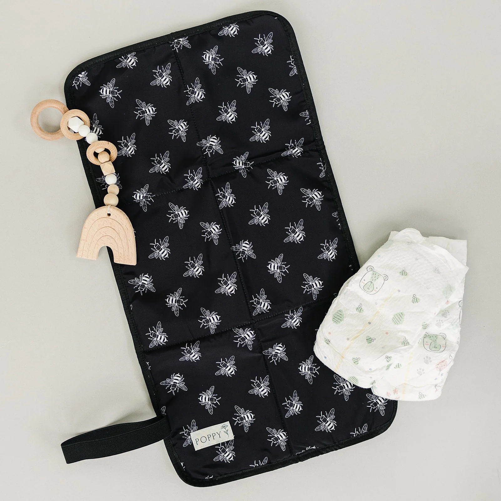 The Poppy also has a matching, foldable, wipe-clean changing pad that fits perfectly inside the bag.