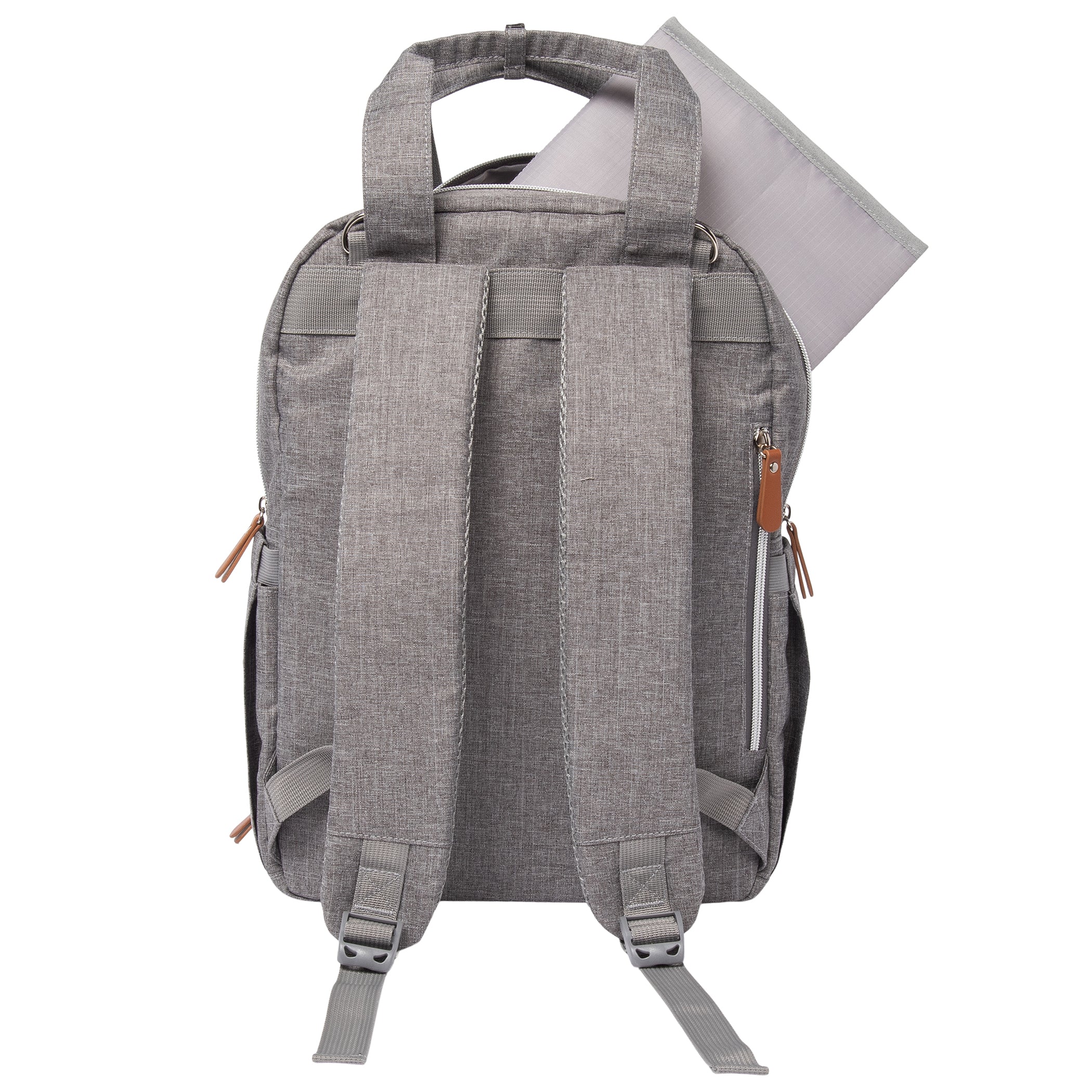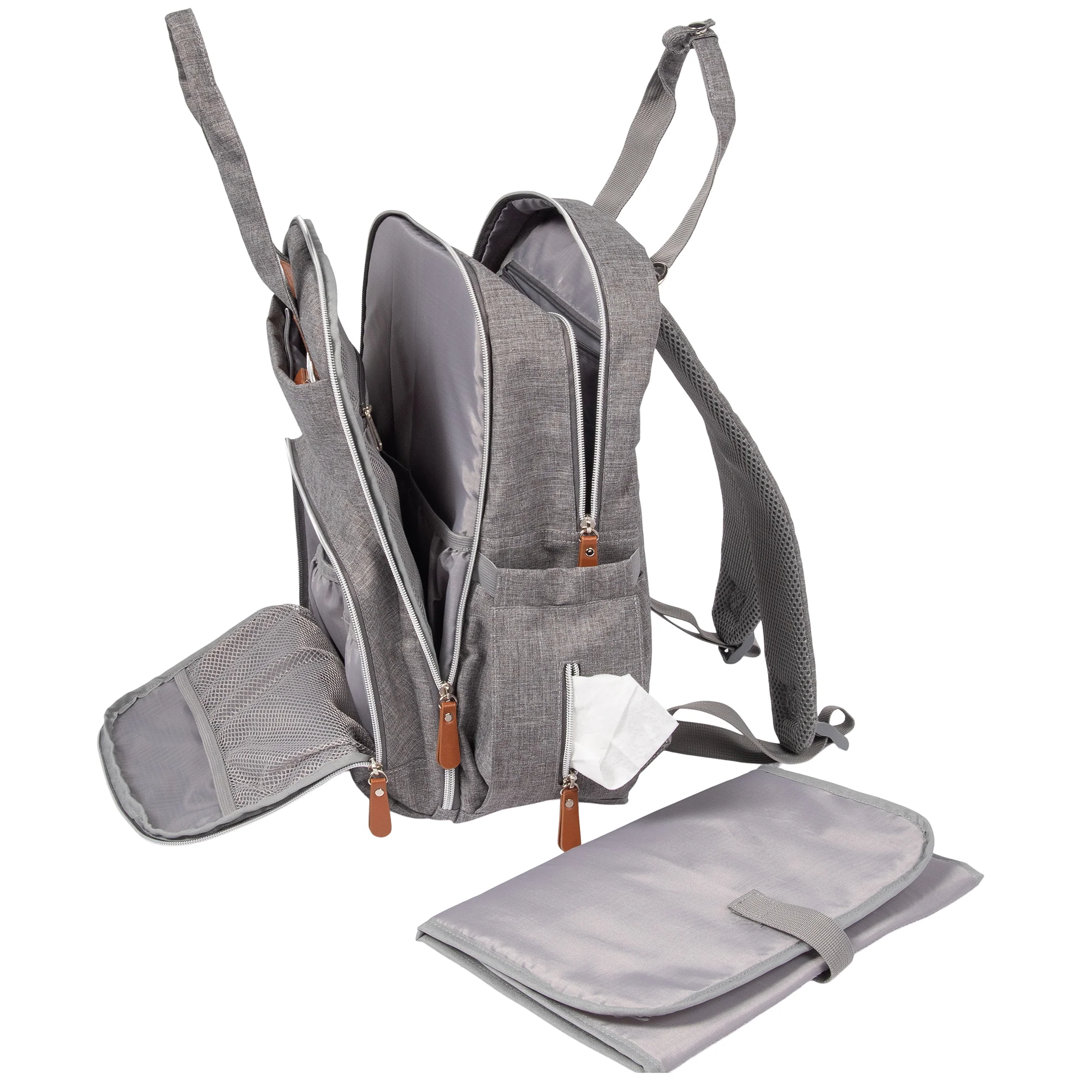 The Gray Backpack Diaper Bag by Trend Lab is an essential with its functionality and modern style. Its gender-neutral gray is great for any mom or dad and adjusts to any shoulder length. With 8 exterior pockets and additional pockets inside, it makes for great organization to take your little one on the go!