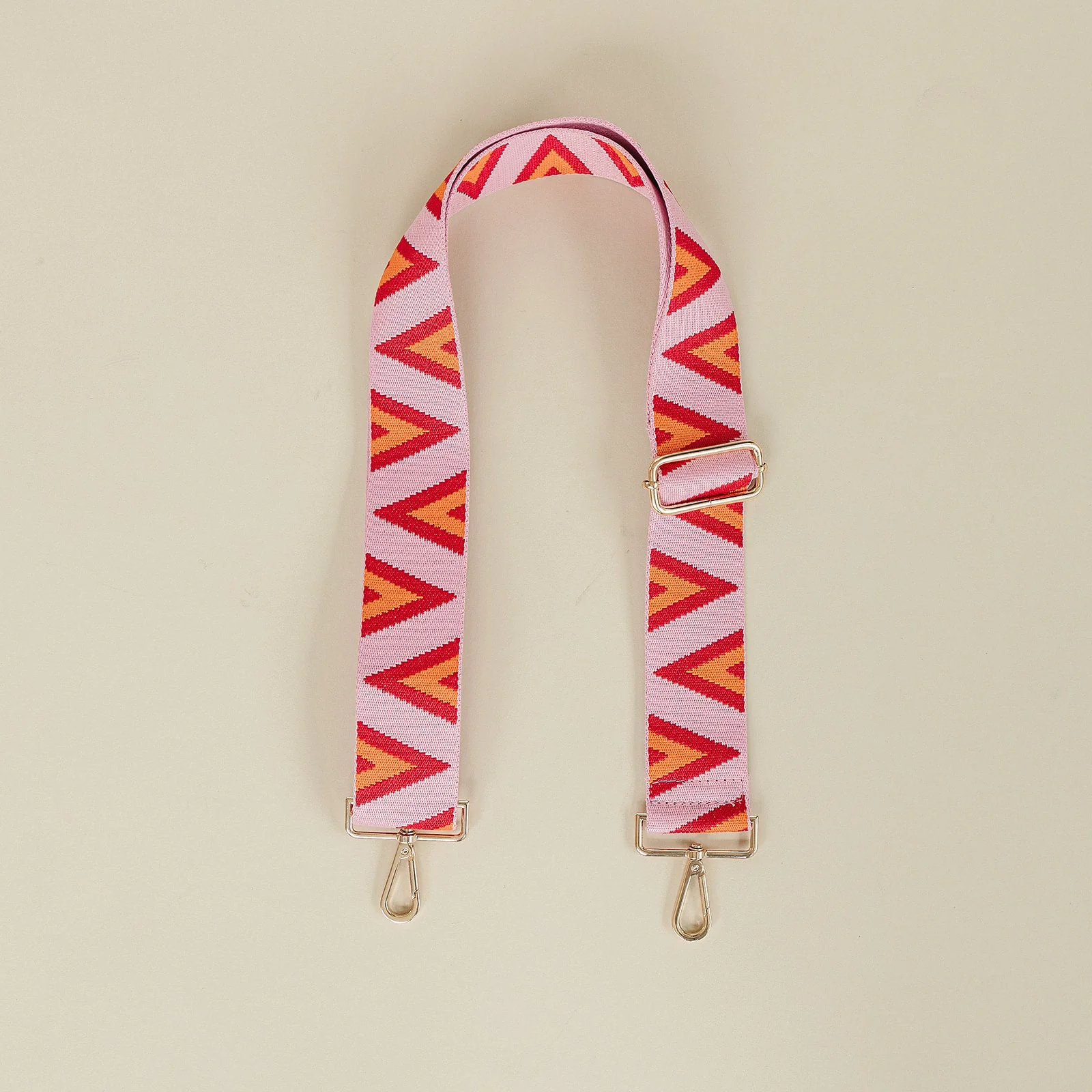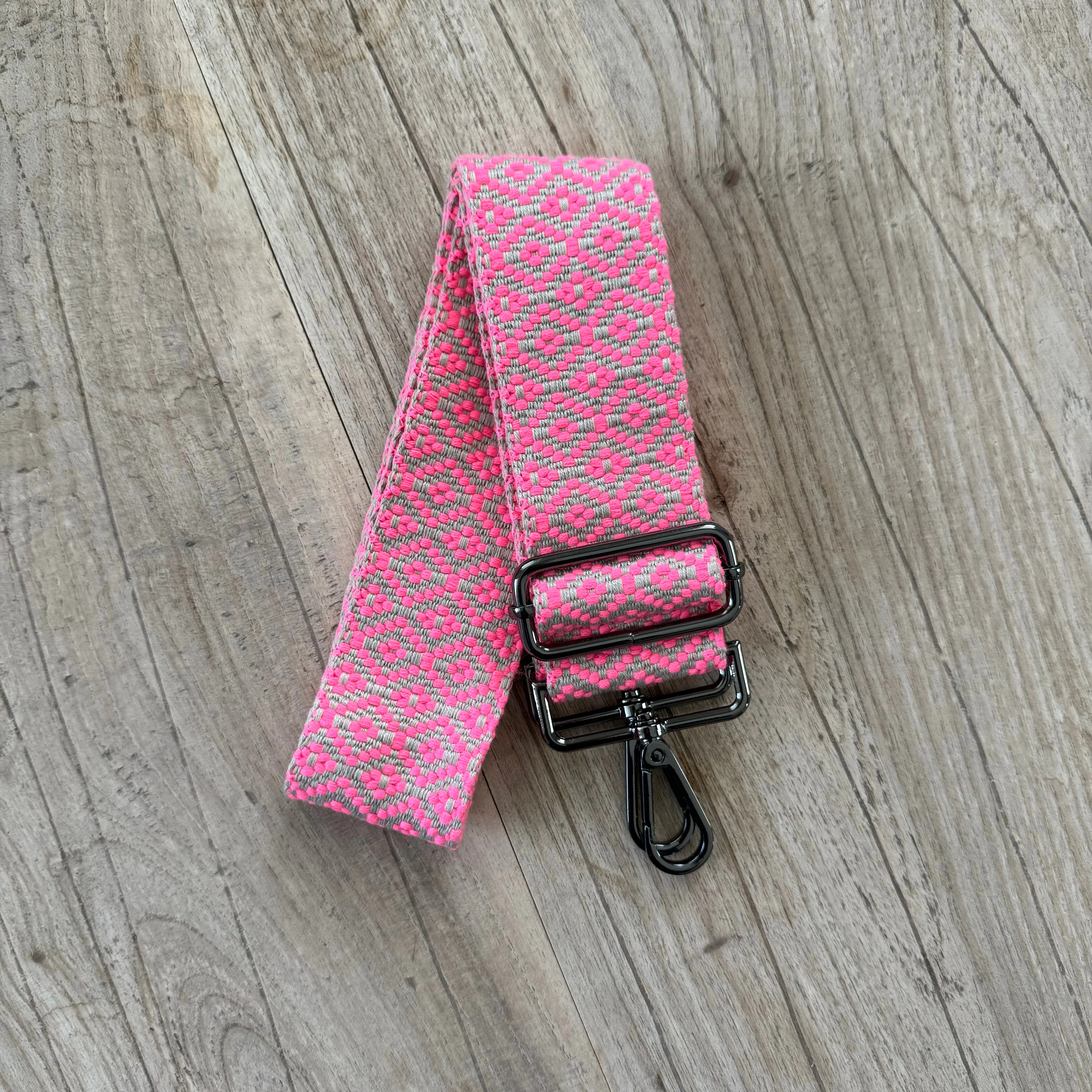 Poppy Pink and Tan Crossbody Bag Strap (Gunmetal)