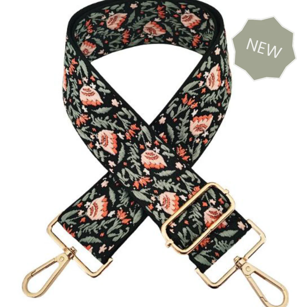 Poppy Black Floral Crossbody Bag Strap (Gold)