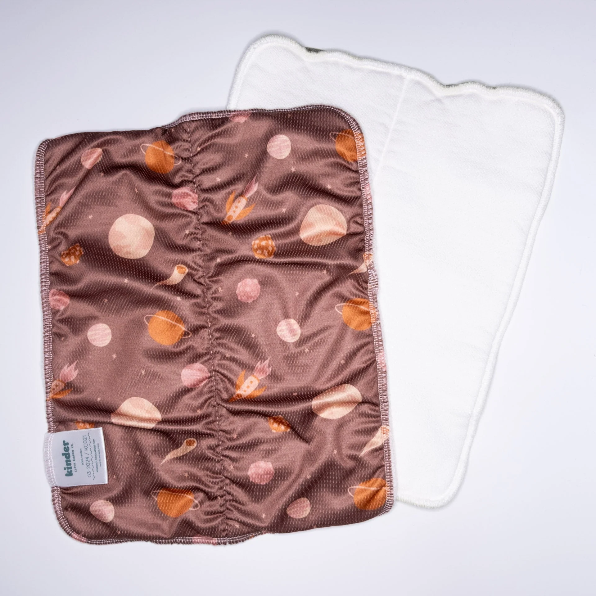 Kinder Cloth 3-Layer Bamboo Cotton Bookfold insert is constructed using a bookfold design, which means the layers are folded rather than sewn together. This creates a trim, flexible insert that can be easily customized to fit your baby's needs. The bookfold also allows for quicker drying times compared to sewn inserts.