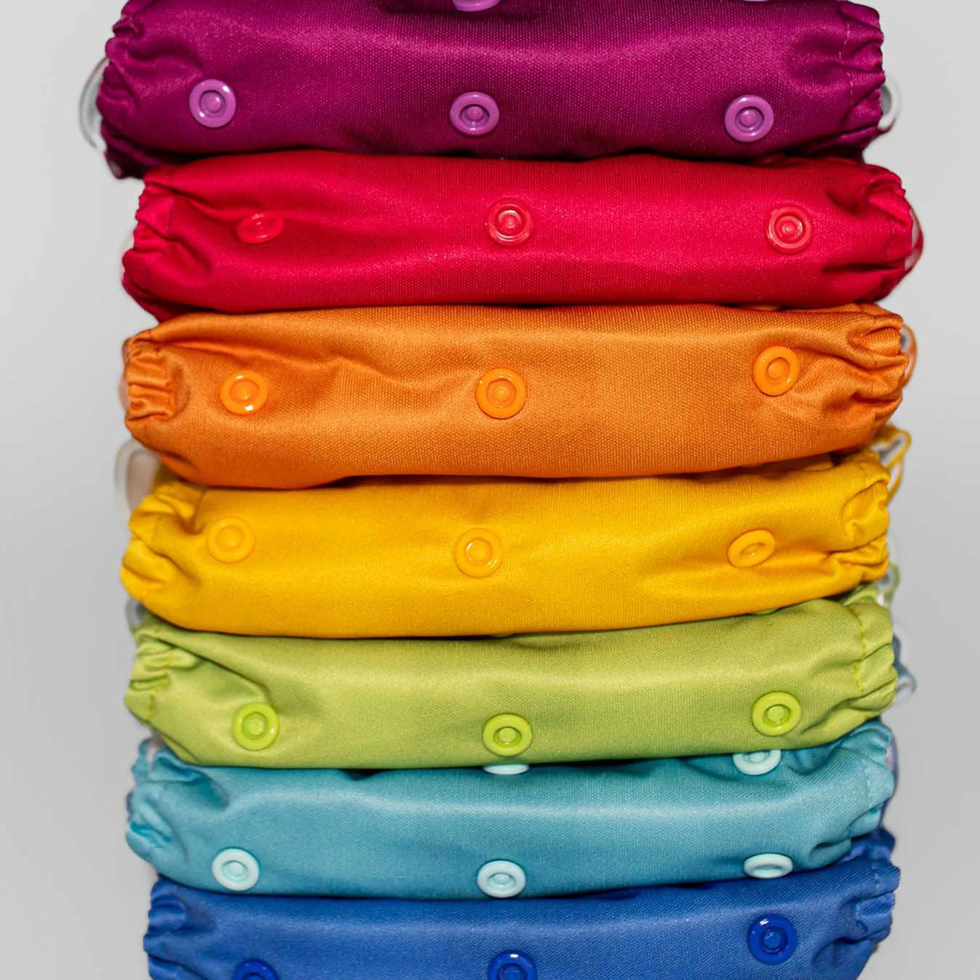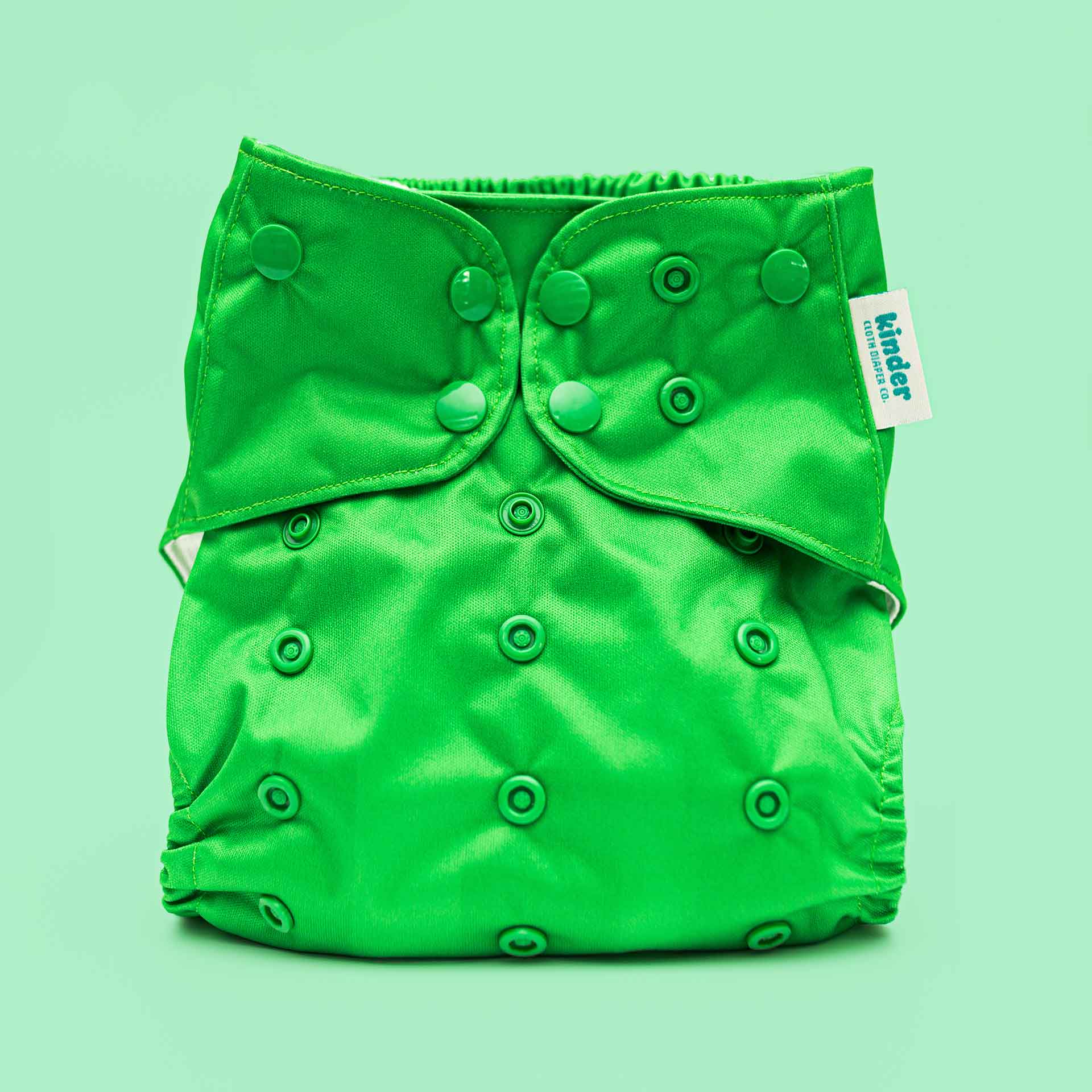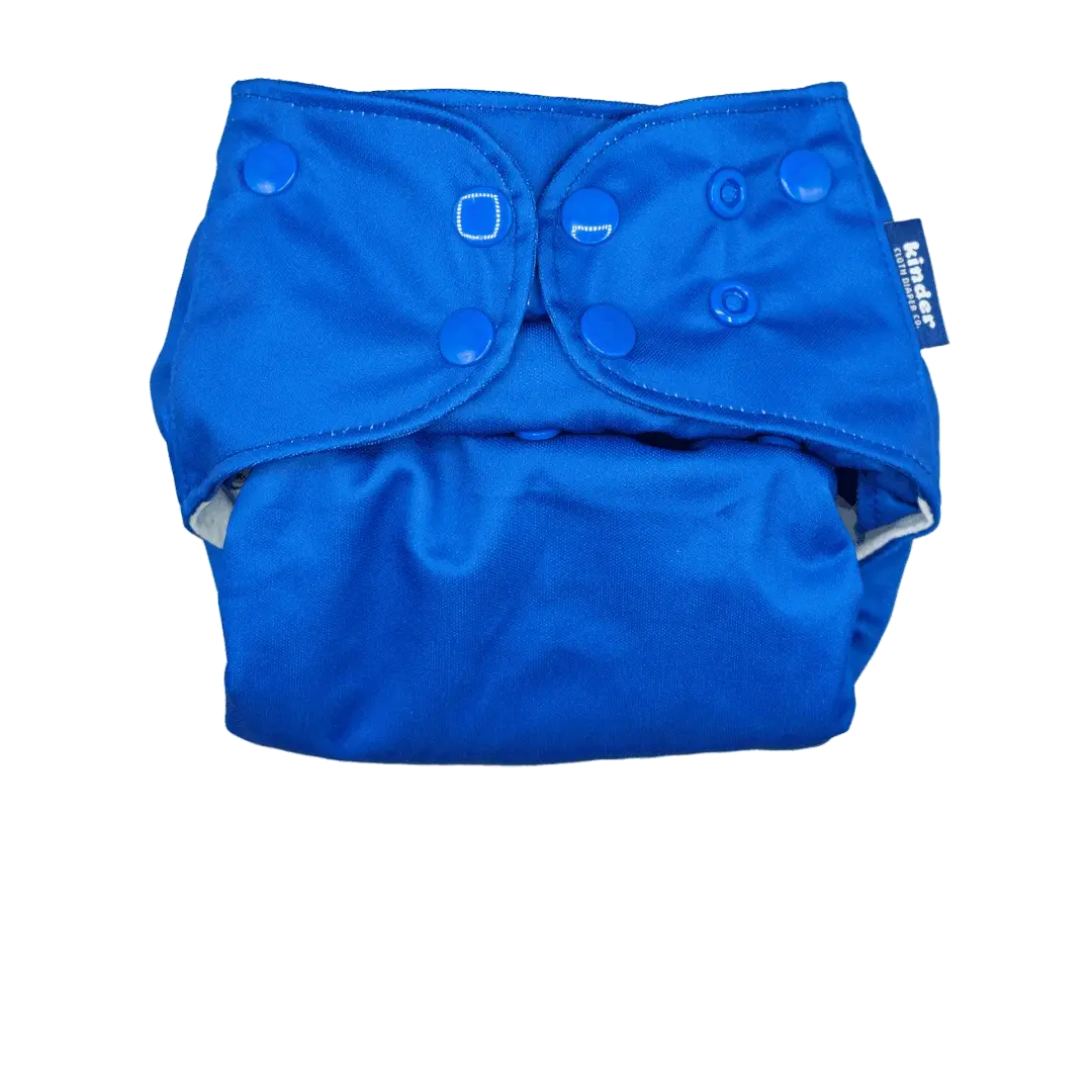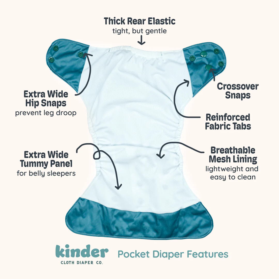 Kinder Cloth Diaper Co. modern, reusable pocket cloth diapers feature a three by five adjustable rise setting that is flexible enough to fit most babies from birth to potty training.